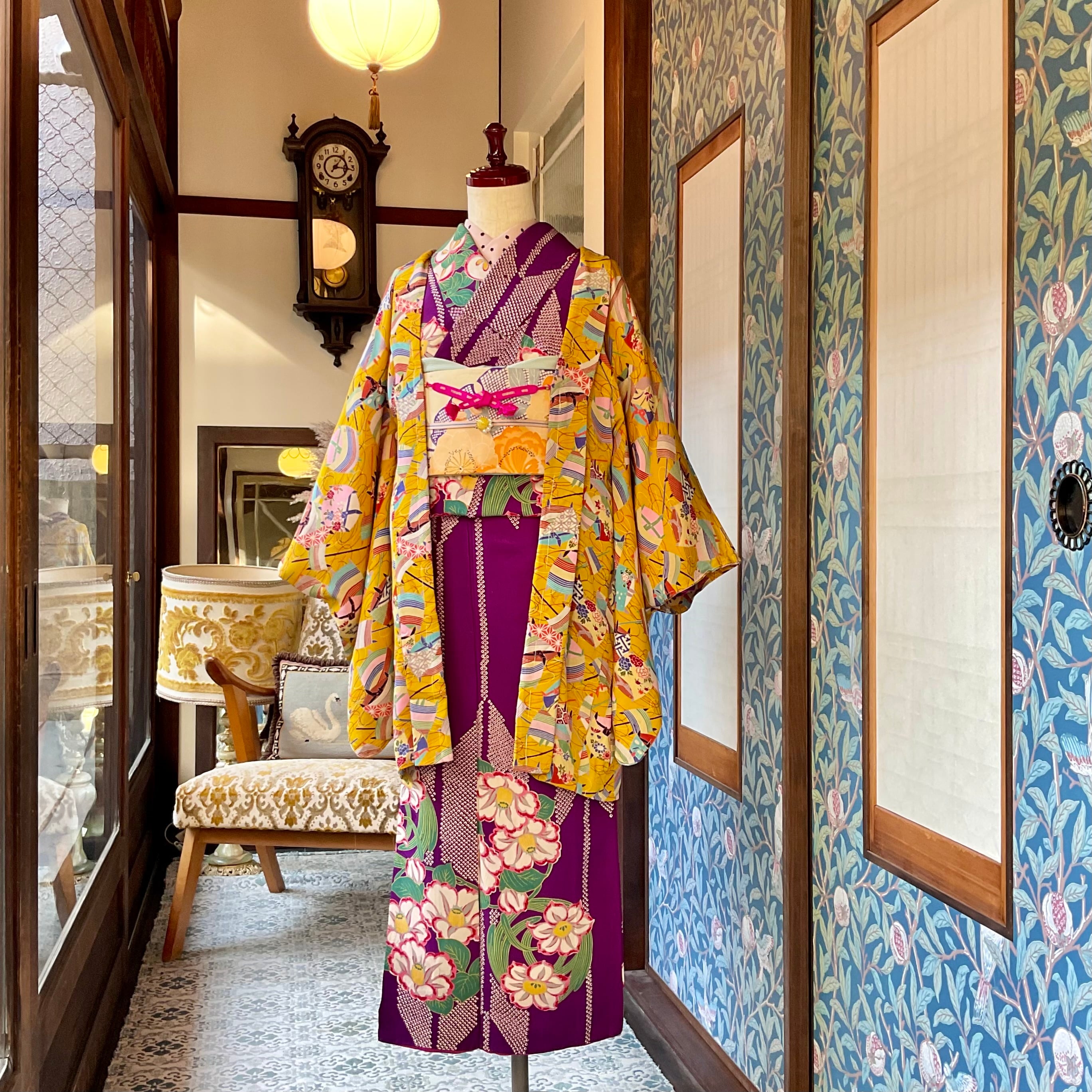 アンティーク着物ならではの色使いと派手かわいいデザイン!
