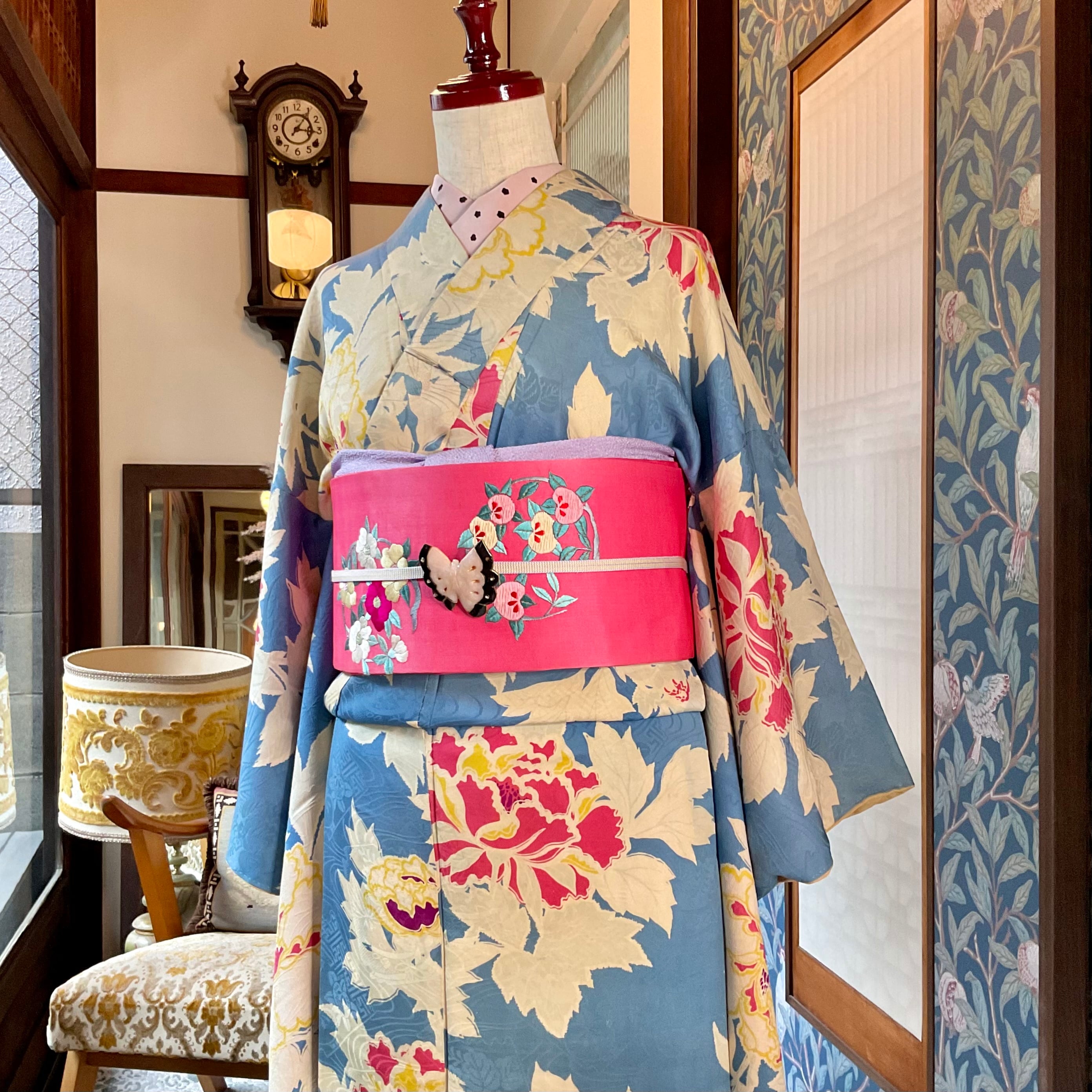 普段着の小紋だけでなく、アンティークの訪問着や付下げをカジュアルダウンさせて着たいときに合わせるのも素敵ですよ♩