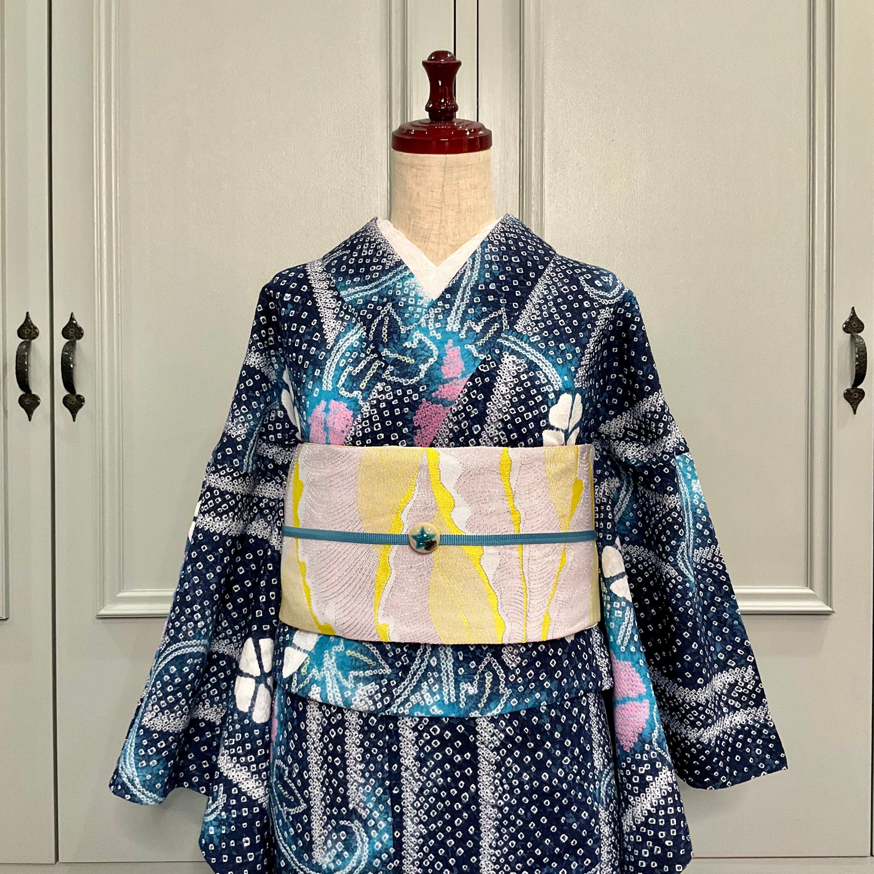 朝顔の夏*アサガオ ブルー 有松鳴海絞り浴衣 B021