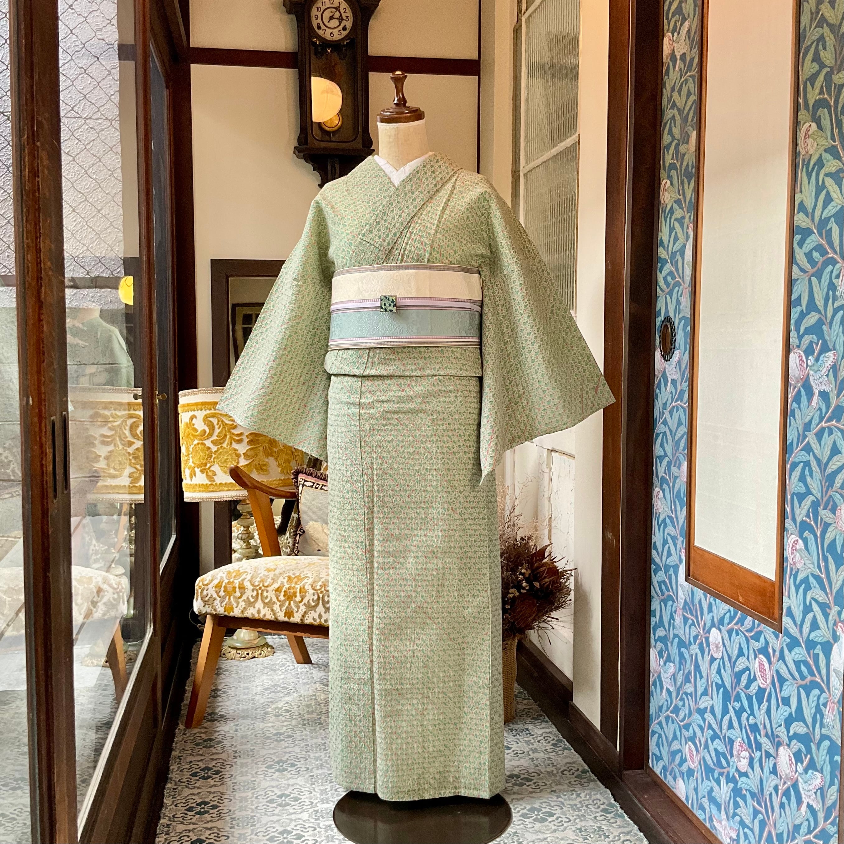 くすみカラーがお洒落で爽やかすぎないお色目なので、単衣着物としても着られ、5月頃から9月頃まで長く活躍してくれます✨