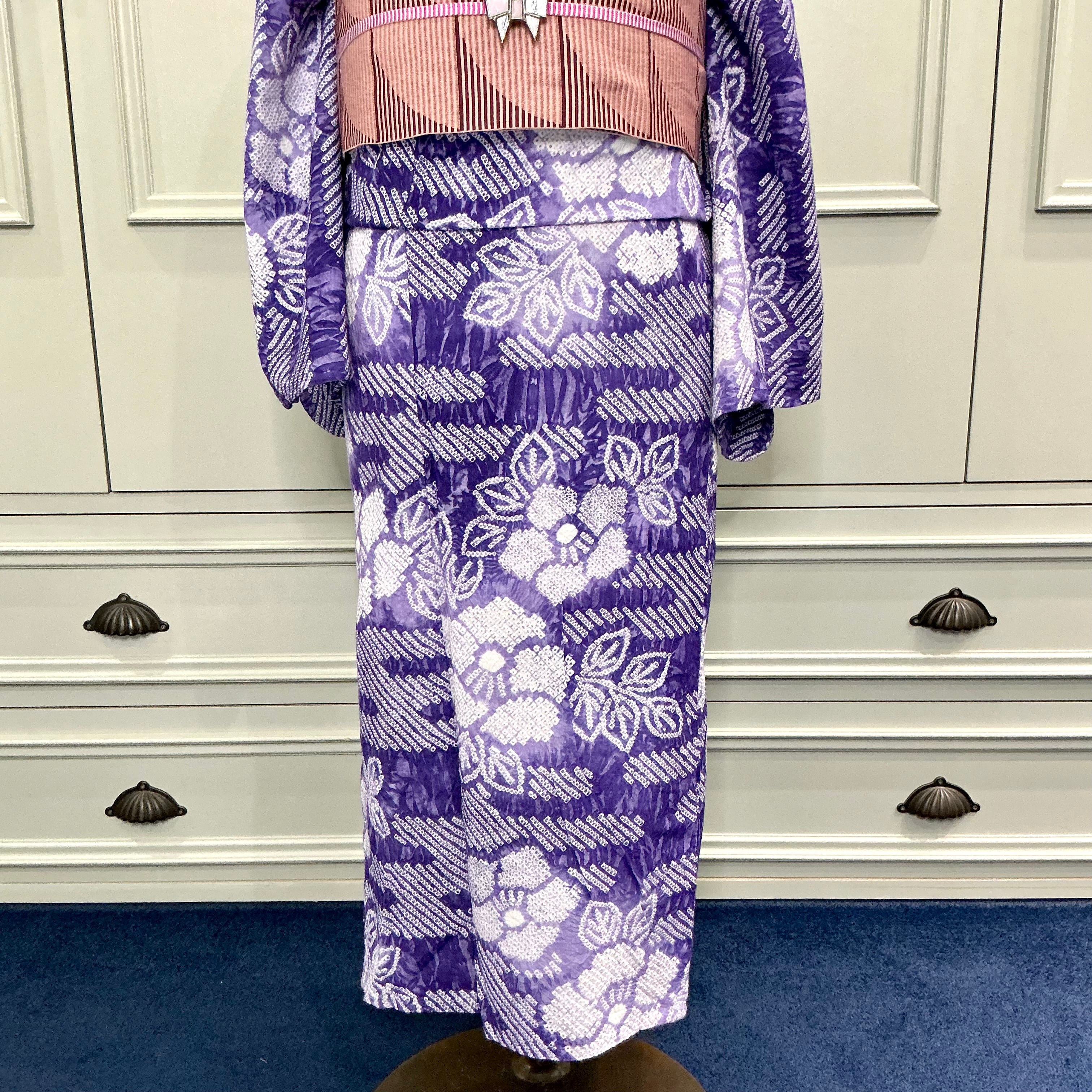 mist camellia*ツバキ 椿 紫 ぼかし パープル 有松鳴海絞り浴衣 B030