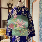 淡い色調でありながら、木蓮の花の持つ優雅さと、アンティーク帯ならではの深みのある美しさで、やさしくも凛とした春の装いが完成します。
