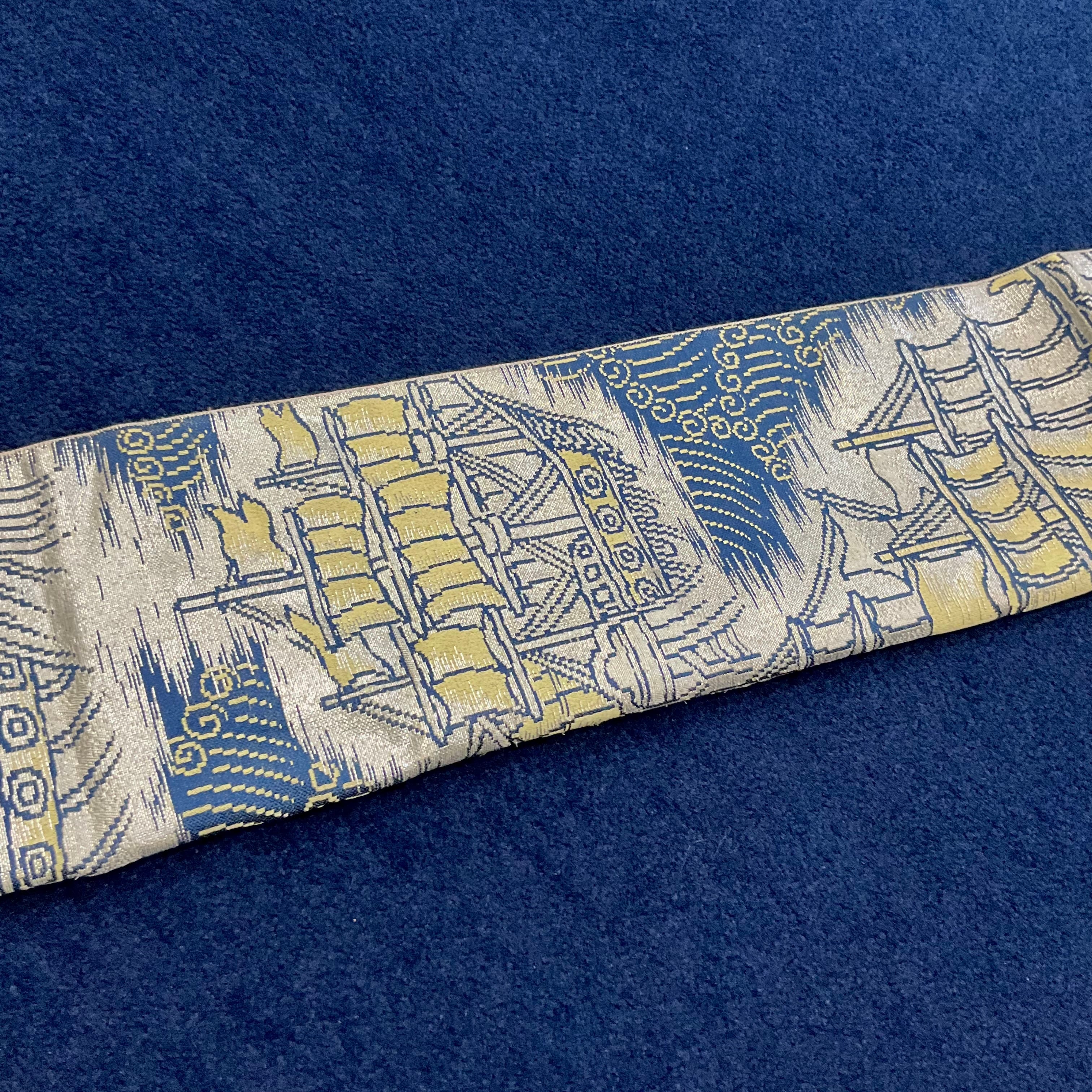 HANSEN*帆船 舟 海 マリン シルバー アンティーク名古屋帯 B091