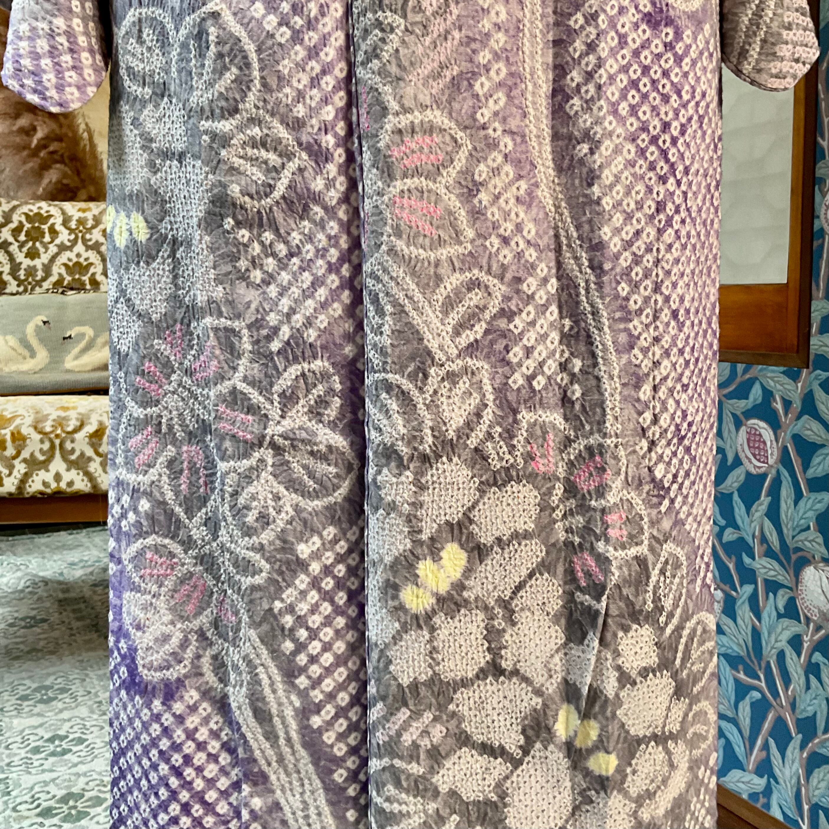 薄明の花*パープル 薄紫 身丈小さめ グレー くすみ 花 フラワー 大人浴衣 有松鳴海絞り浴衣 B168