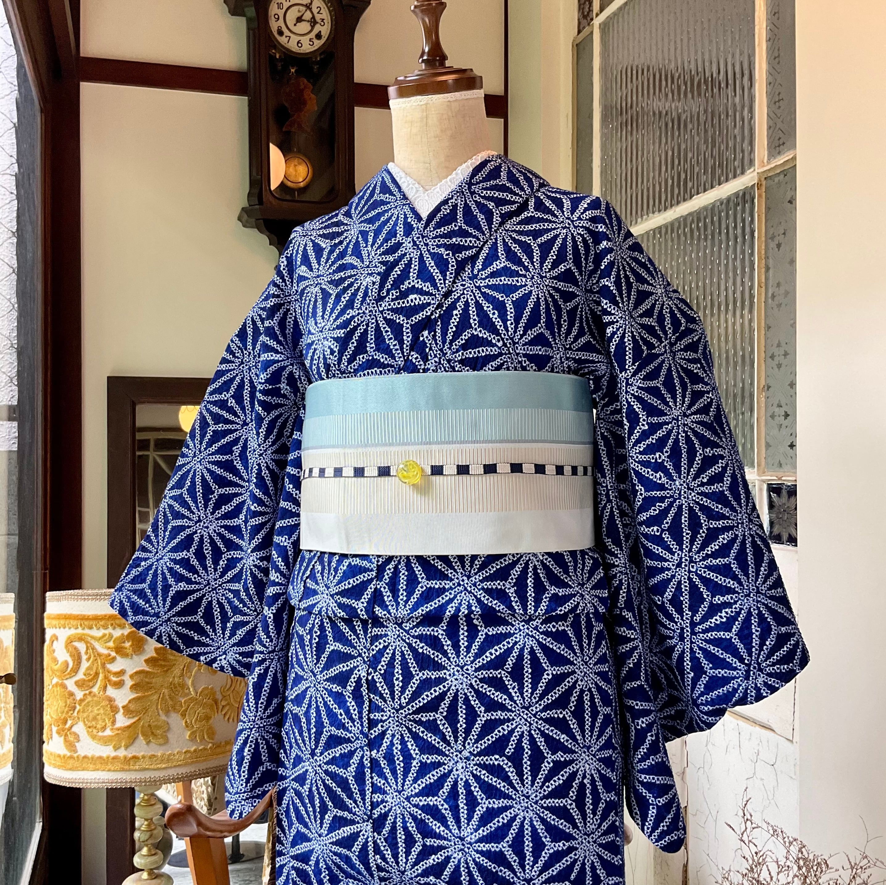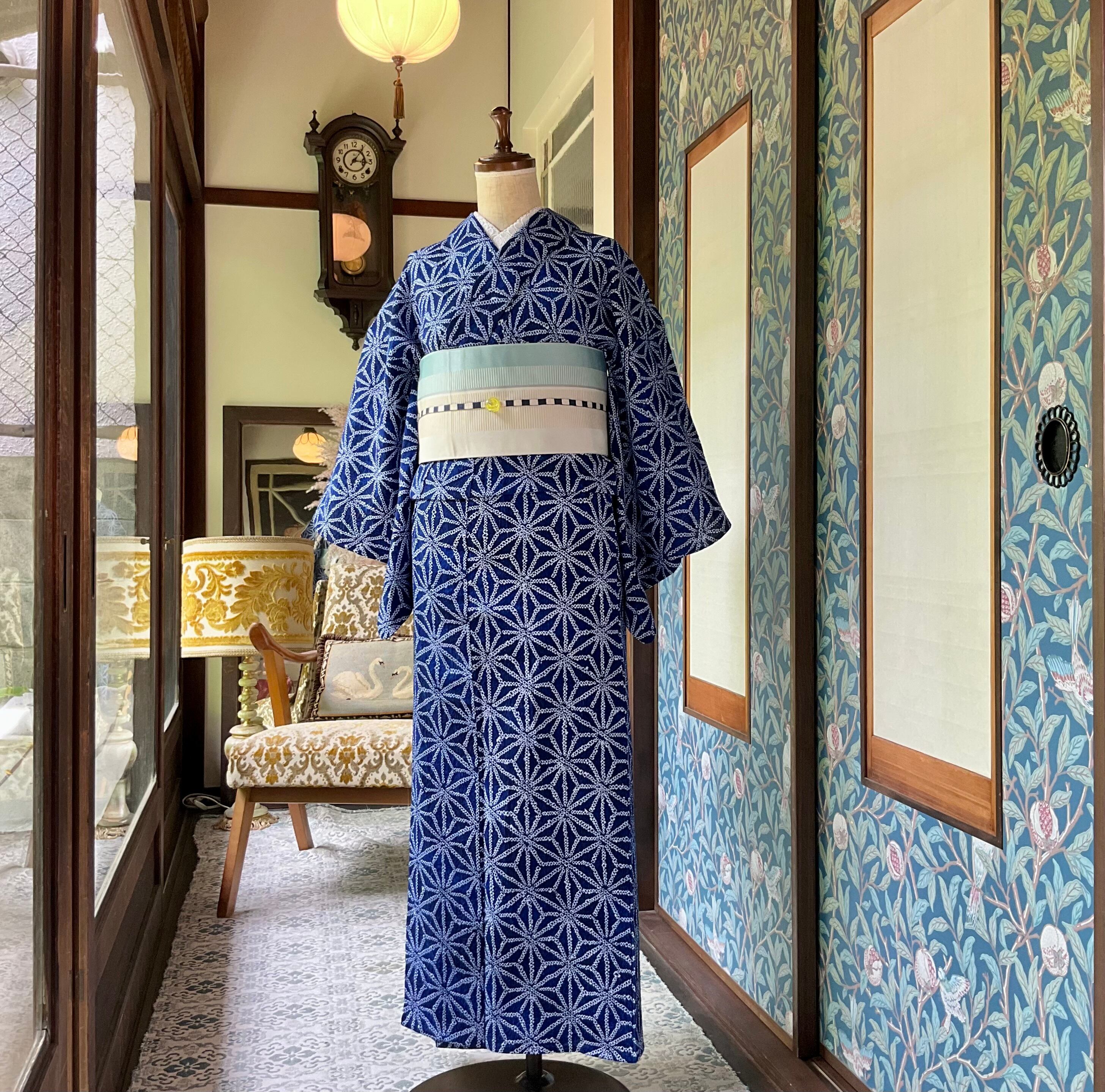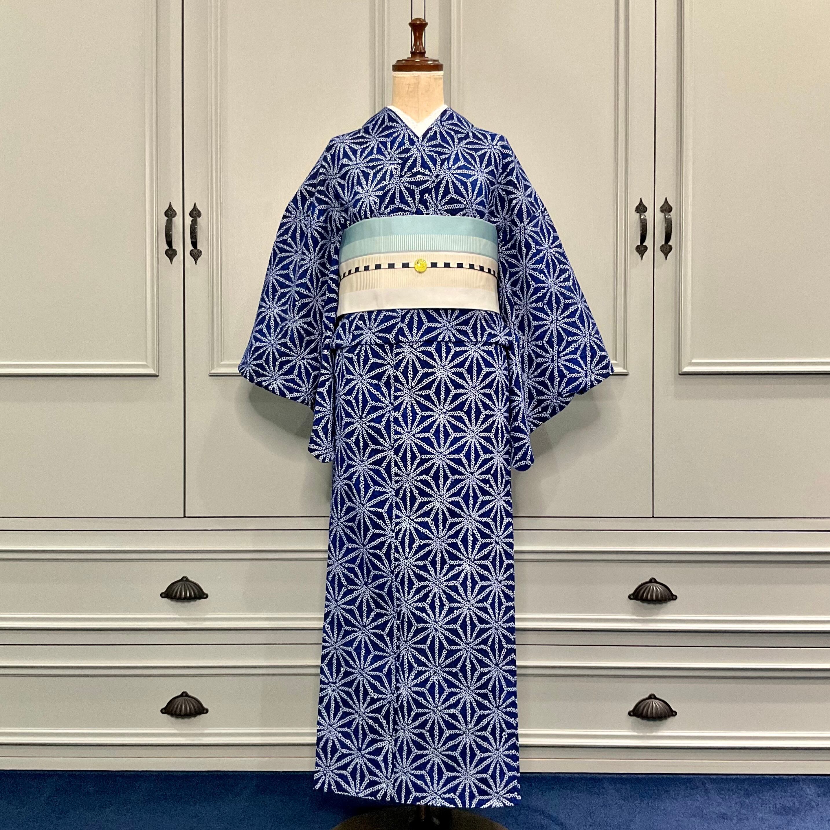 ASANOHA×BLUE*麻の葉 ネイビーブルー 青 幾何学 大人浴衣 有松鳴海絞り浴衣 B170