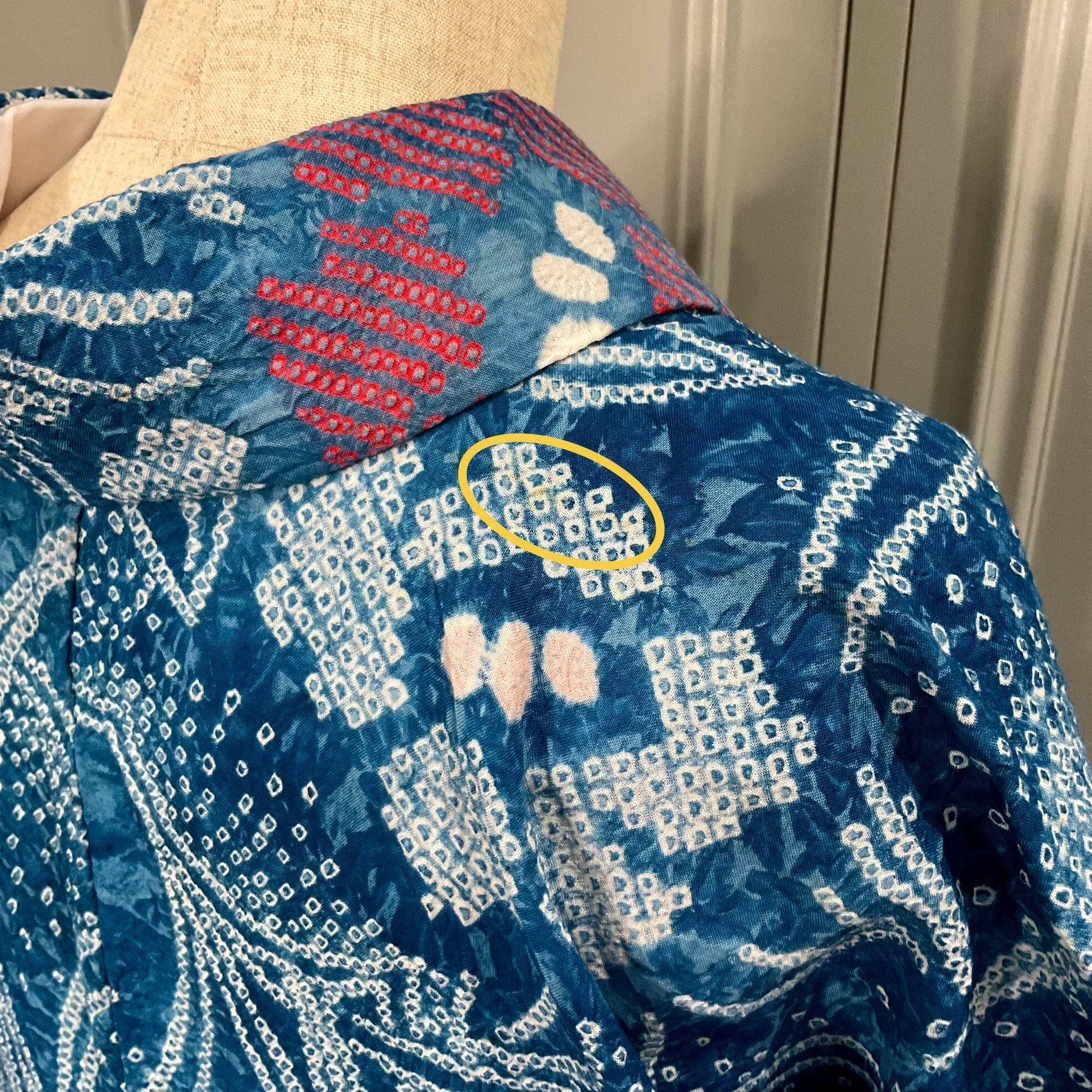左衿の帯に隠れる所、に薄シミ。