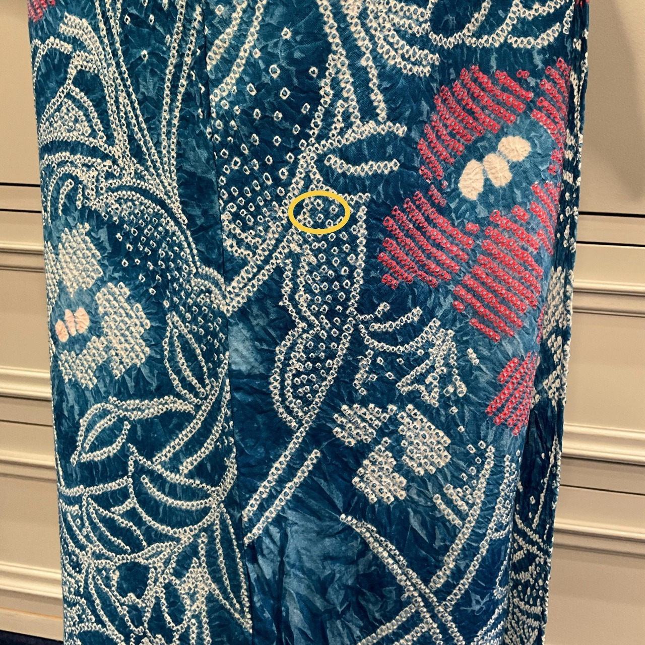 アイロンやプレスをしてしまうと絞りの風合いが無くなりますので、「絞りです、アイロンやプレスは無しで」とお伝えください。