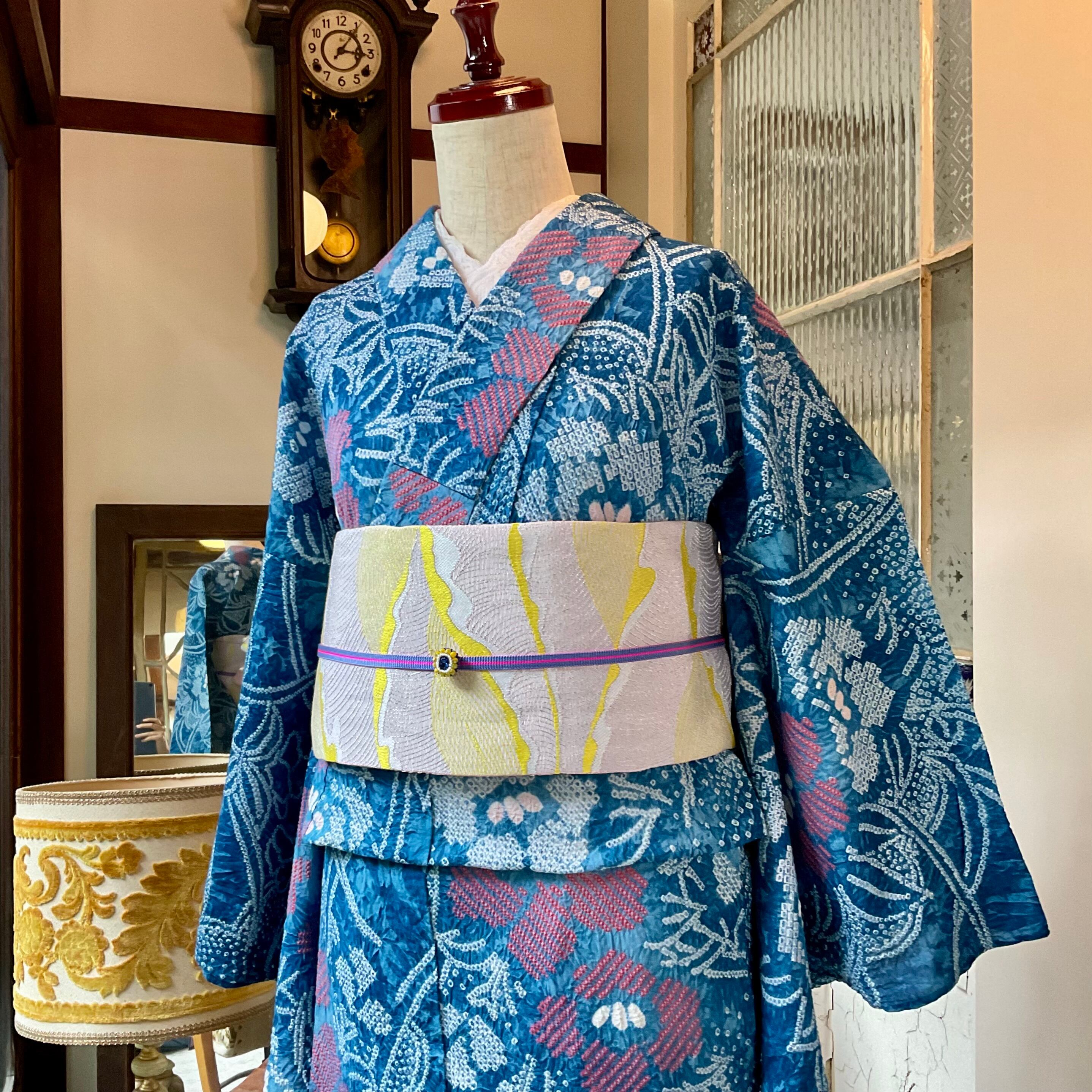 豪華な絞りの総柄なので、シンプルな帯を合わせてすっきりまとめるのもおすすめ*