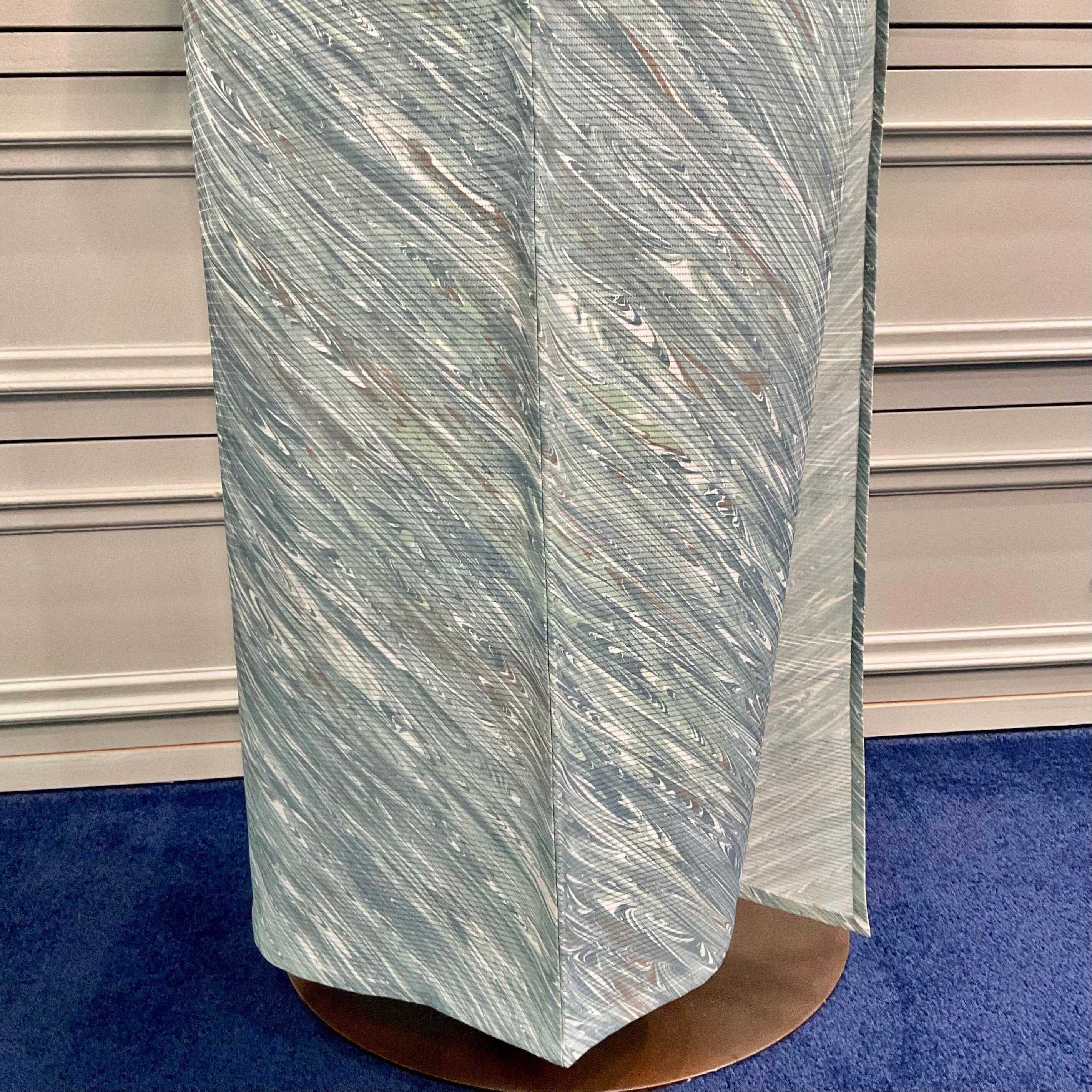 long*水面の揺らぎ*絽 墨流し マーブル くすみブルー 夏きもの B175