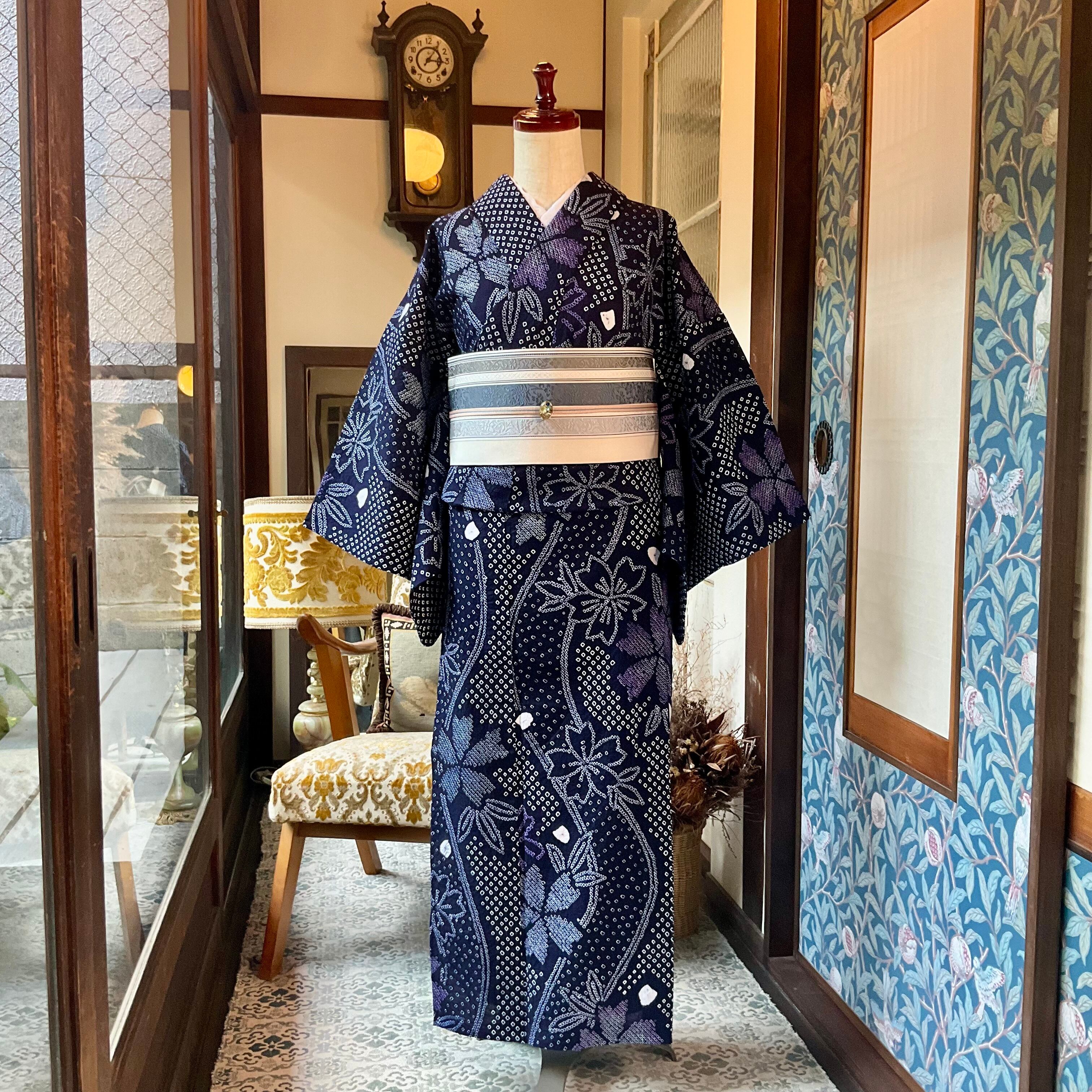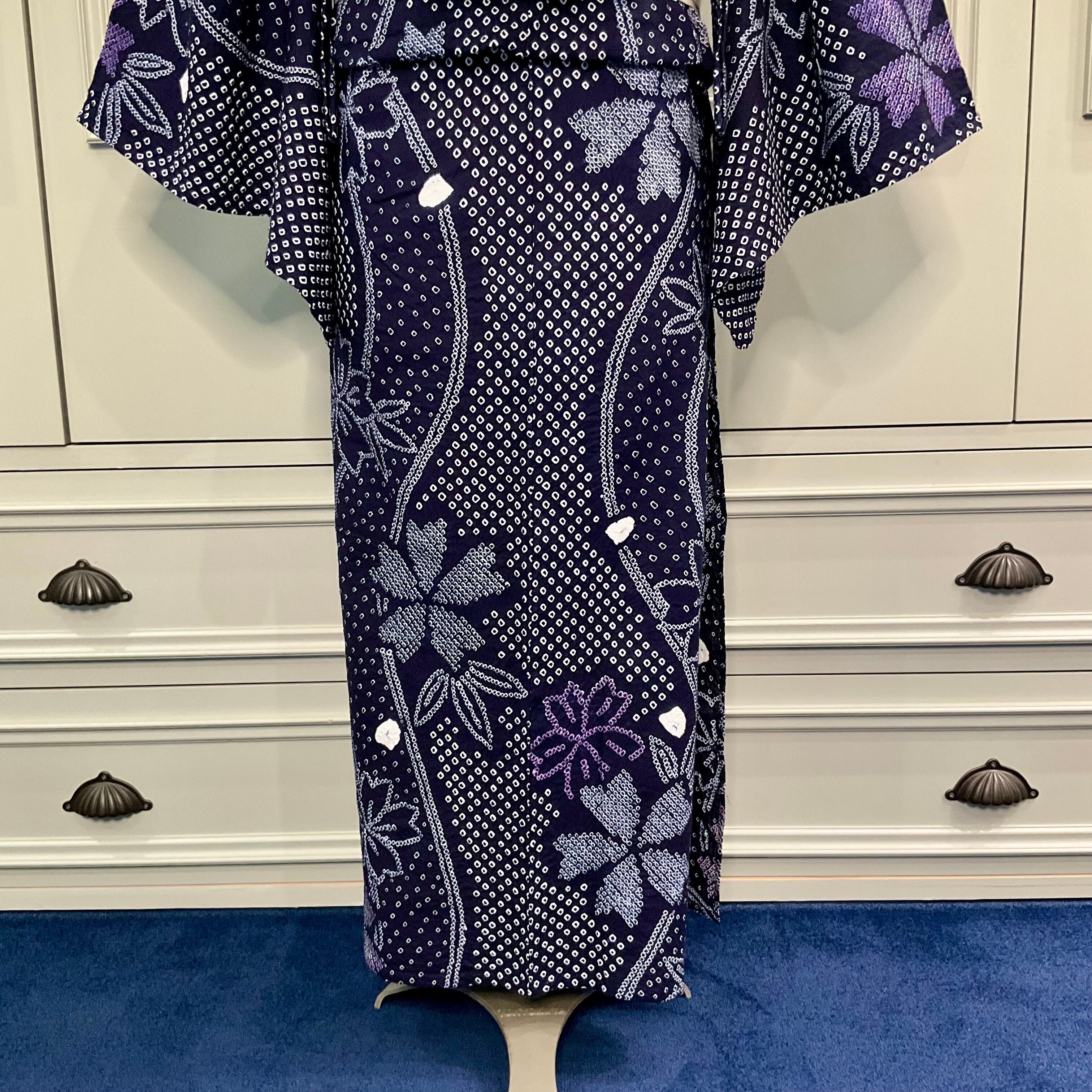 夜風に吹かれて*定番 ネイビー 藍 濃紺 紫 パープル 有松鳴海絞り浴衣B177