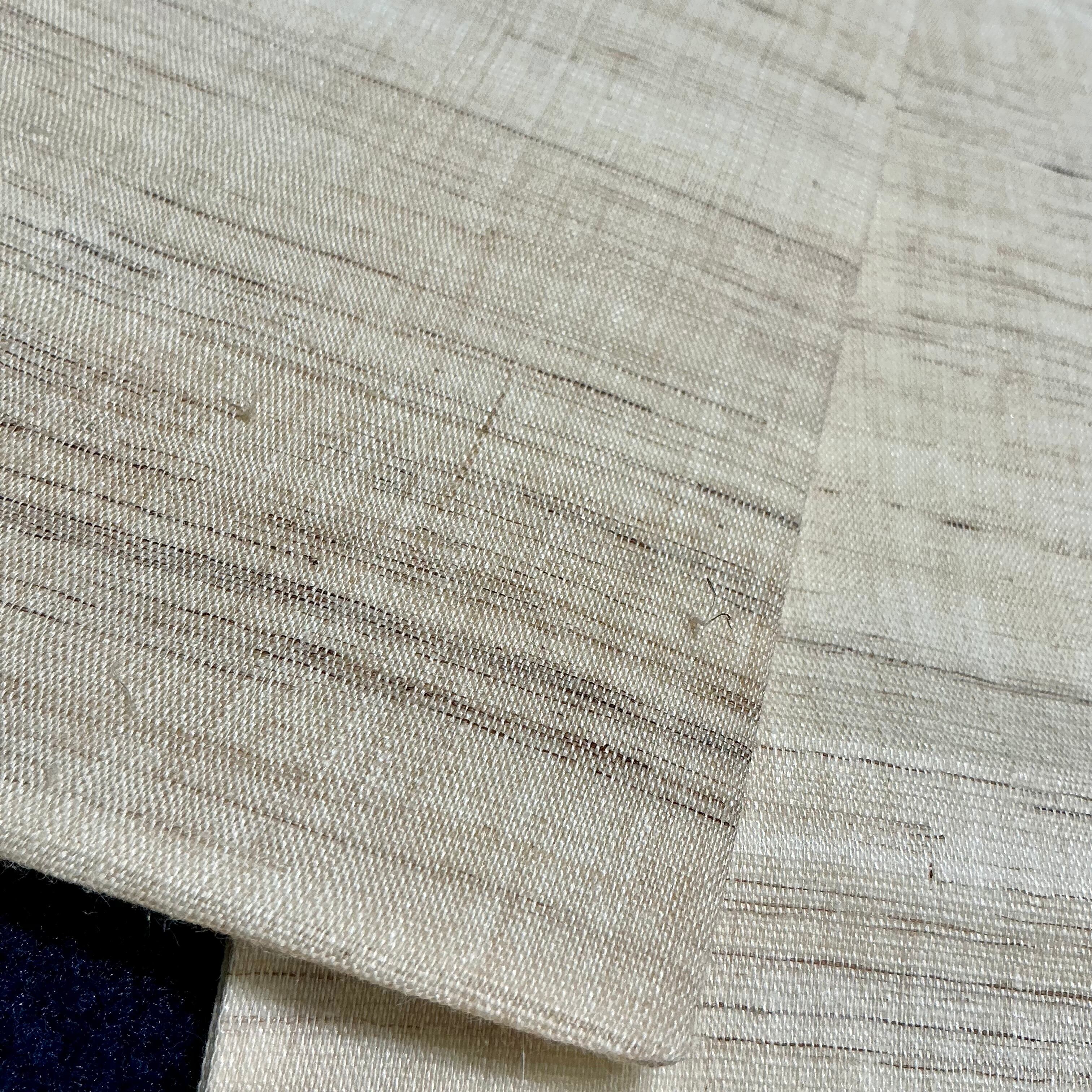 おだやかな生成りのベージュと、裏側と垂れ先は群青のような少しくすんだブルーで彩られ、麻の生地の魅力を最大限に感じられるナチュラルな大人の雰囲気です♫