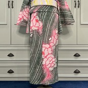 long*Sage×Pinky Bloom ワイド 身幅広め アッシュグレー カーキ グレー ピンク 有松鳴海絞り浴衣 B191