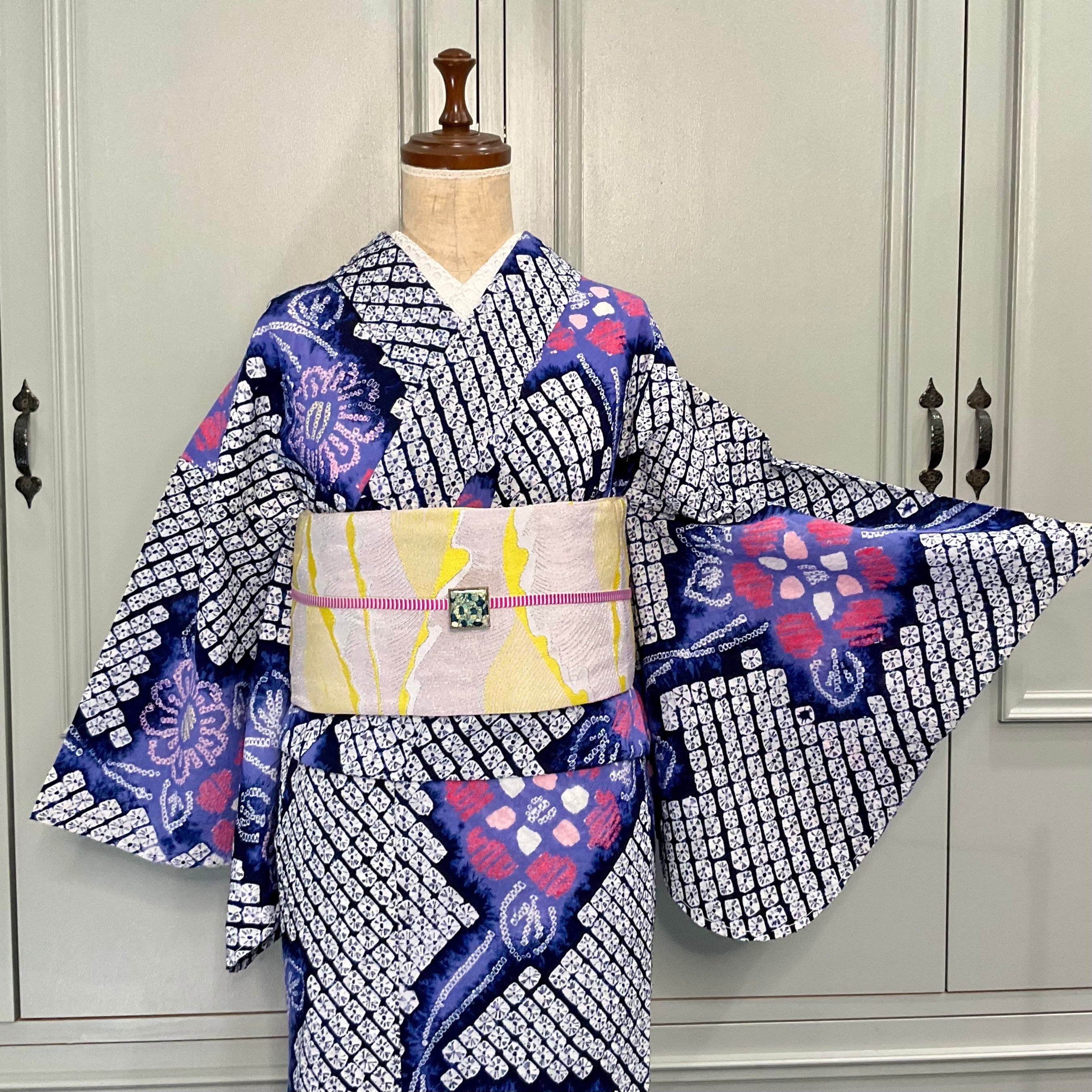 紺×白のコントラストが涼やかにデザインされた、大人の美しさ際立つ有松鳴海絞り浴衣です♪