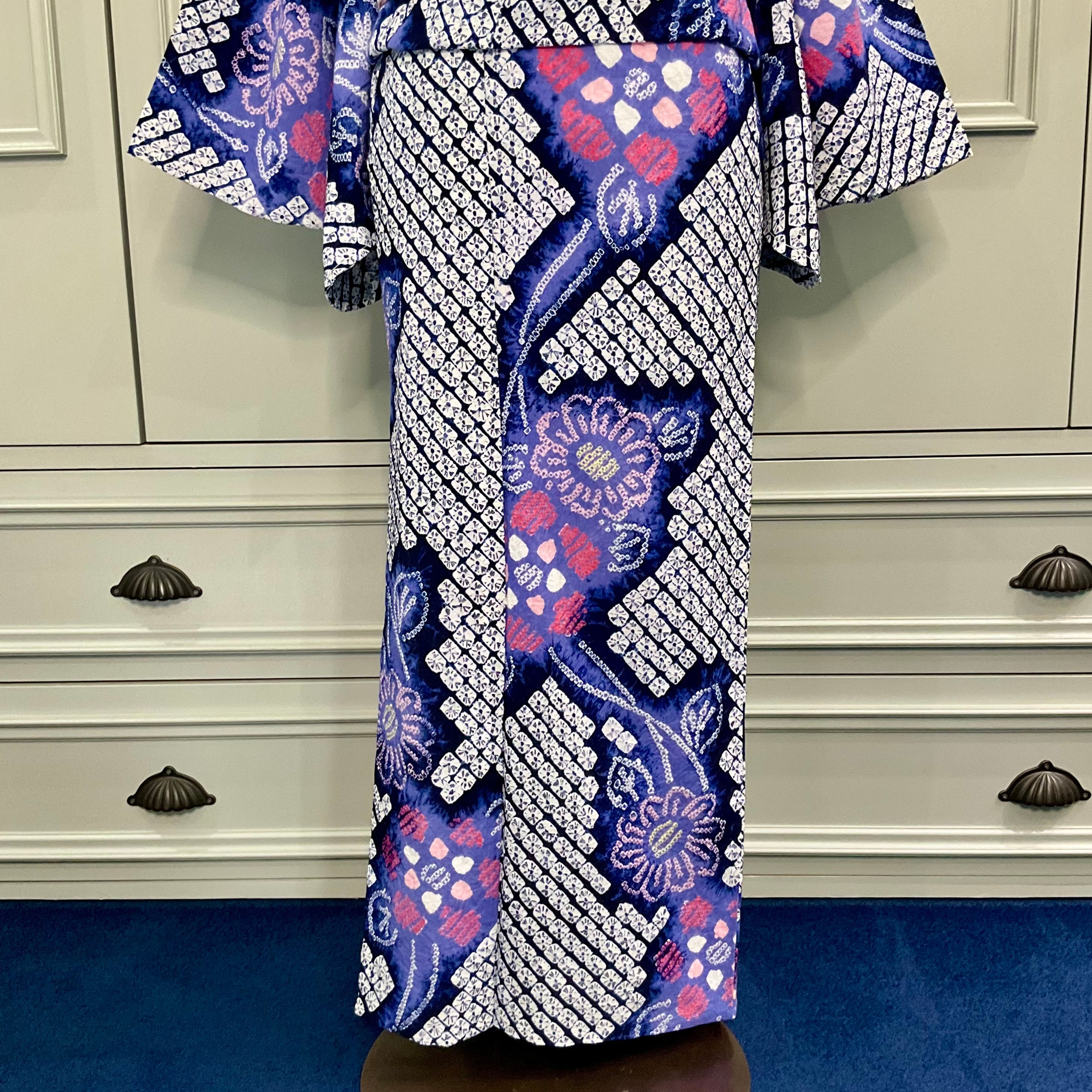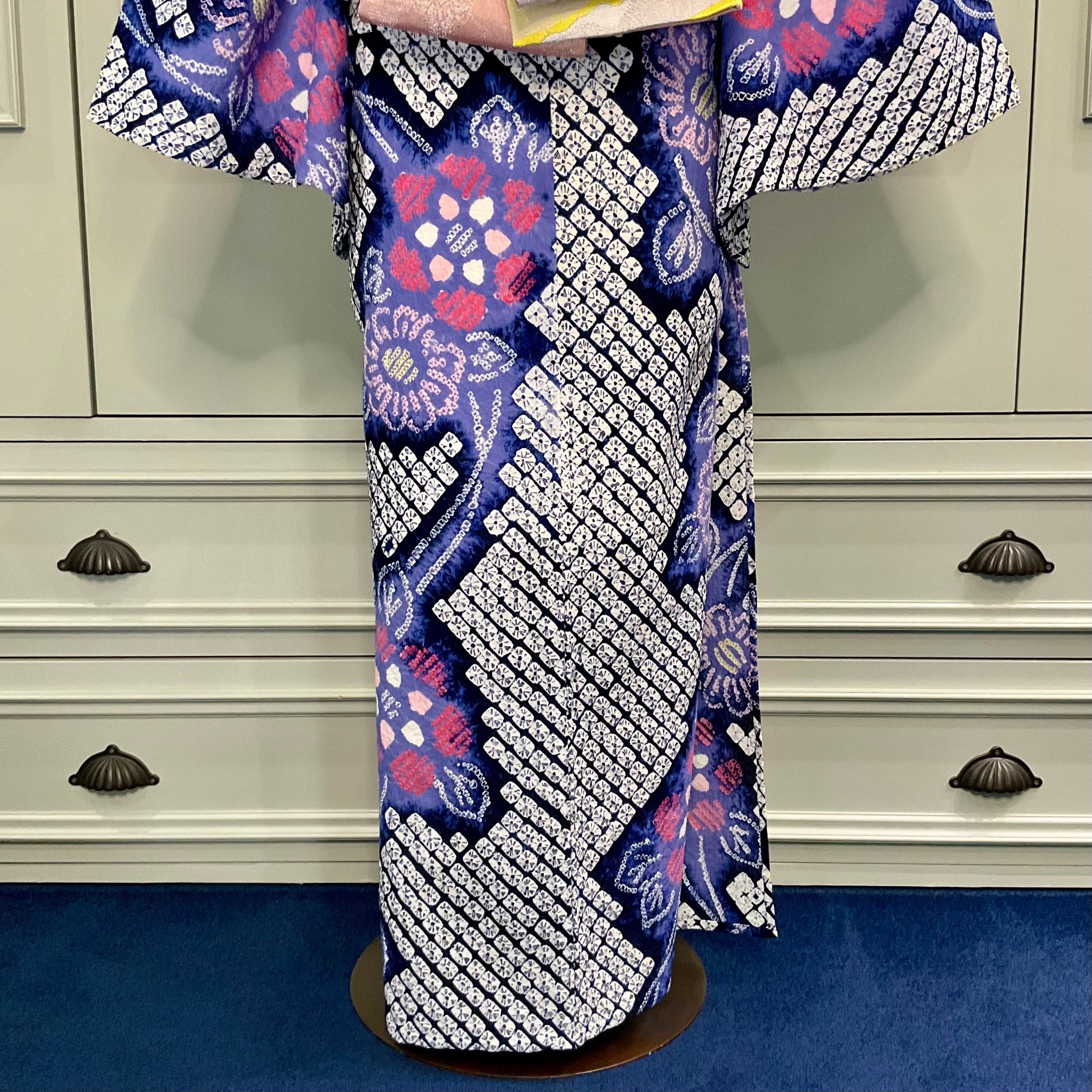 宵花しぼり*幾何学 ホワイト 白地 花 群青 有松鳴海絞り浴衣 B196