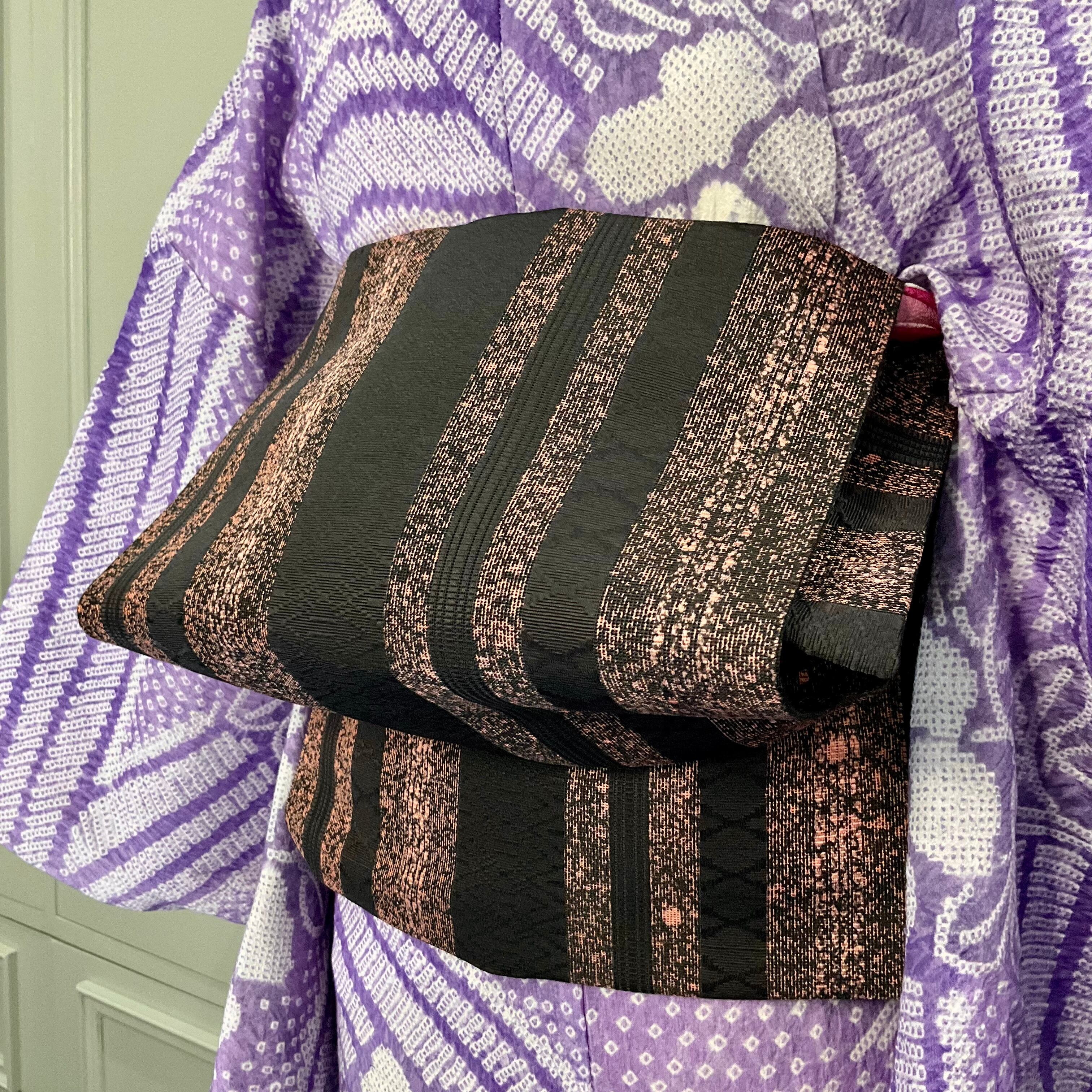 ブラックの静かな気配の帯ながらも、博多織のしっかりとした存在感は◎