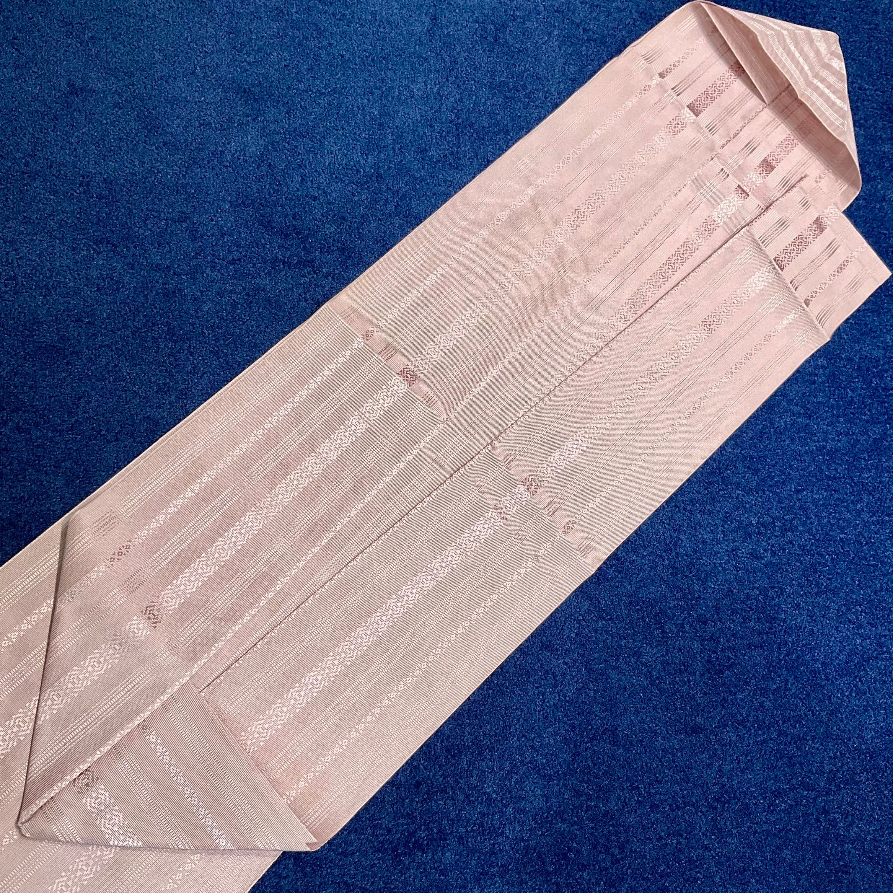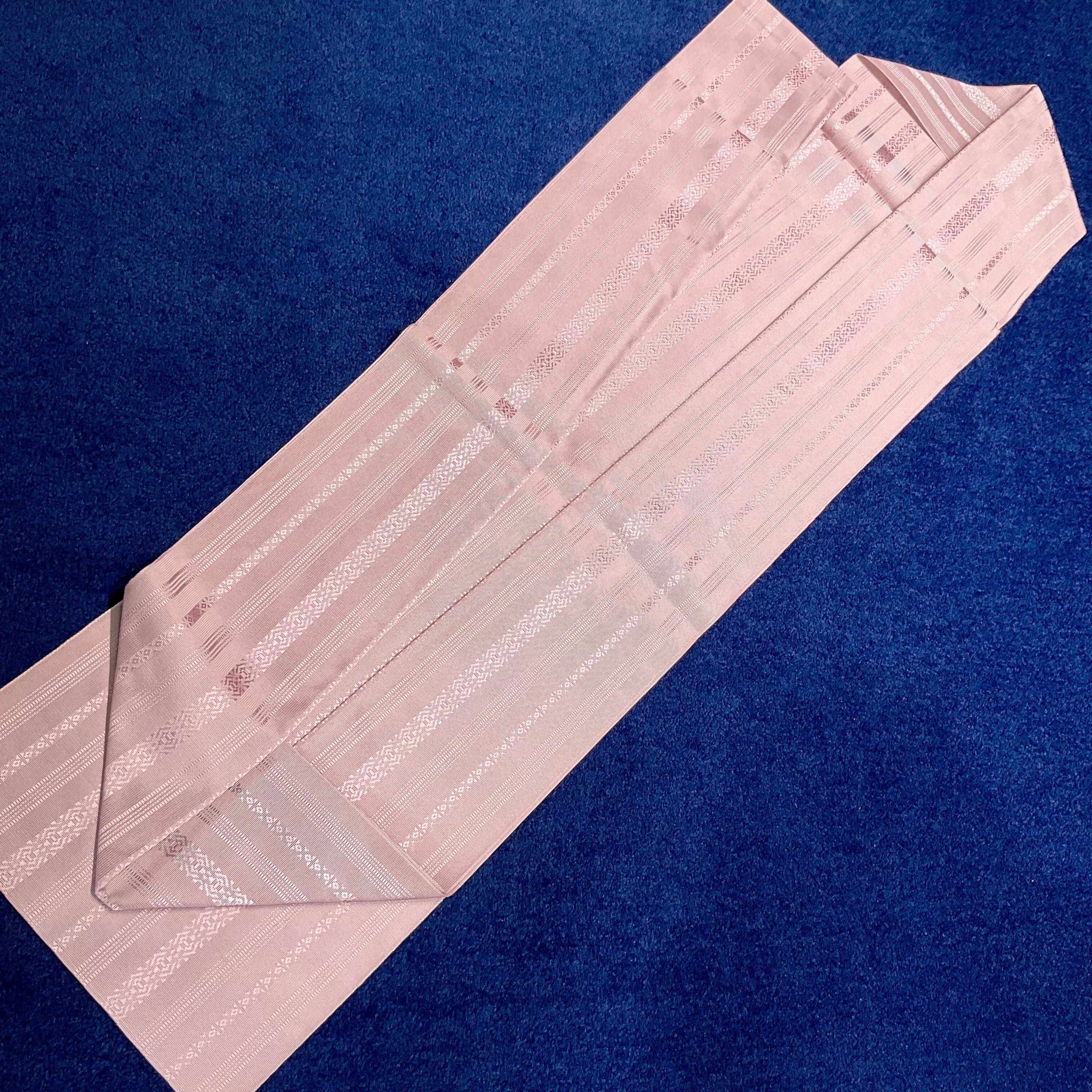 淡いピンクグレーのくすみある地色に、ほんのり浮かび上がる縞模様はとても涼しげ♫