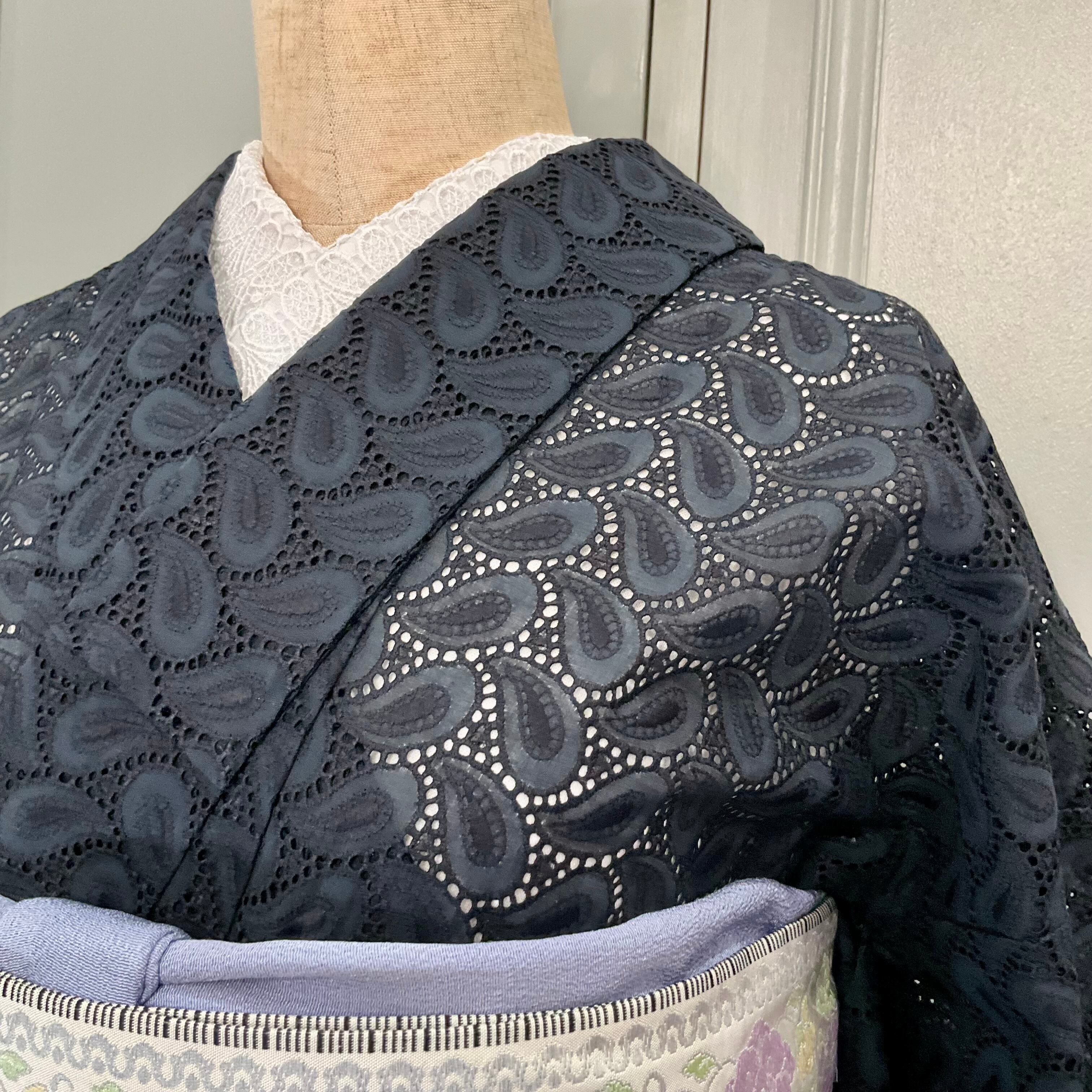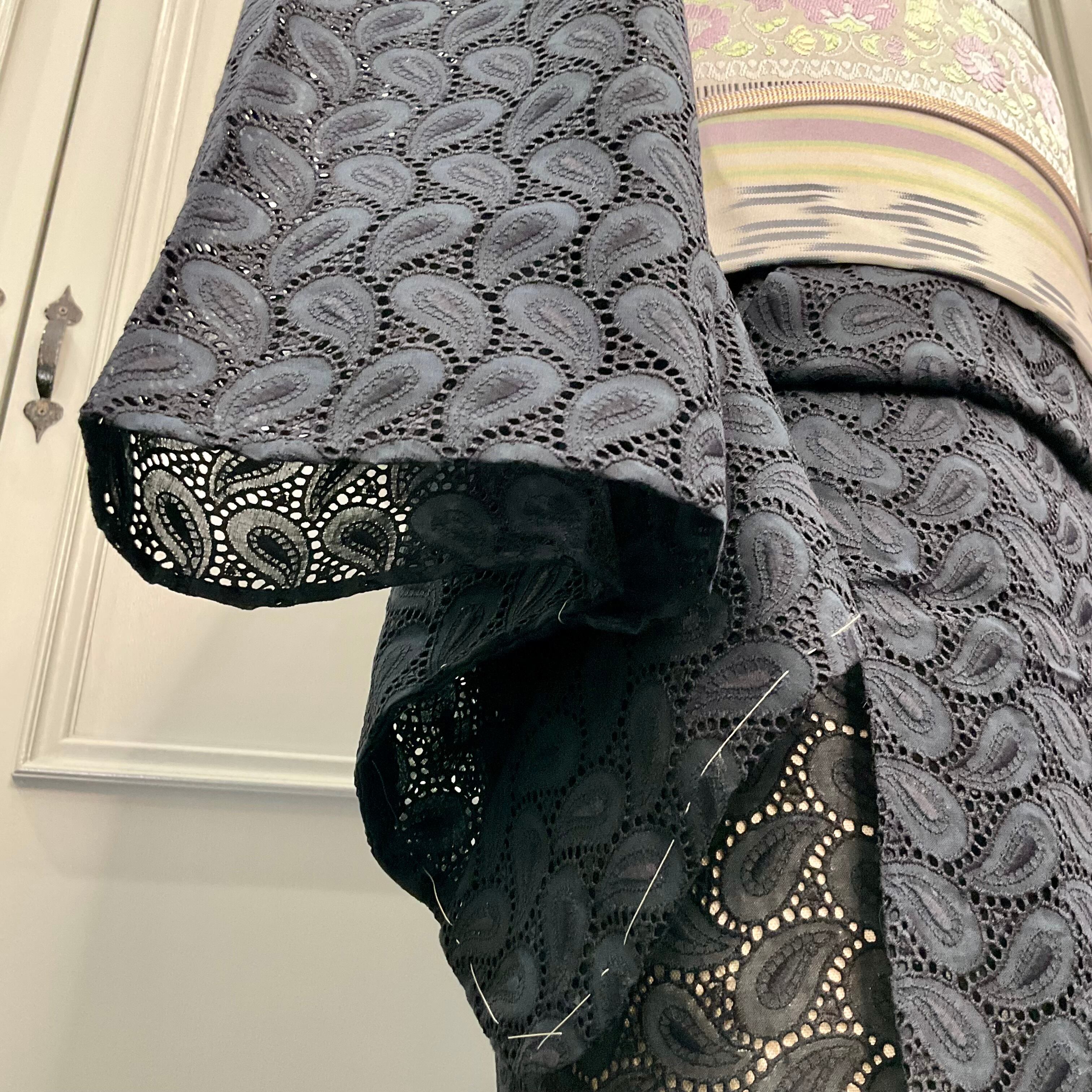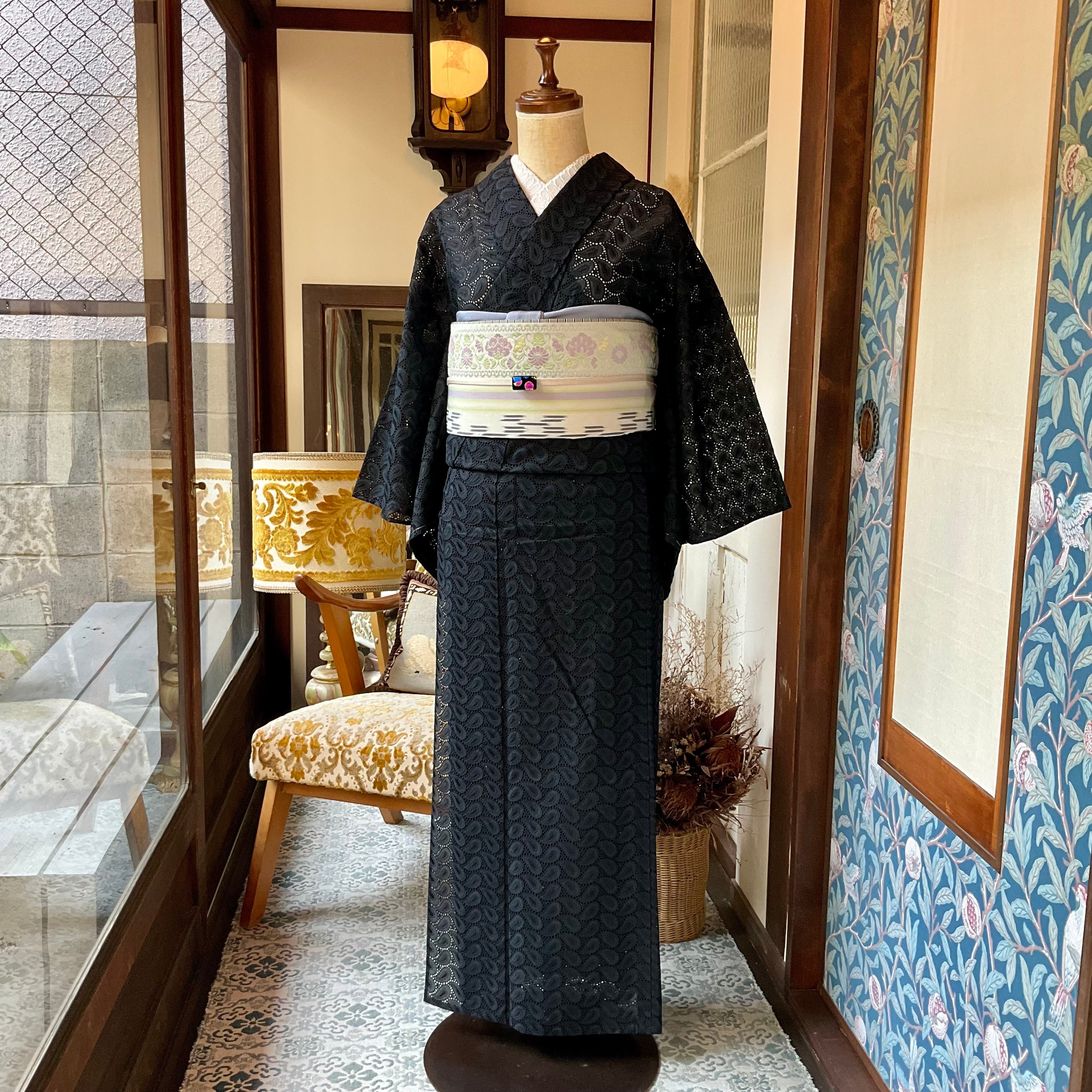 単衣*paisley Lace*未使用品 ビンテージ ブラックレース レース着物 B211