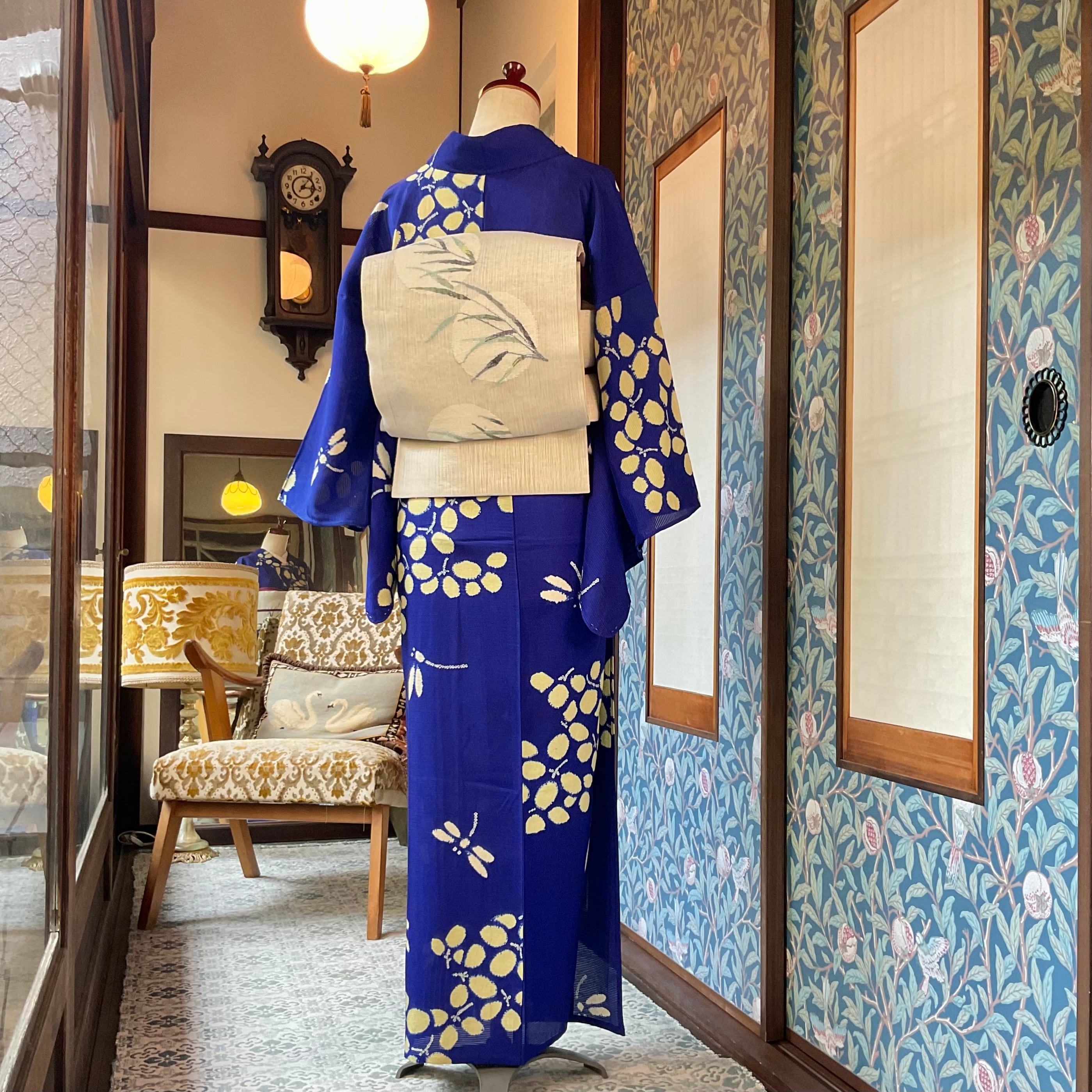 現代物の夏着物や単衣はもちろん合いますが、今回はアンティークの夏着物に合わせてみました*