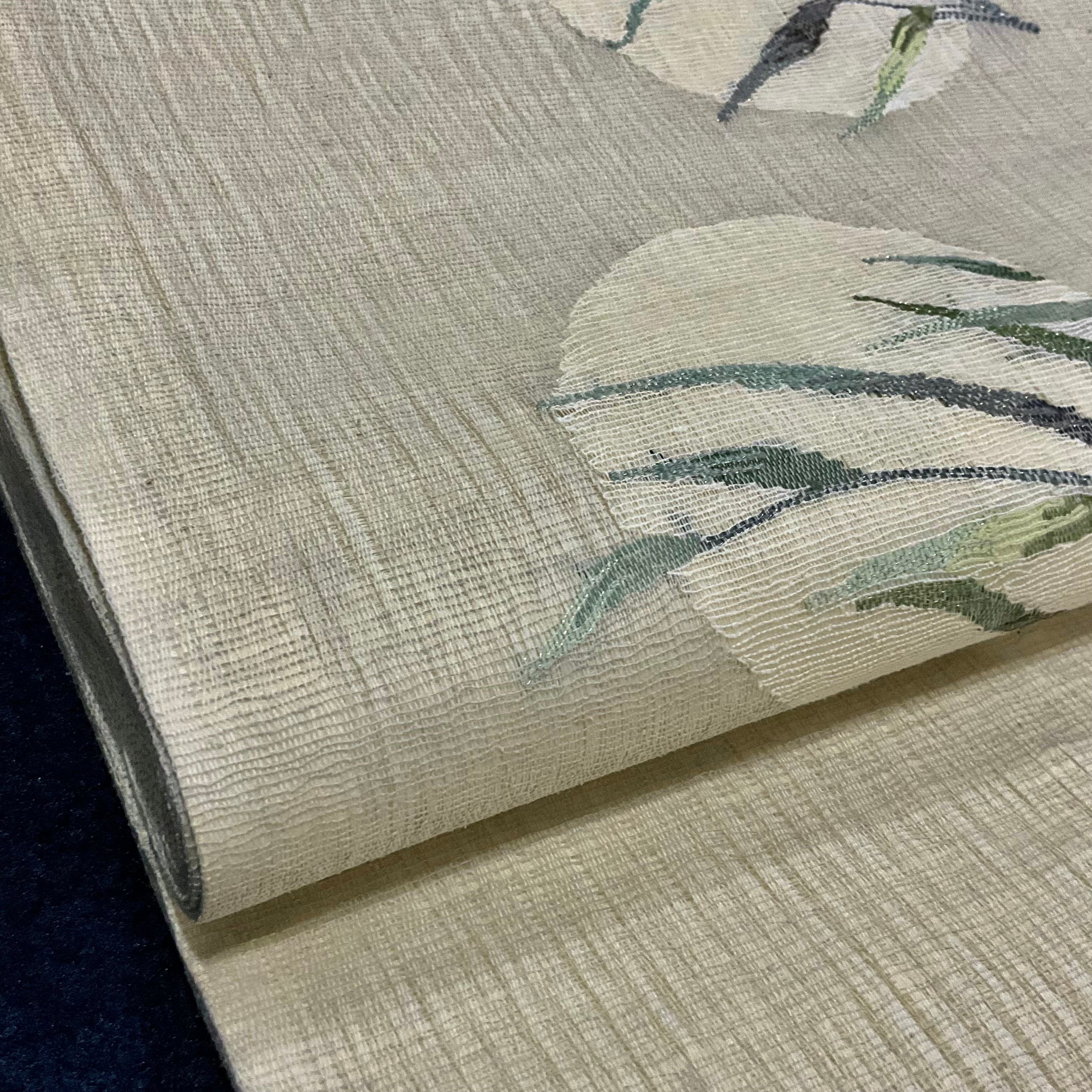 丸窓に秋草*夏帯 リバーシブル 生成り 洒落袋帯 B214