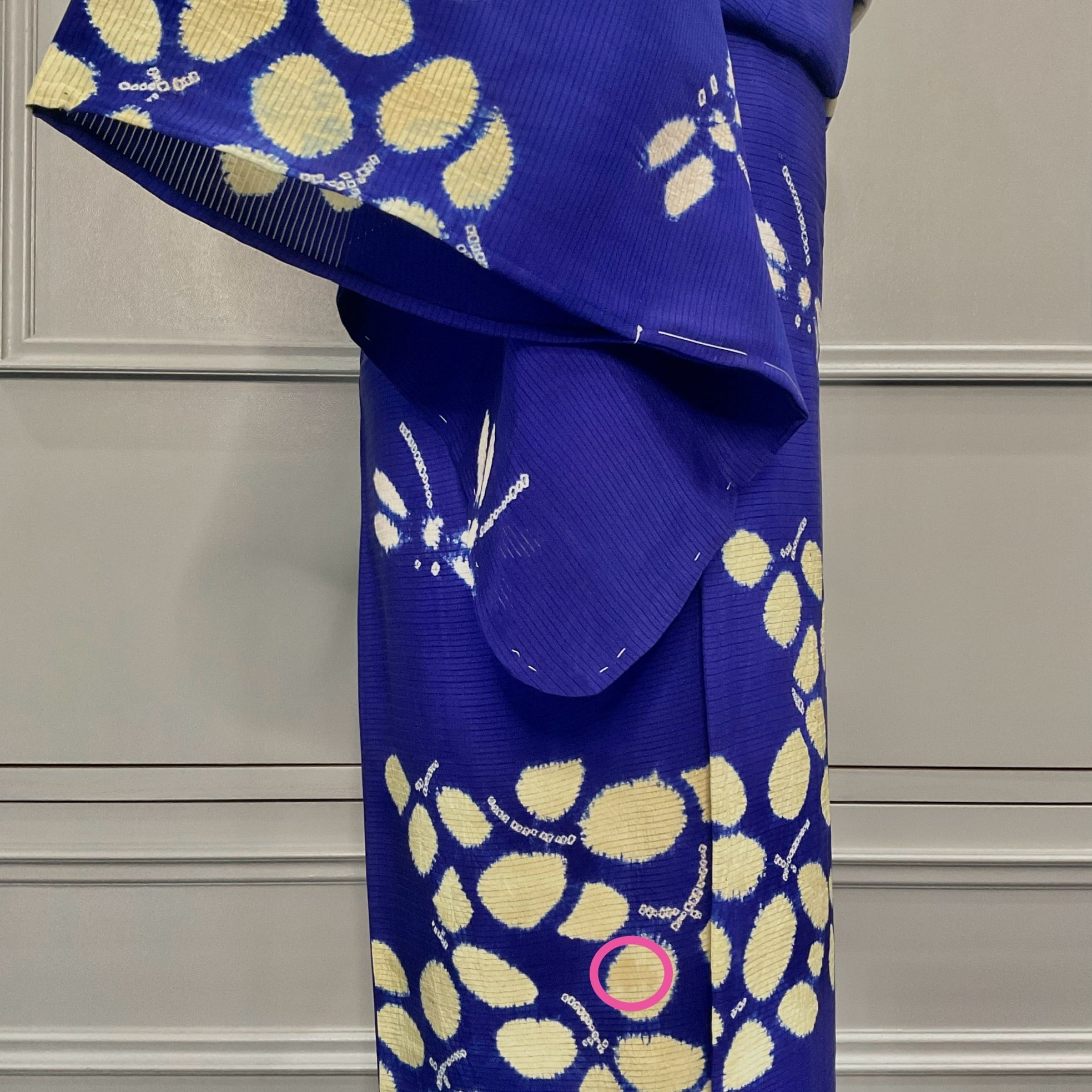 左衿、右後ろ裾、後ろにうっすらシミ。