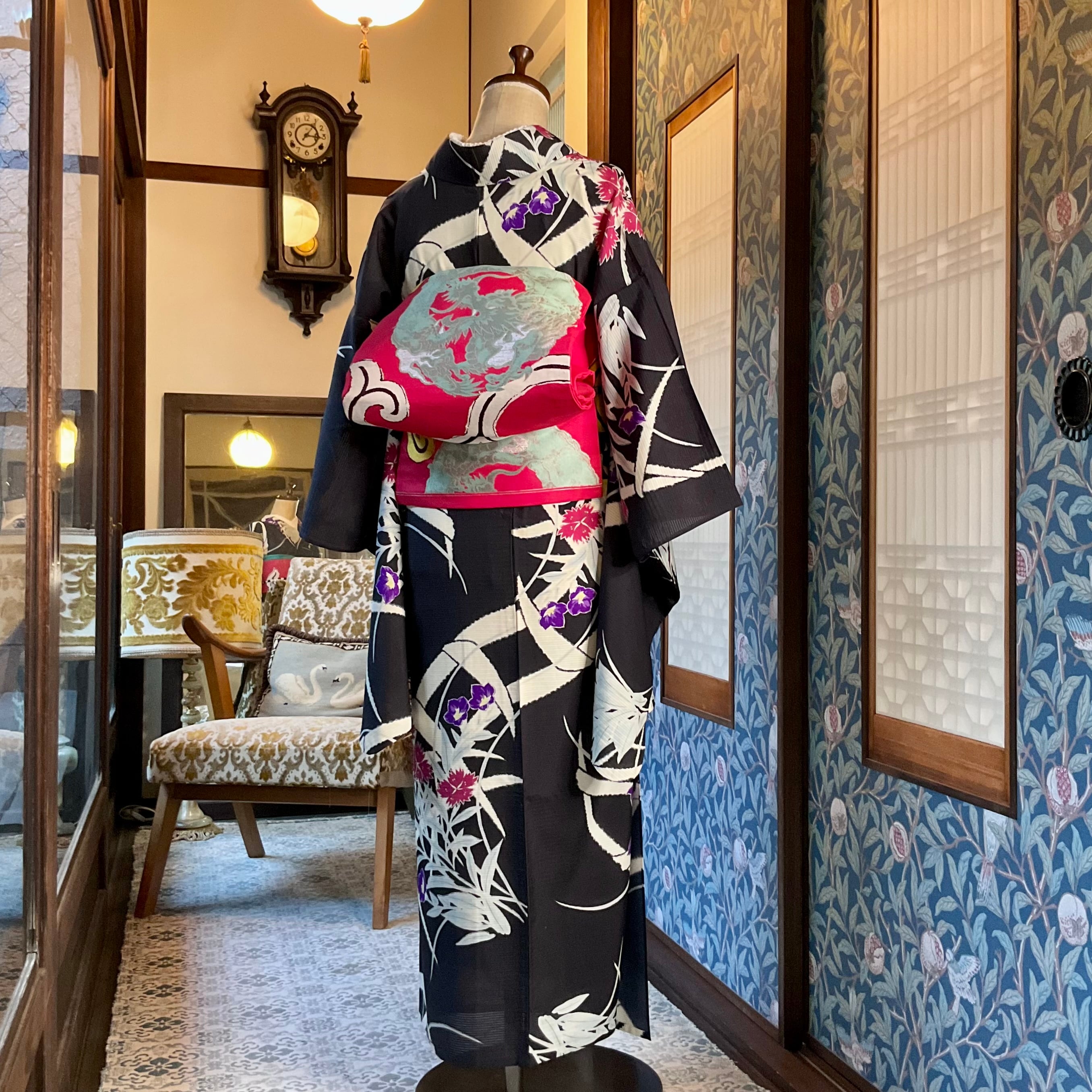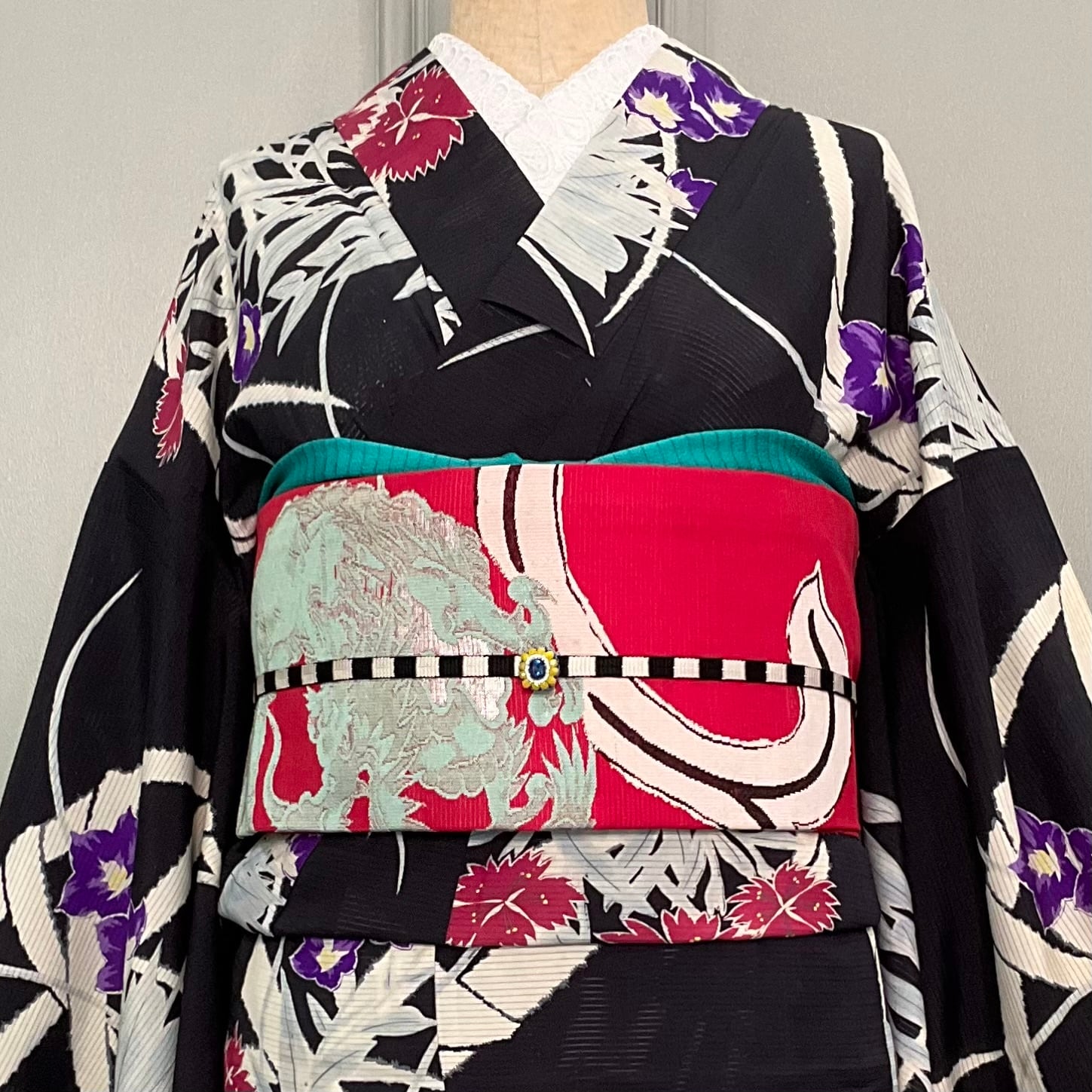 アンティークの付下げや訪問着 (単衣か夏物) をカジュアルに着たい時に合わせるのもオススメ♩