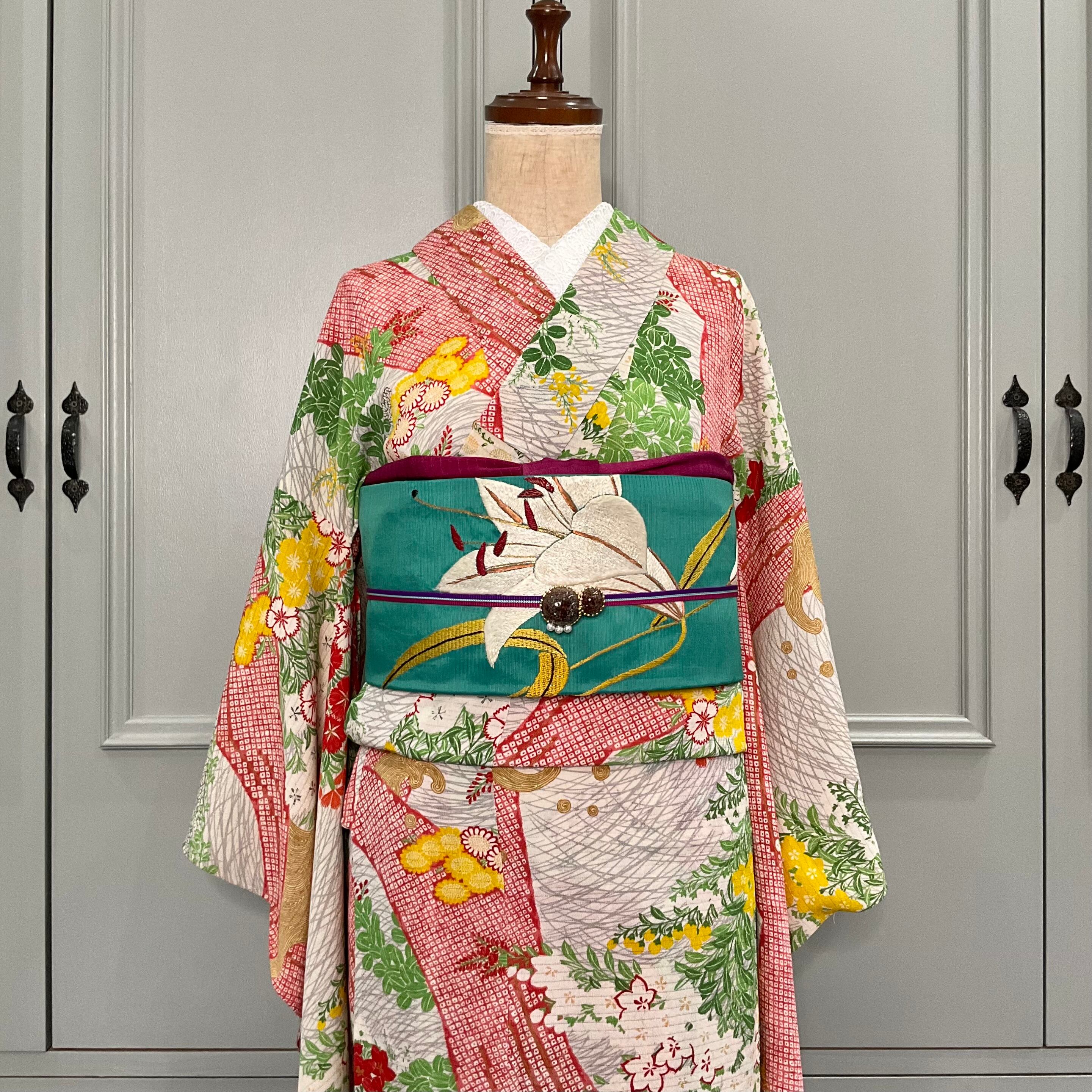 絽縮緬の生地の夏着物は、単衣のような感覚で秋口まで着られる一着です✨️