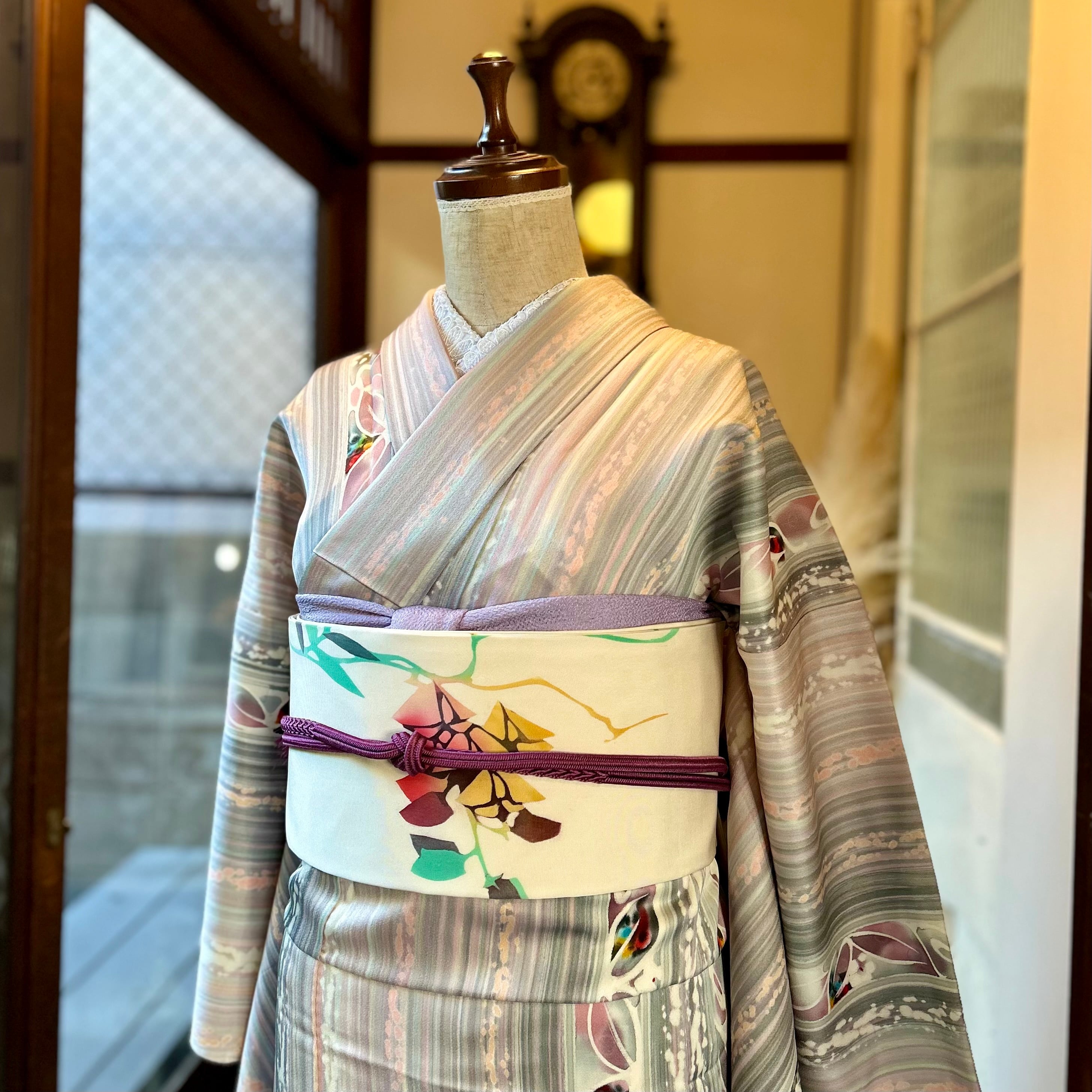 ○ 合わせた着物とオリジナル帯揚げラベンダーはweb shop掲載品です♪
