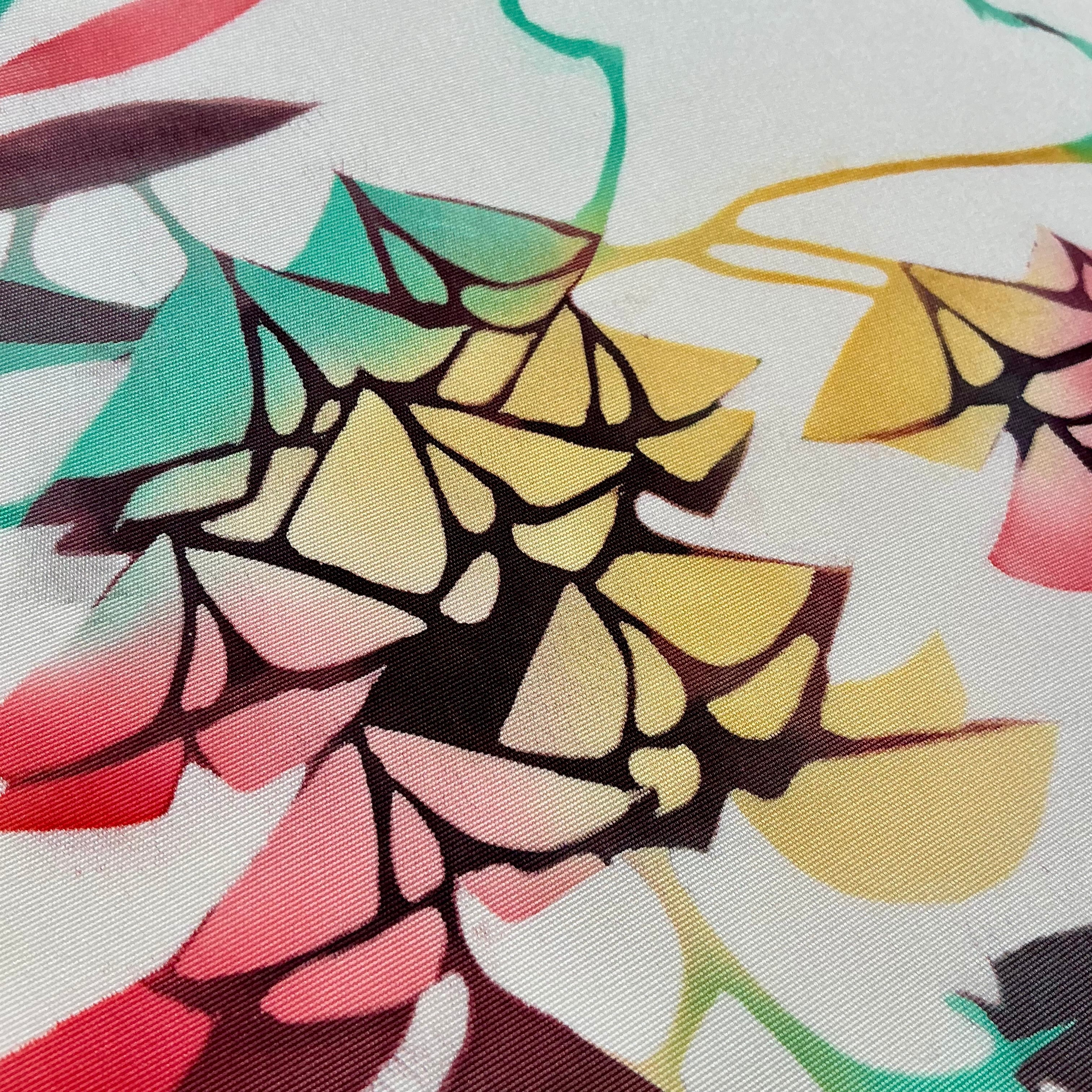 少しやわらかいホワイトの地色が表情をやさしくし、影絵のように描かれた花房が垂れ下がっている花の様子が、モダンで抽象的にアレンジされていて洒落た一枚✨