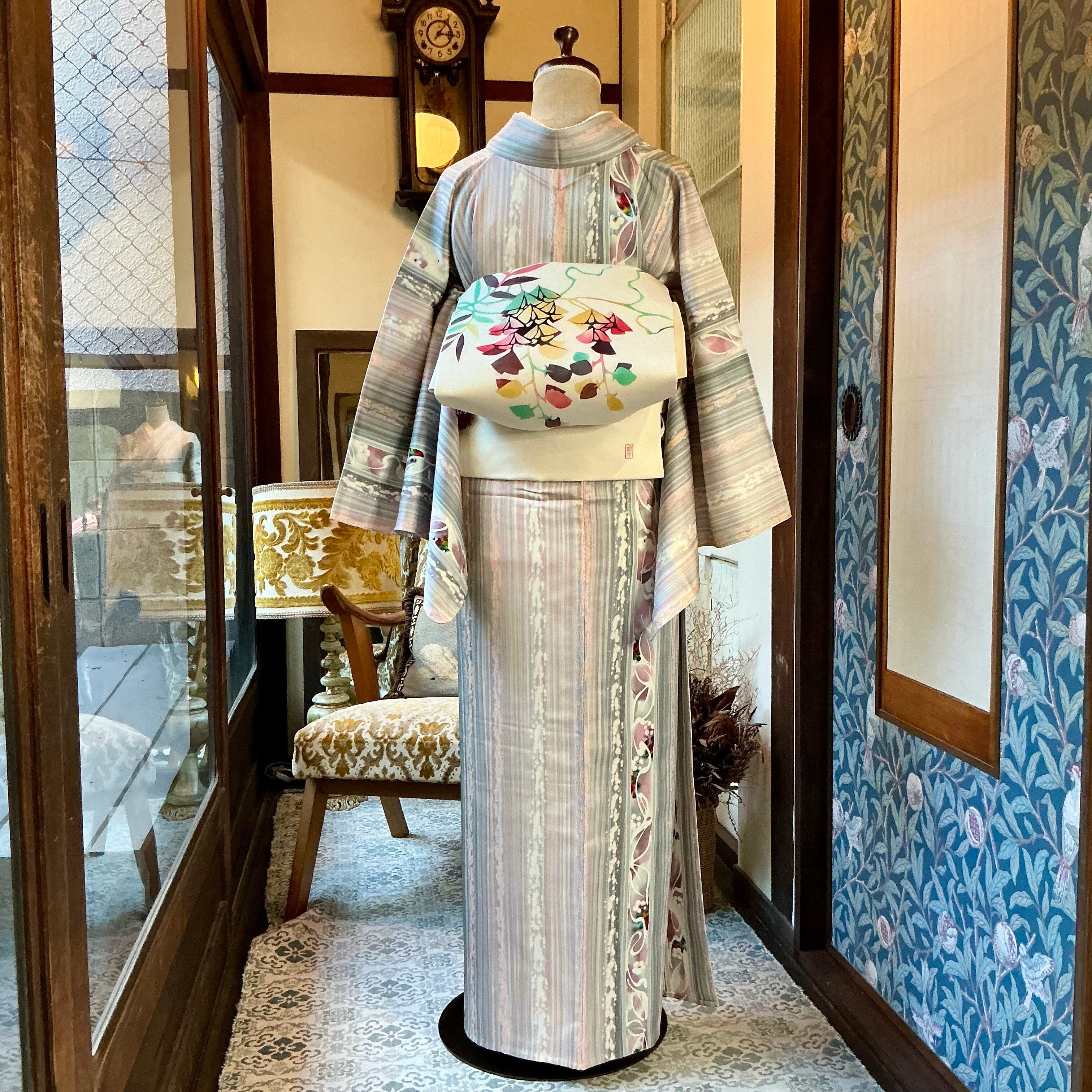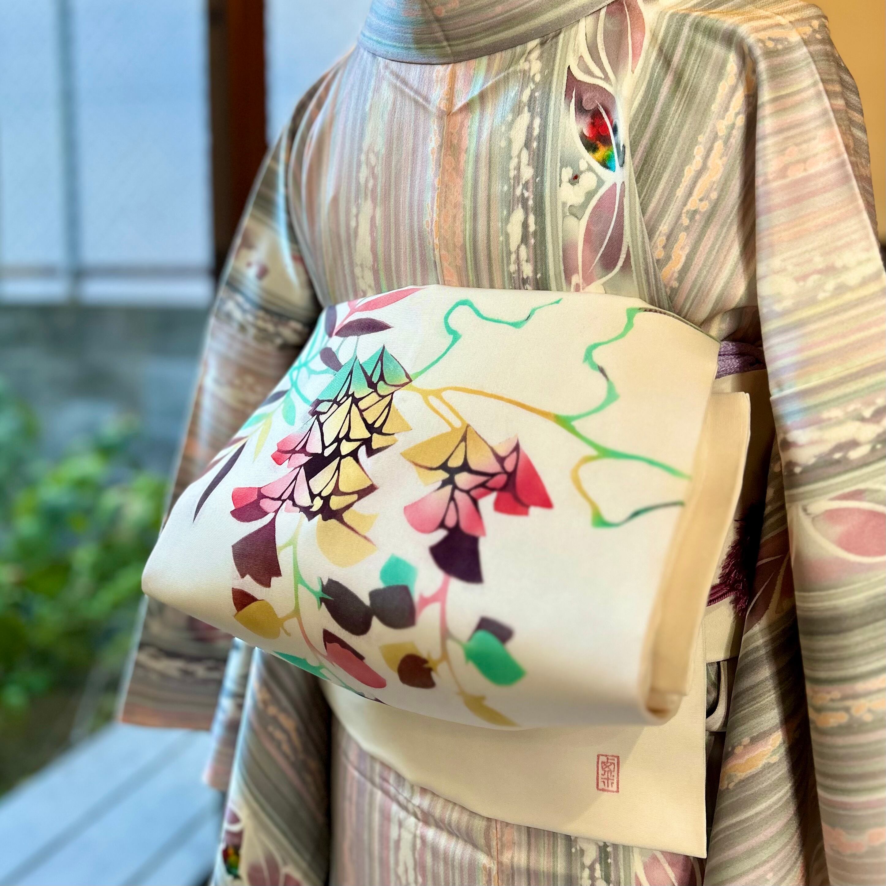サラリとした質感の塩瀬の帯は単衣着物にも合わせられるので、夏以外のスリーシーズン使えて便利です✨