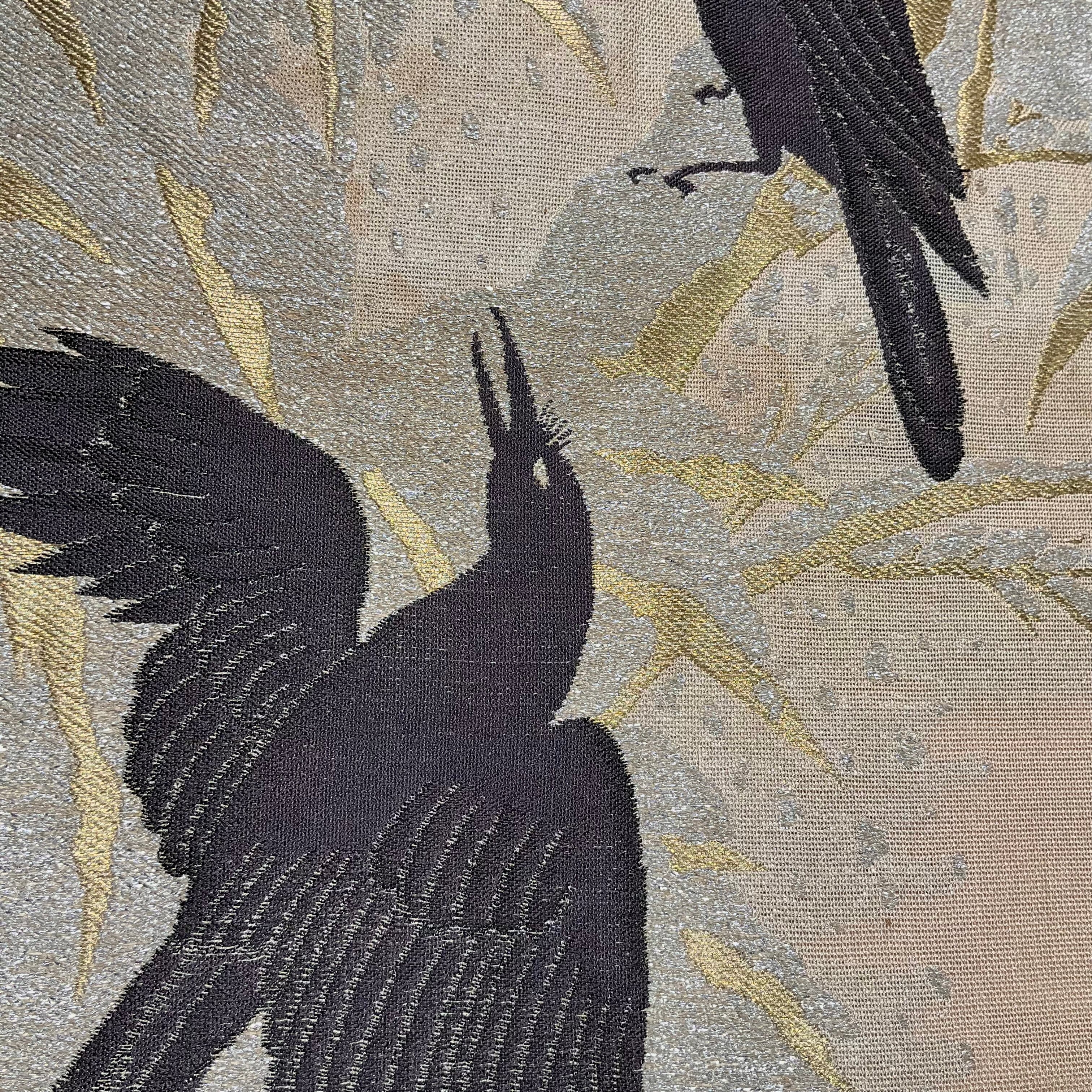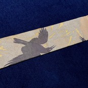 墨黒の烏が粋な雰囲気で、雪持ち笹の織り模様を、金糸と銀糸でを表現されていて、上品な煌めきと涼を感じる一本✨️