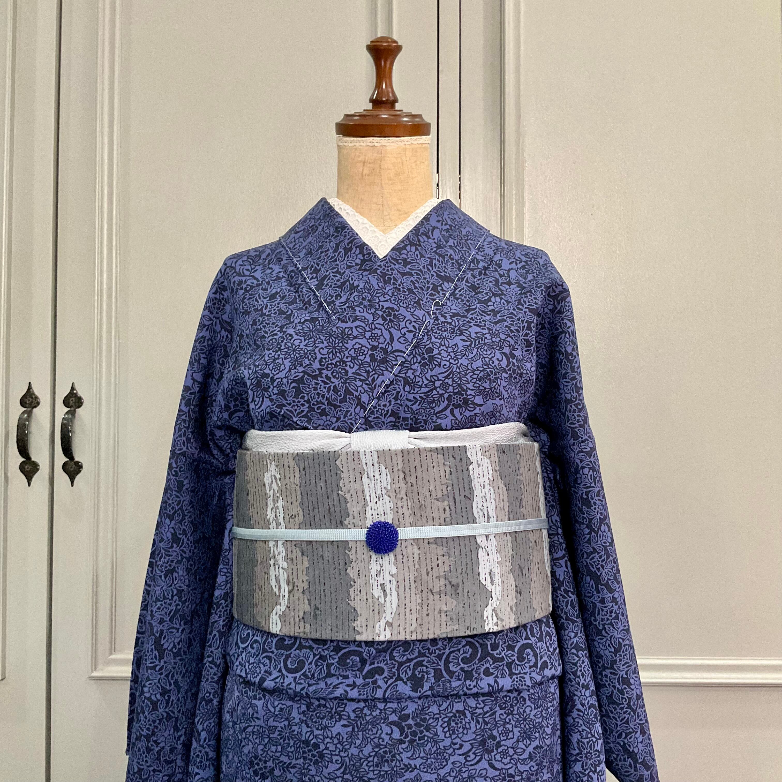 ○合わせた帯とオリジナル帯揚げアイスグレーとオリジナル三分紐ブルーグレー×ホワイトはweb shop掲載品です♪