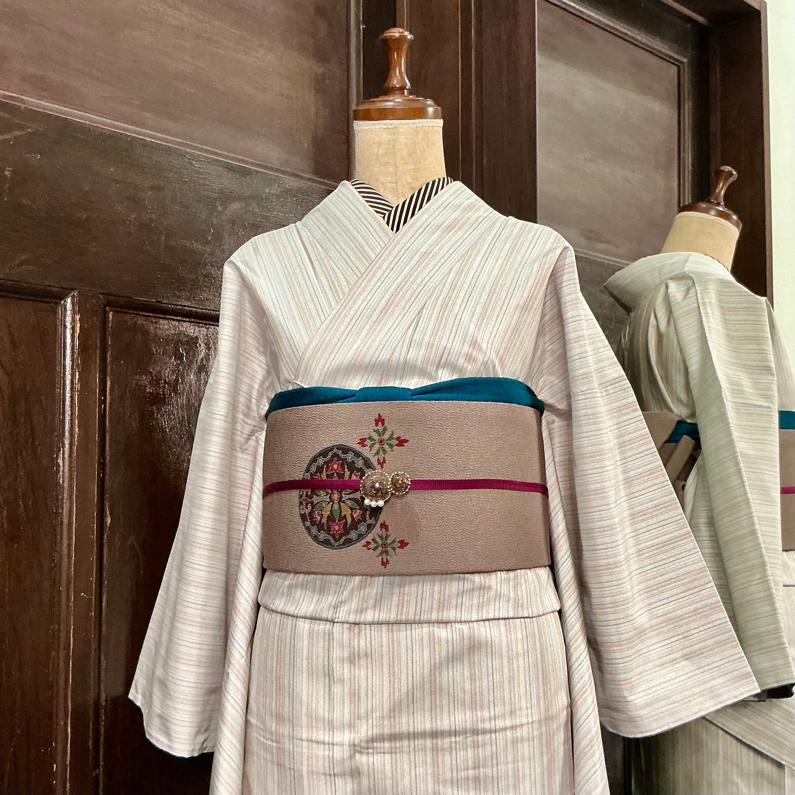 明るめの配色は抜け感があり、粋な雰囲気の中に縞模様のやわらかなカラーが女性らしさをプラスしていますね