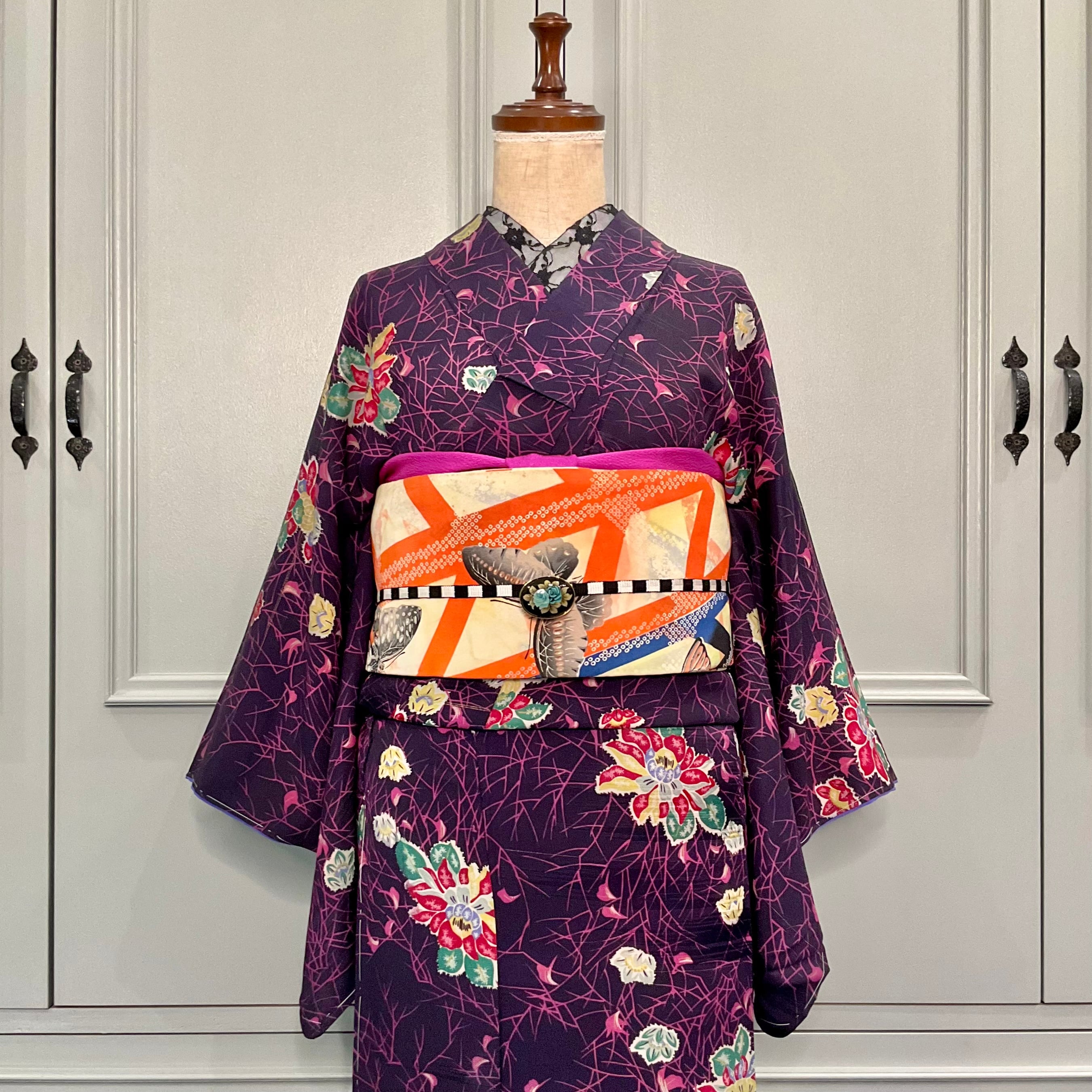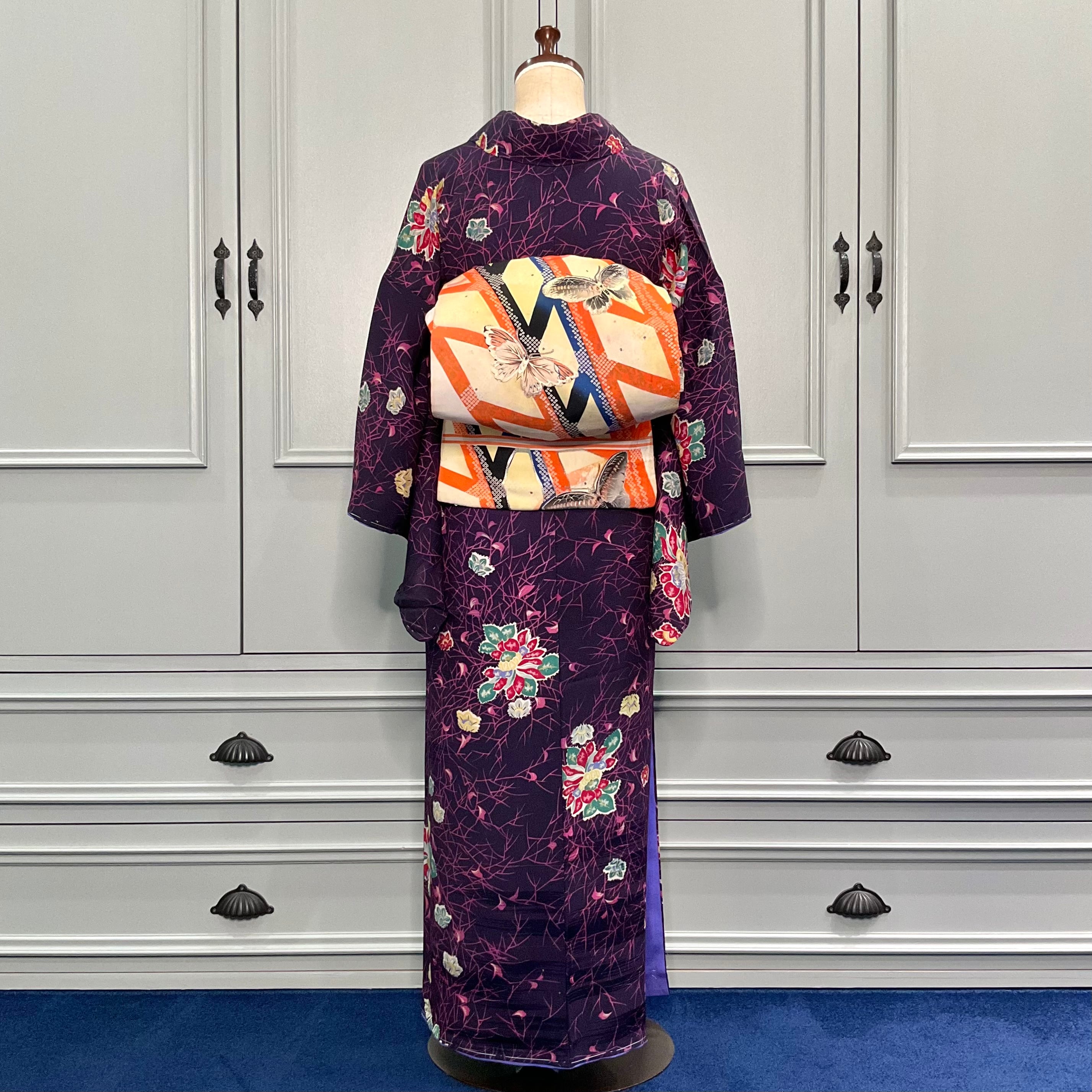 裏地の八掛が絶妙なパープル系のカラーでおしゃれ♩