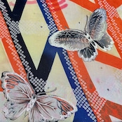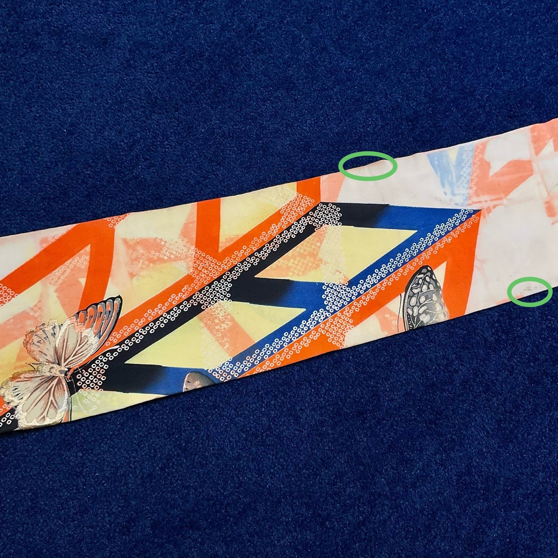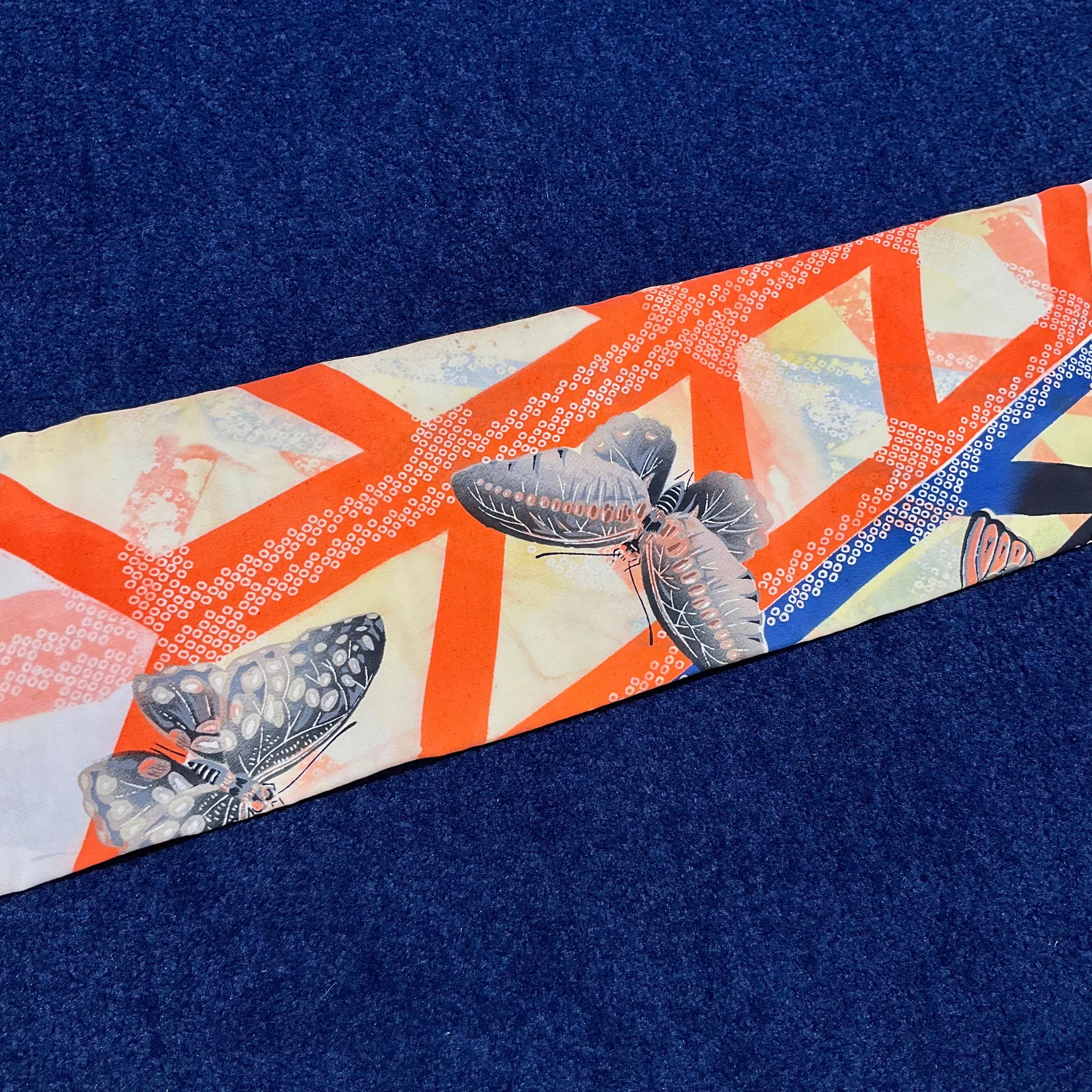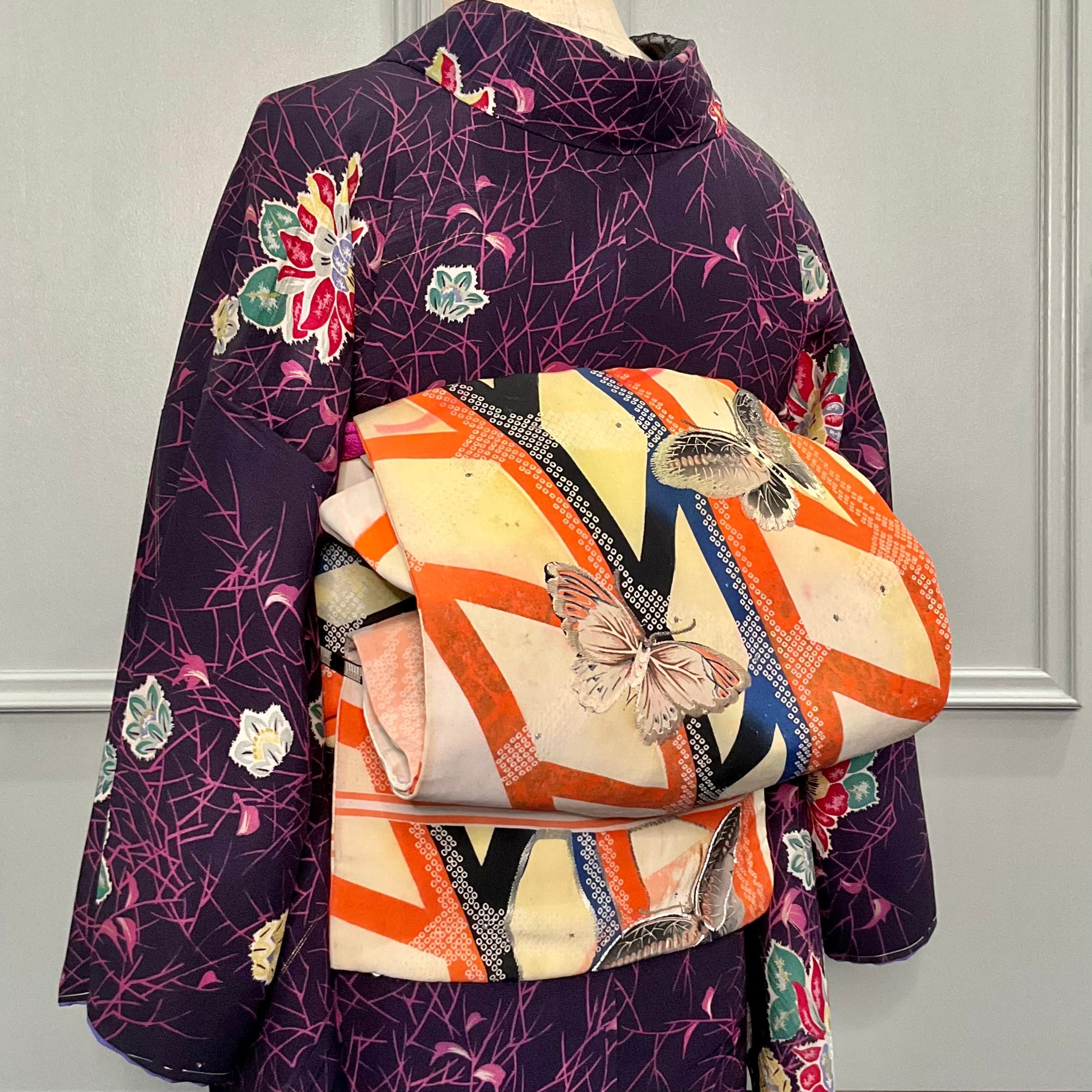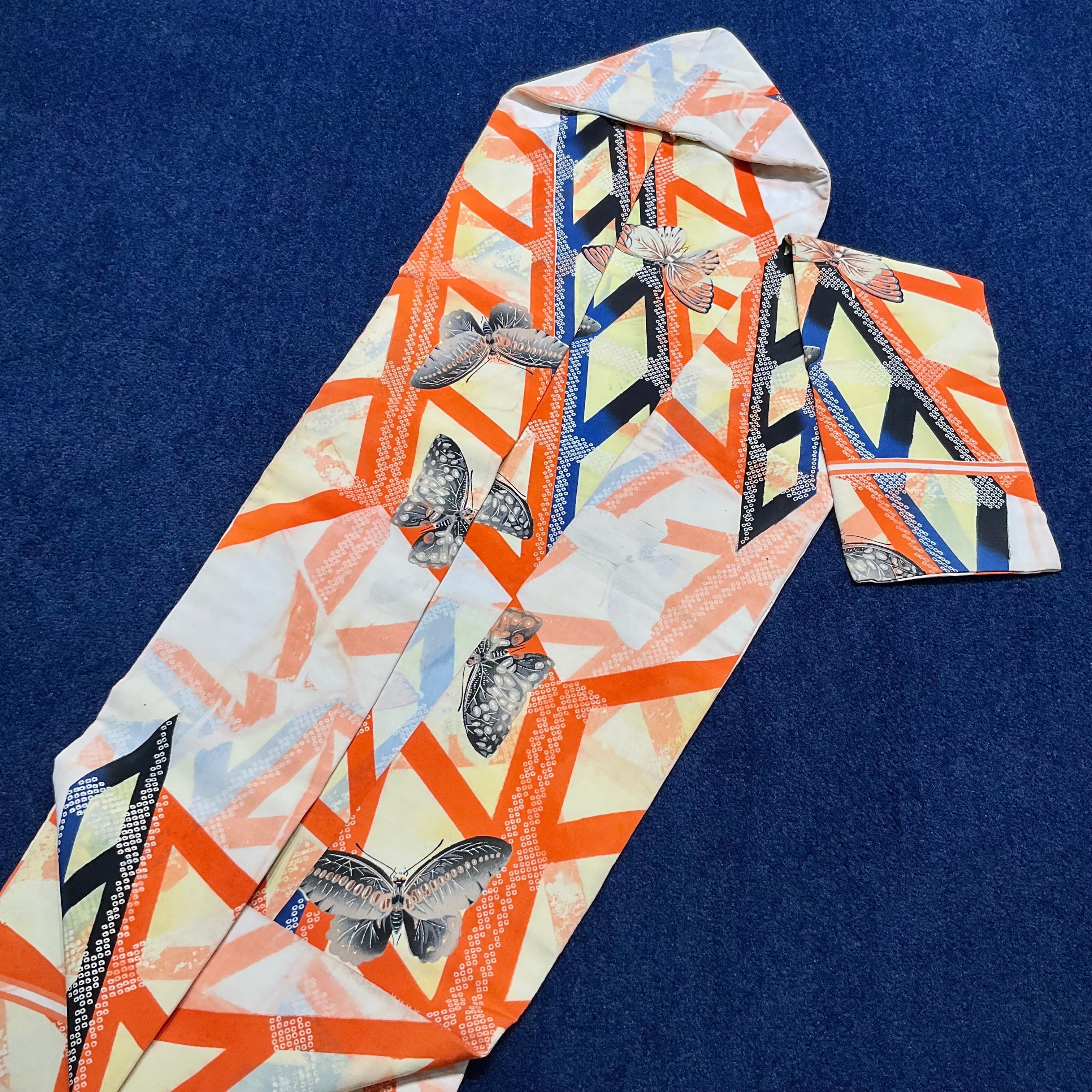 Butterfly's Trick*蝶々 刺繍 幾何学 バタフライ クリームイエロー オレンジ ブラック ハロウィンカラー 染め帯 アンティーク名古屋帯 B273