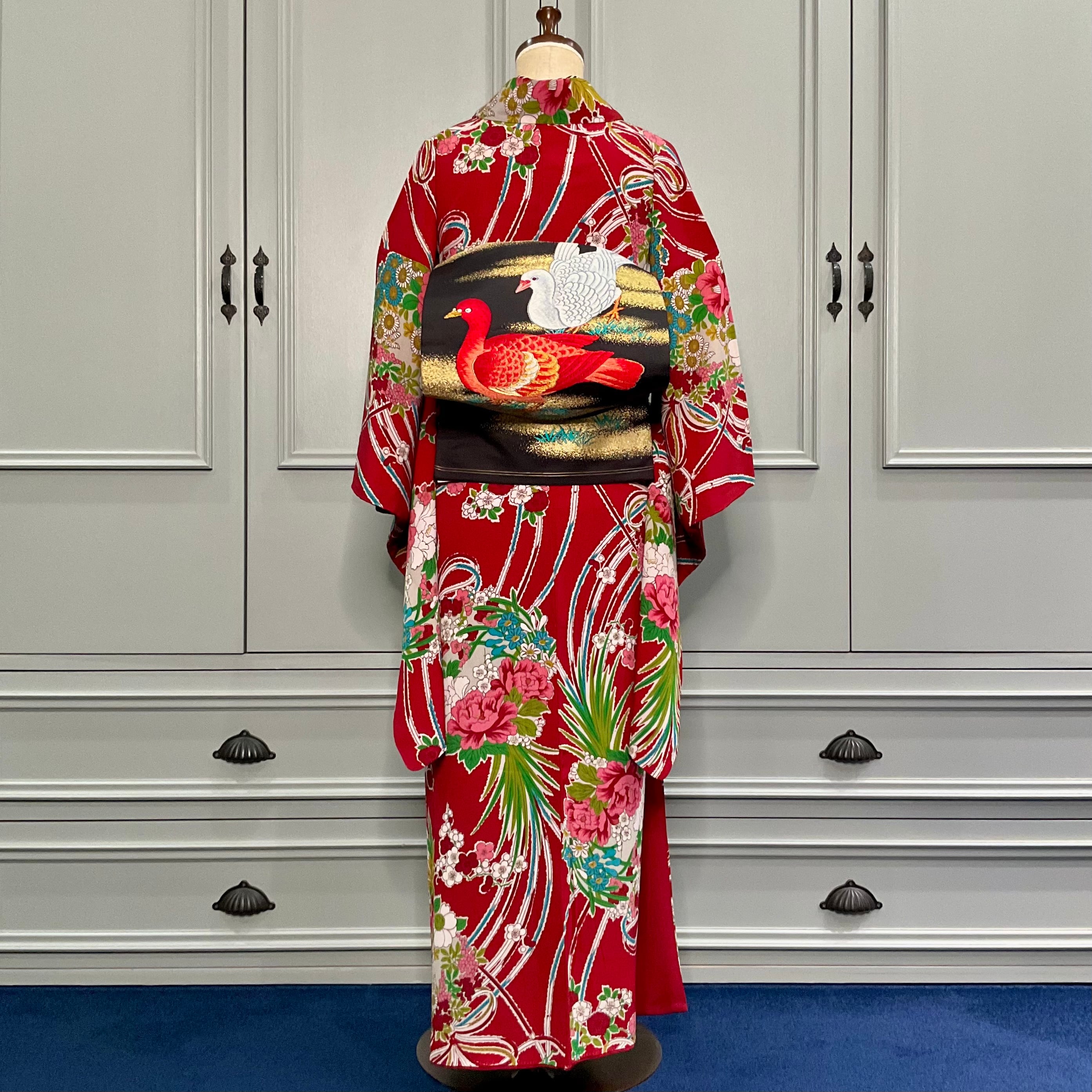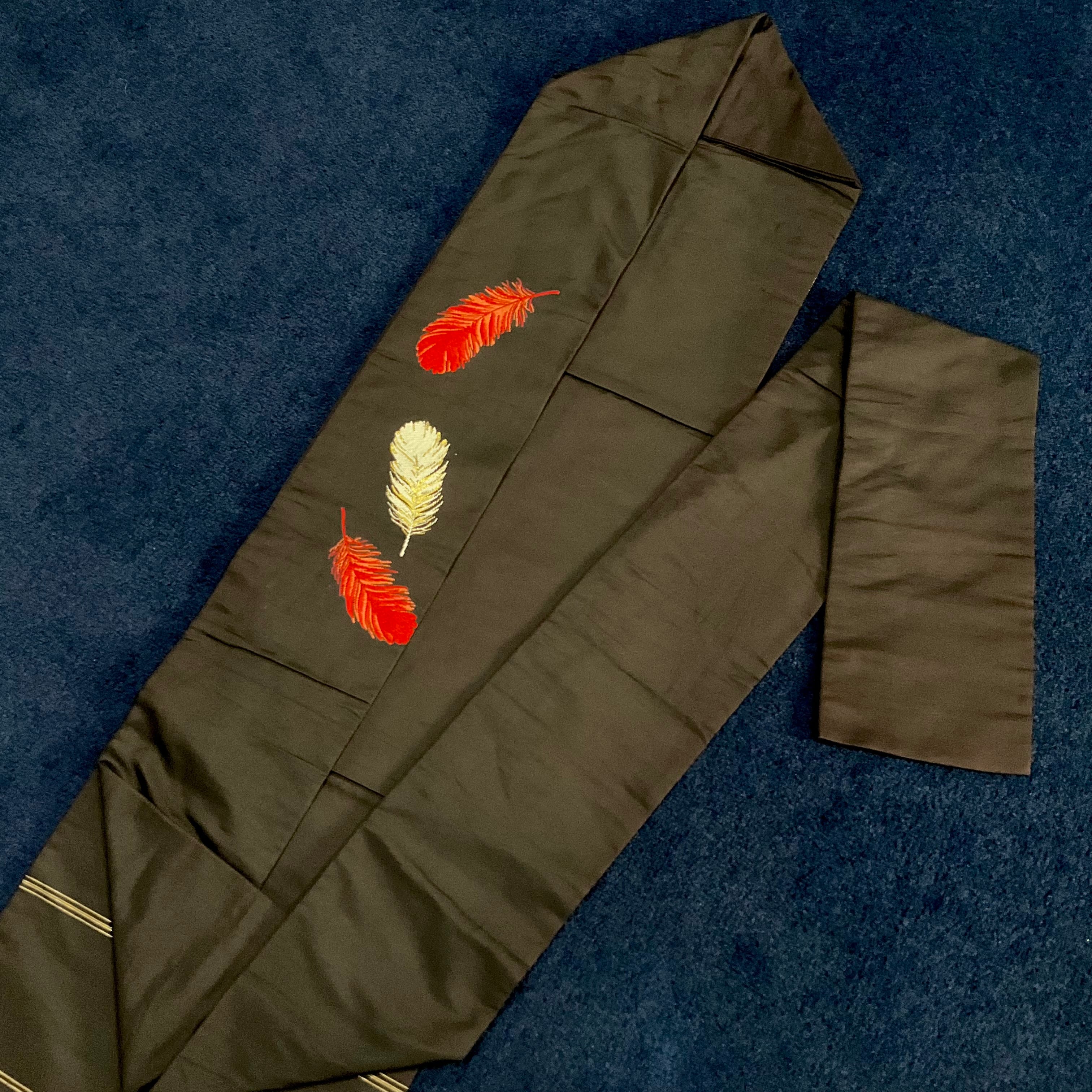 黒地の帯はクール系な着物にも、華やかな着物にも合わせやすくキマる一本です♥