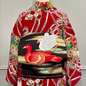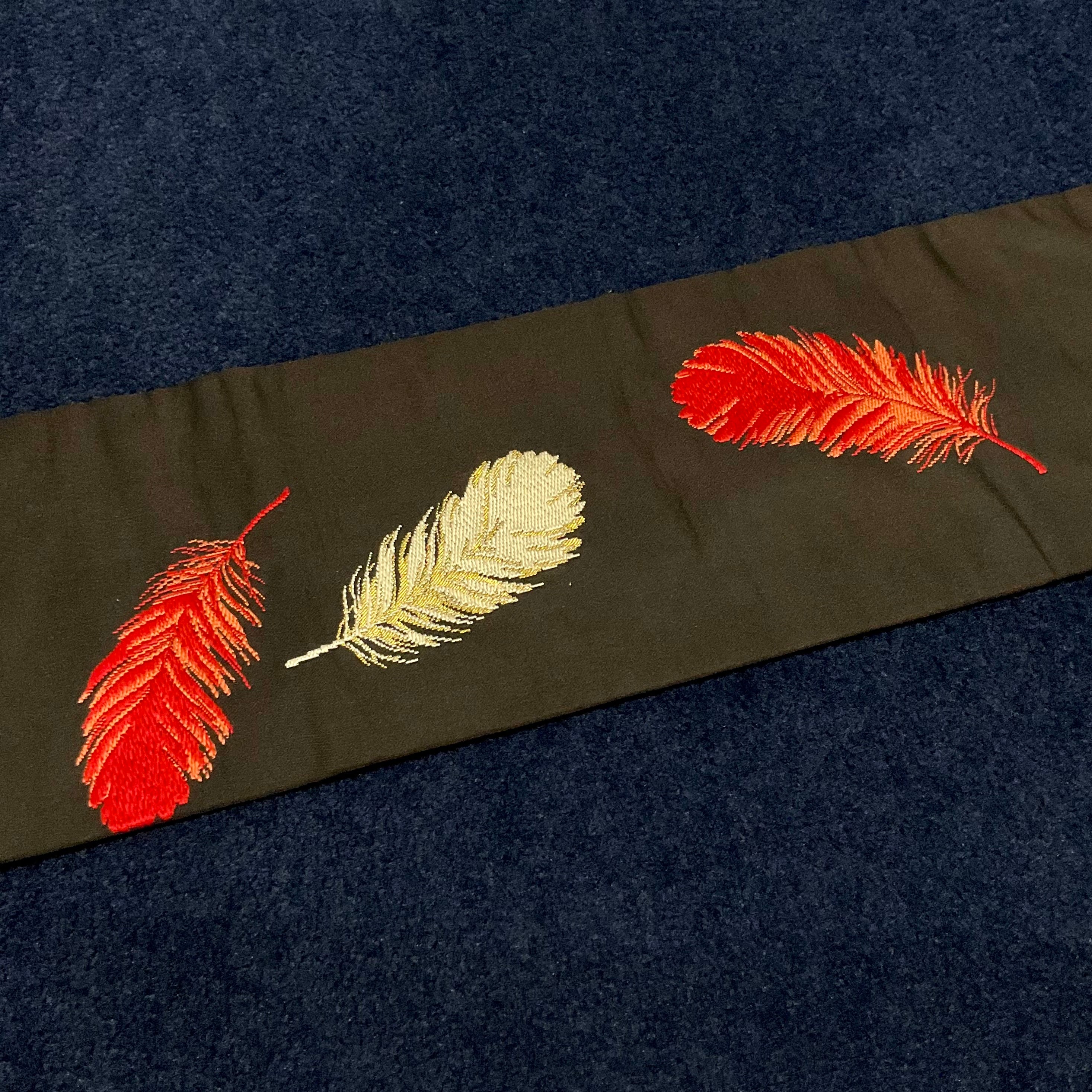 黒地に紅白の鳩さんの織り模様が美しいアンティーク名古屋帯です