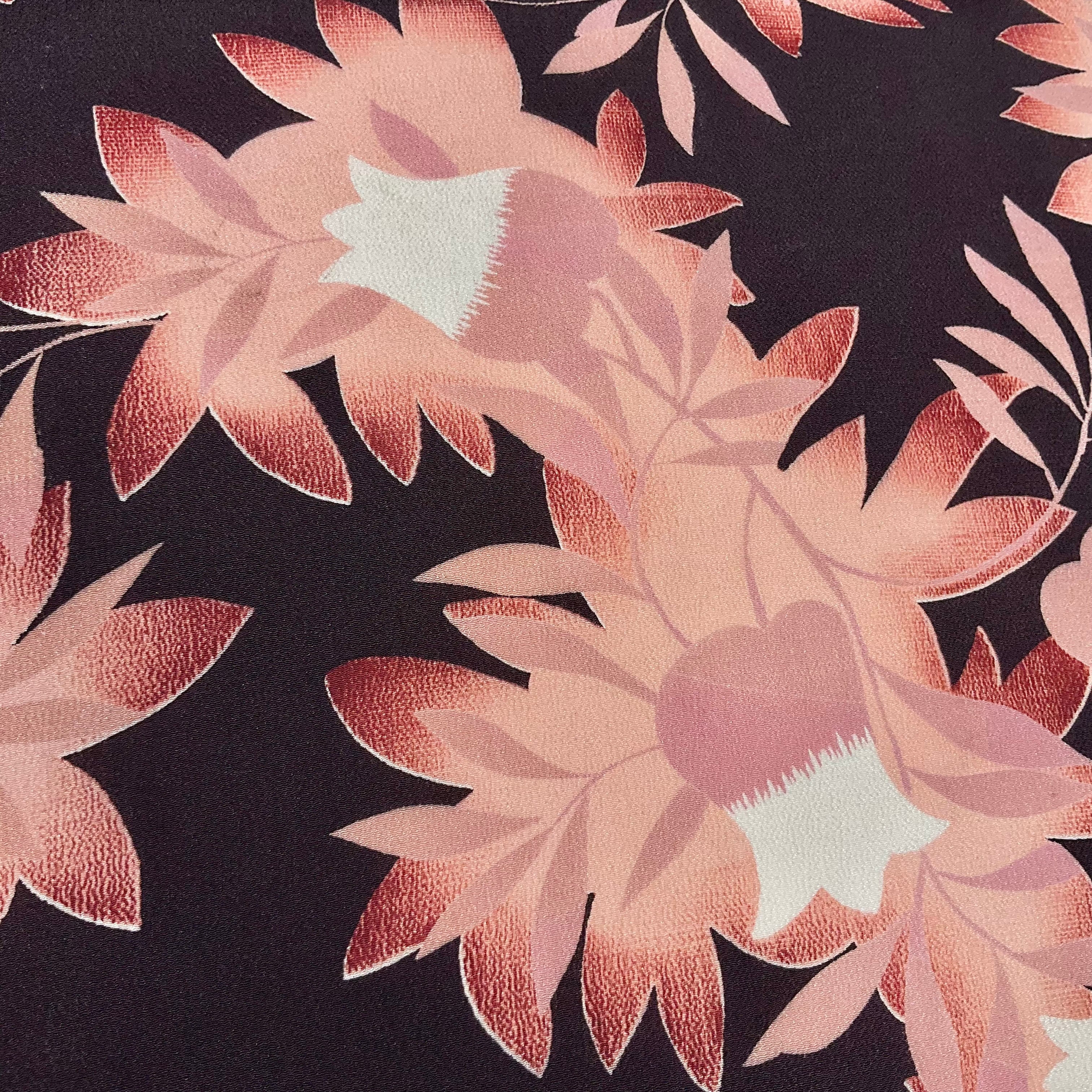 Blossom shadows*黒 花 葉 フラワー シルエット くすみピンク アンティーク仕立て替え名古屋帯 B291