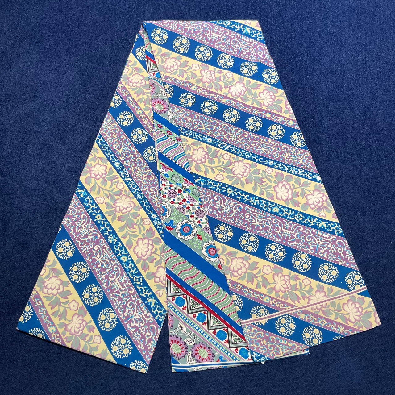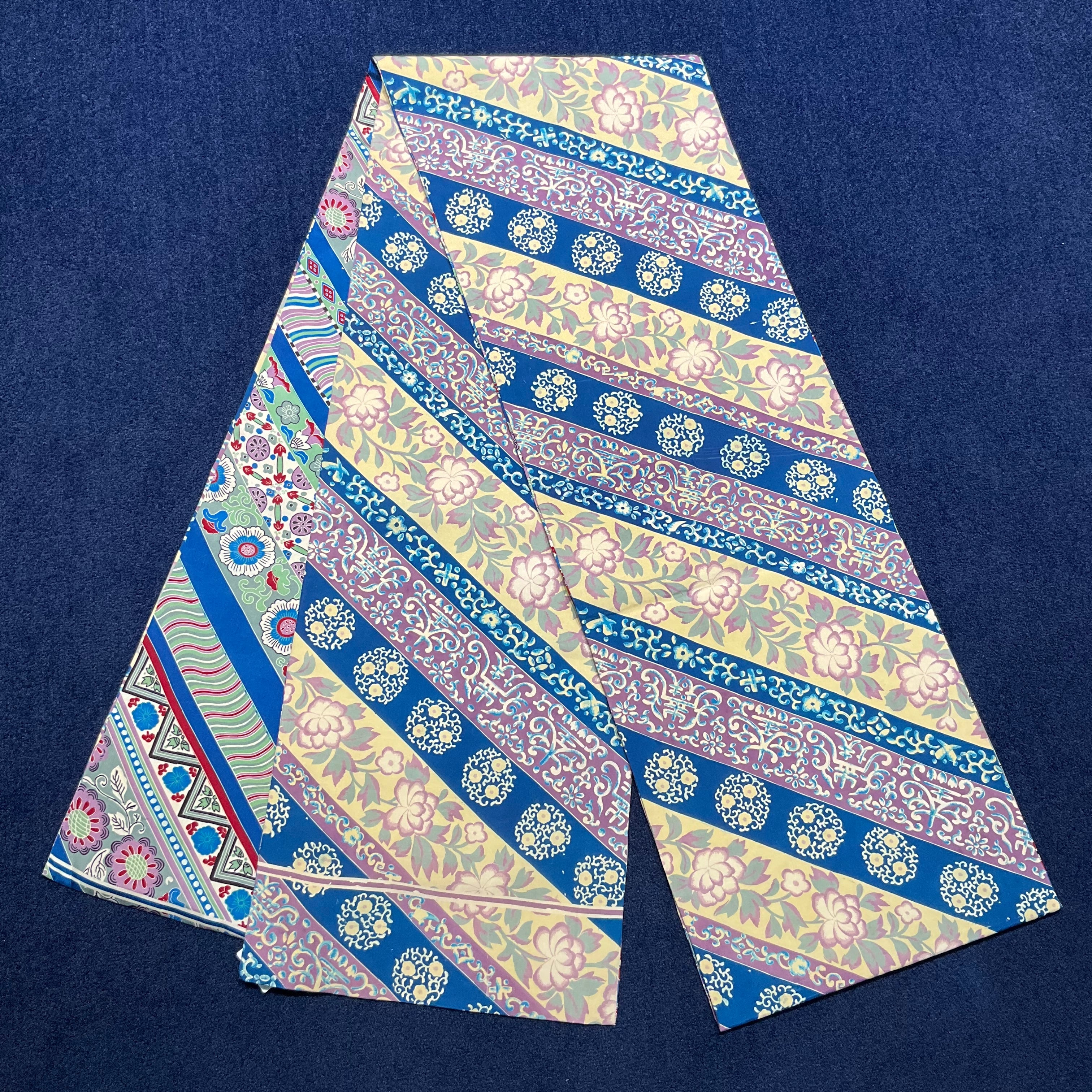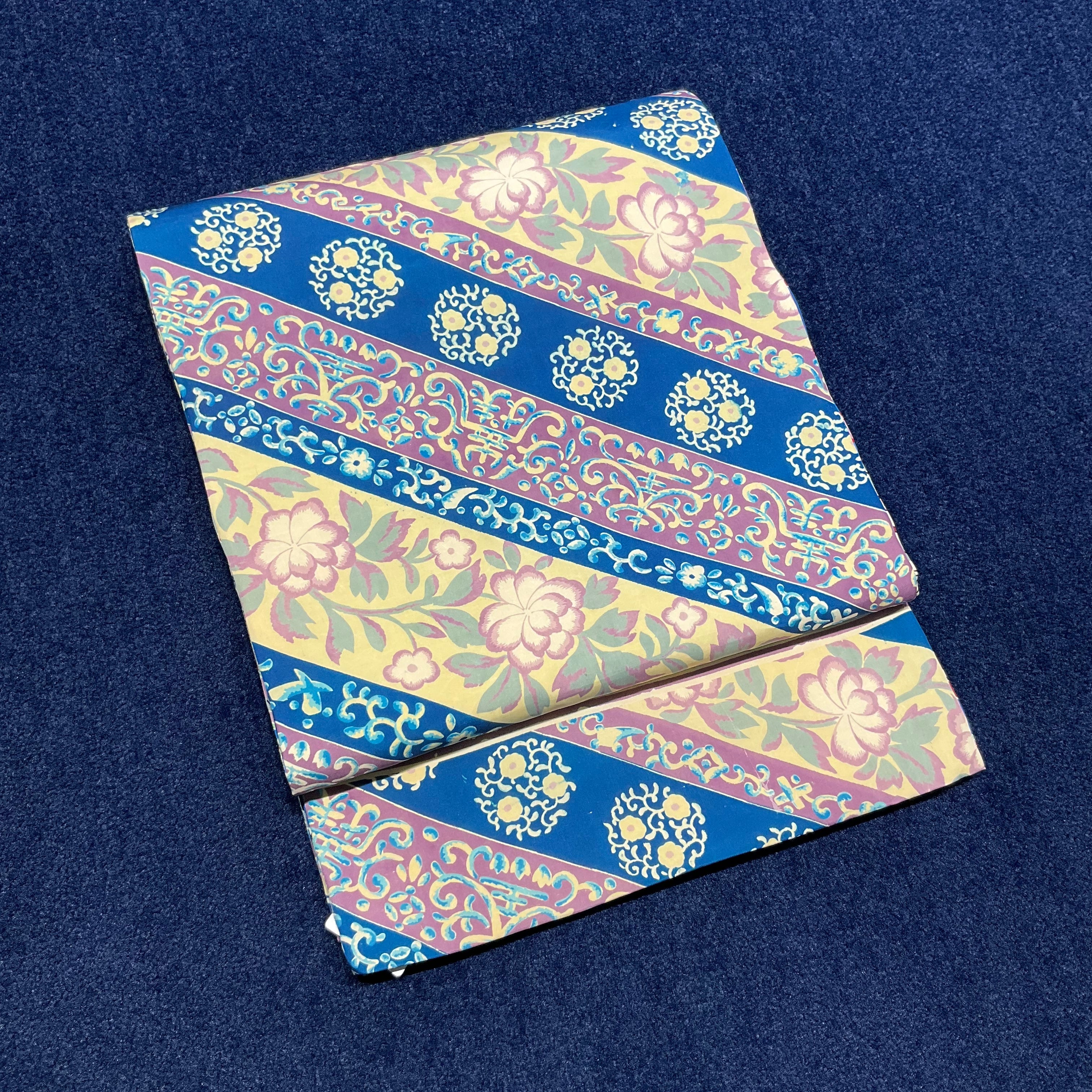 Ribbon Chinois*リボン シノワ シノワズリ オリエンタル 更紗 斜めストライプ リボンテープ 花 リバーシブル アンティーク昼夜帯 開き名古屋帯 染め帯 B298