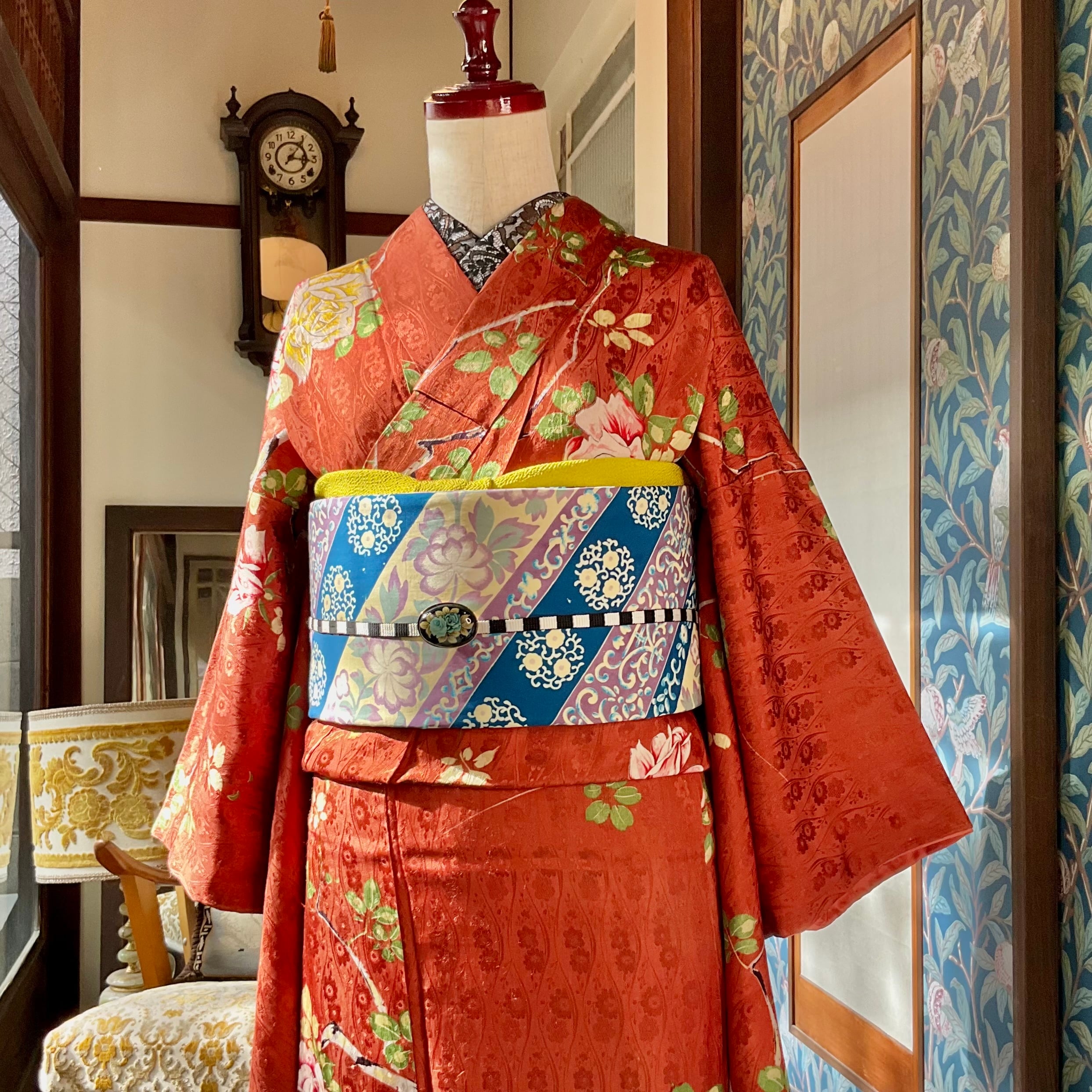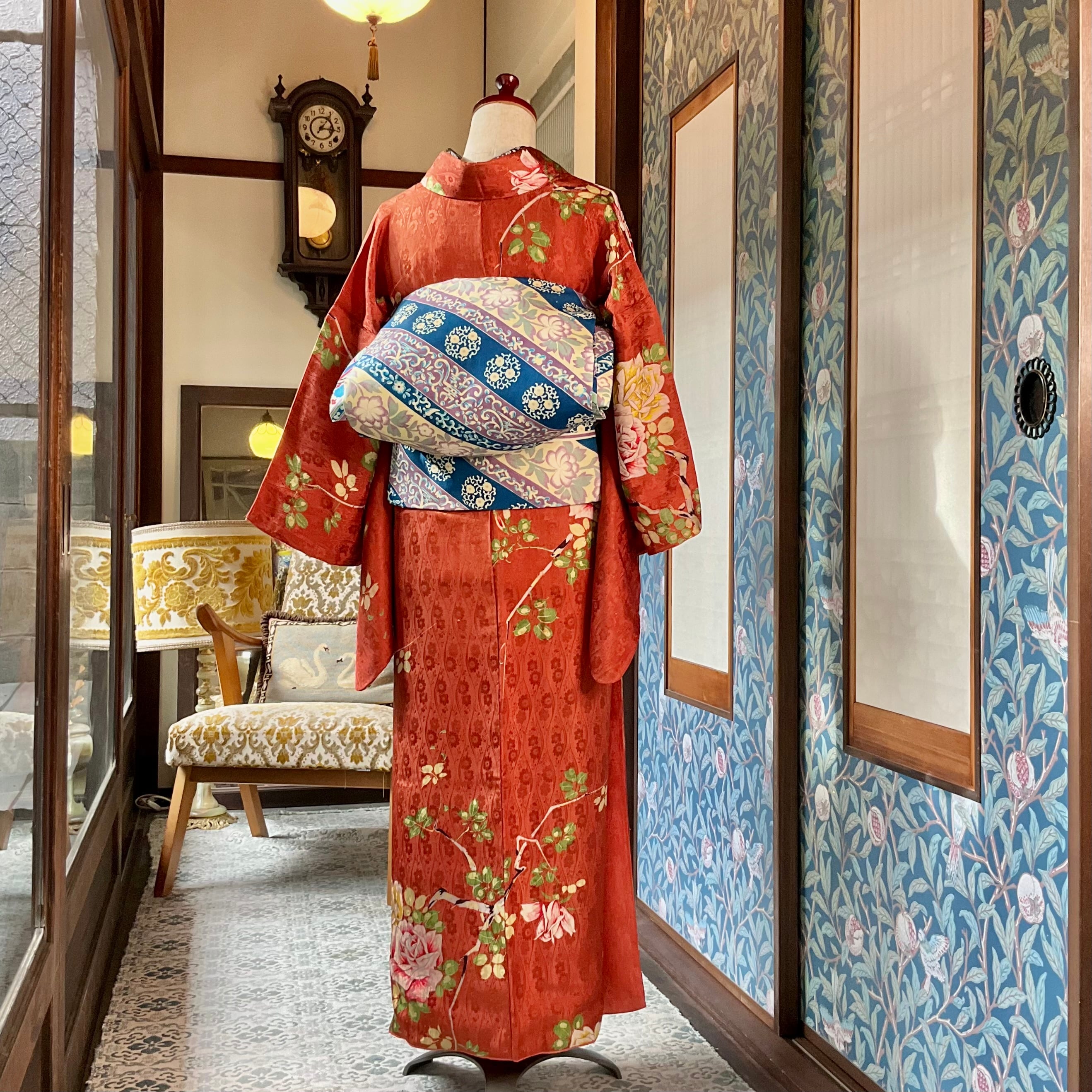 更紗模様はアンティーク着物だけでなく、現代物のシックな着物にもマッチしますし、