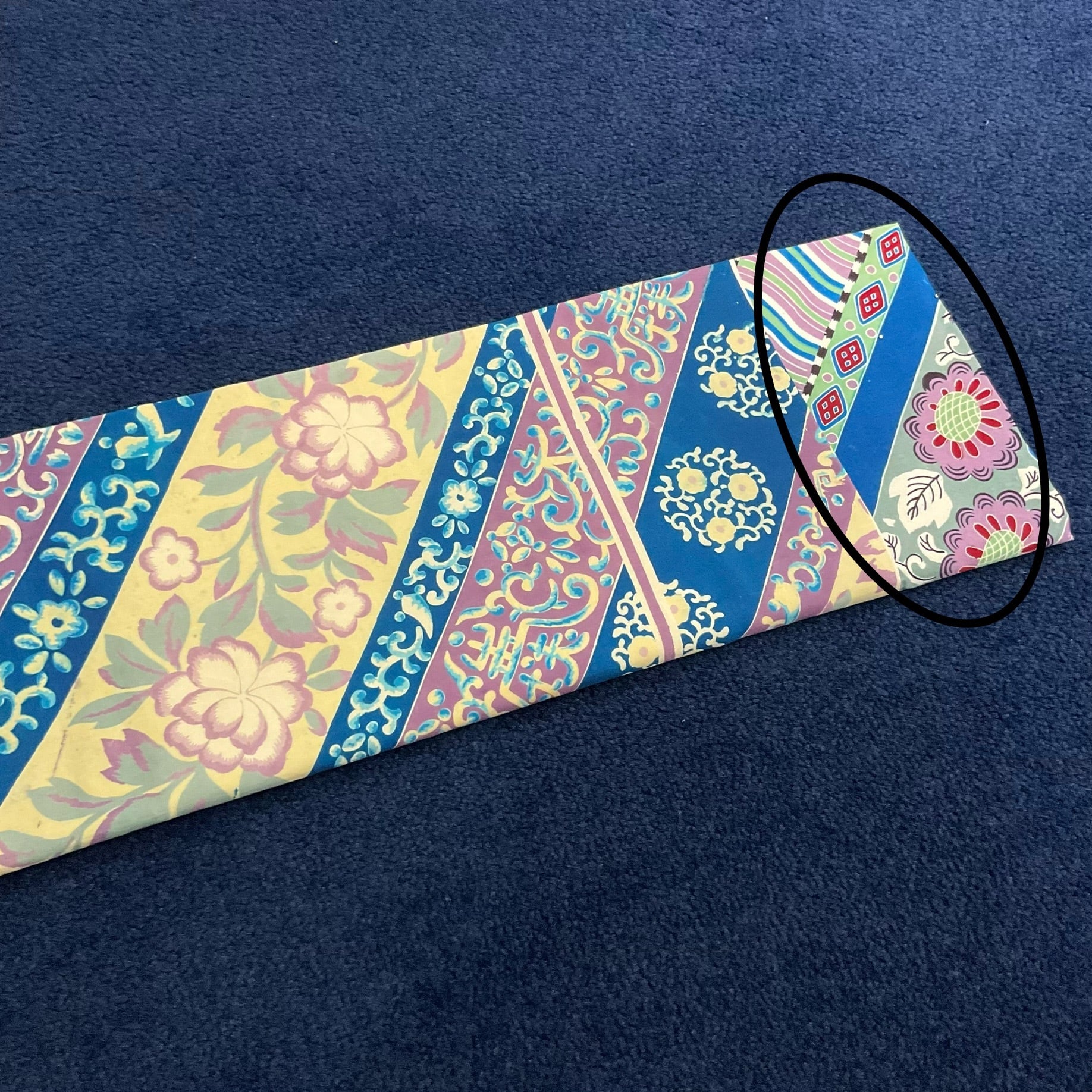 ボタニカルな更紗柄が斜めストライプのリボンのようでお洒落✨