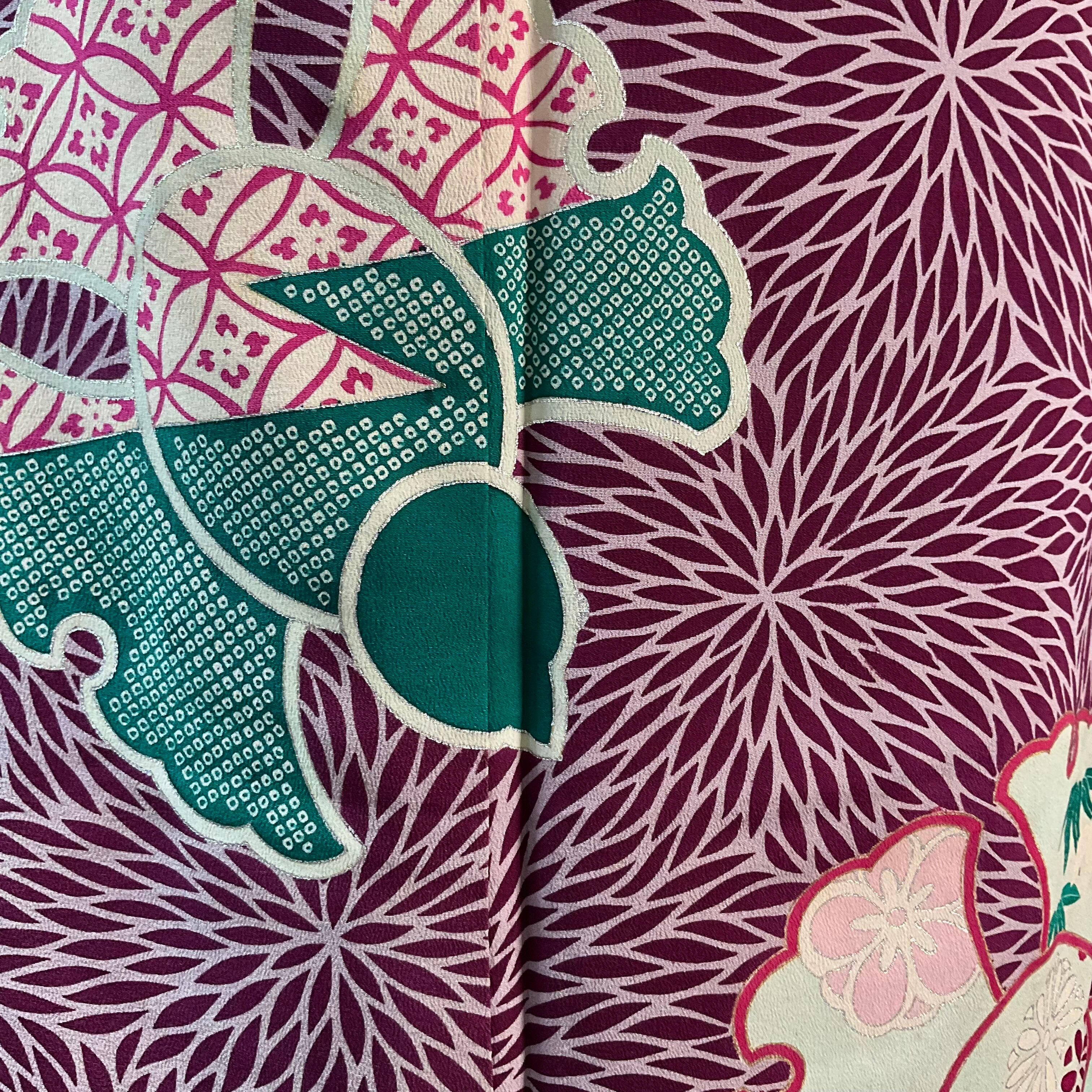 上質な縮緬の正絹地で、アンティークの着物の中では身丈が155cmもあり長めです◎
