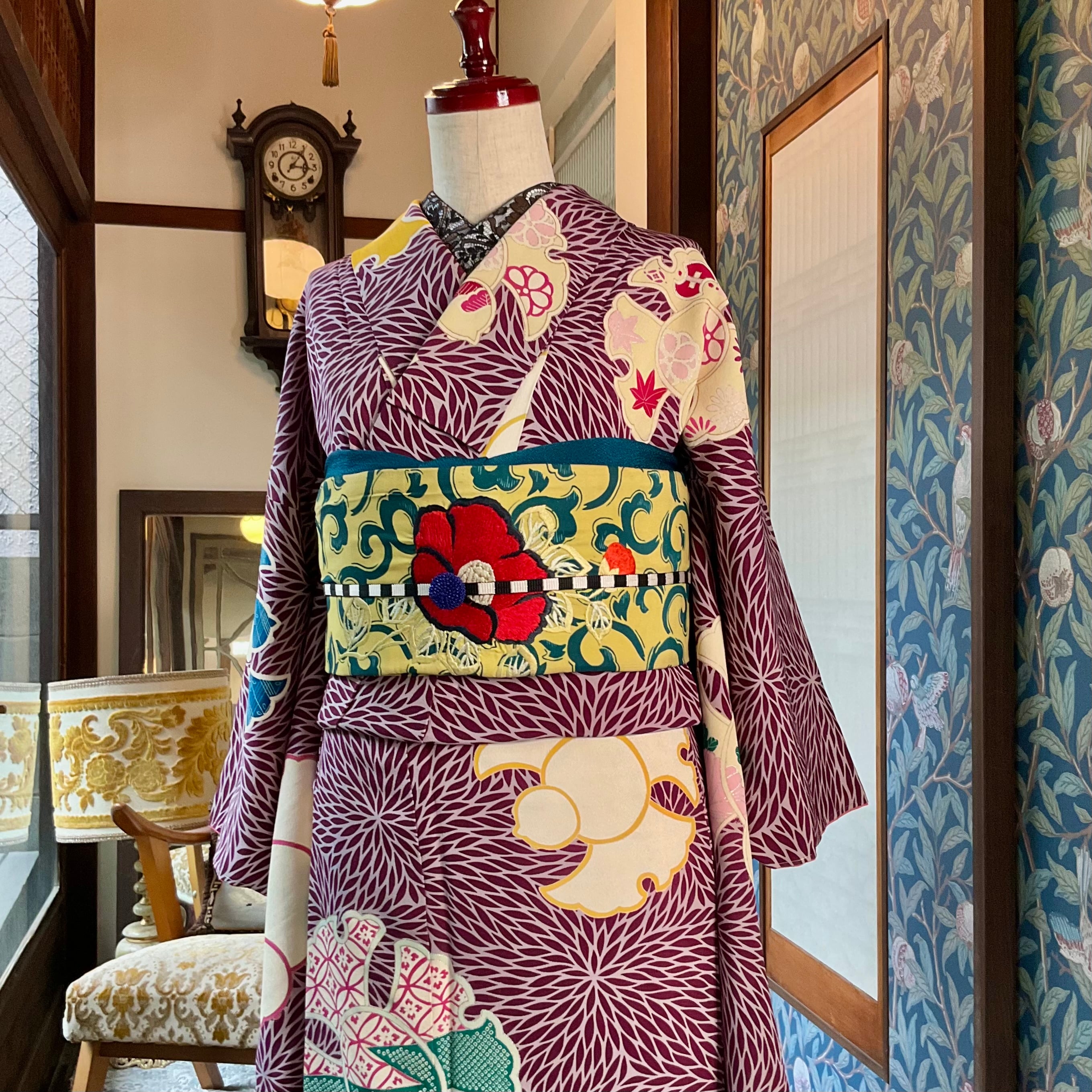 黒の差し色も使われているので、黒やダークな色の着物や小物とも相性抜群です♥