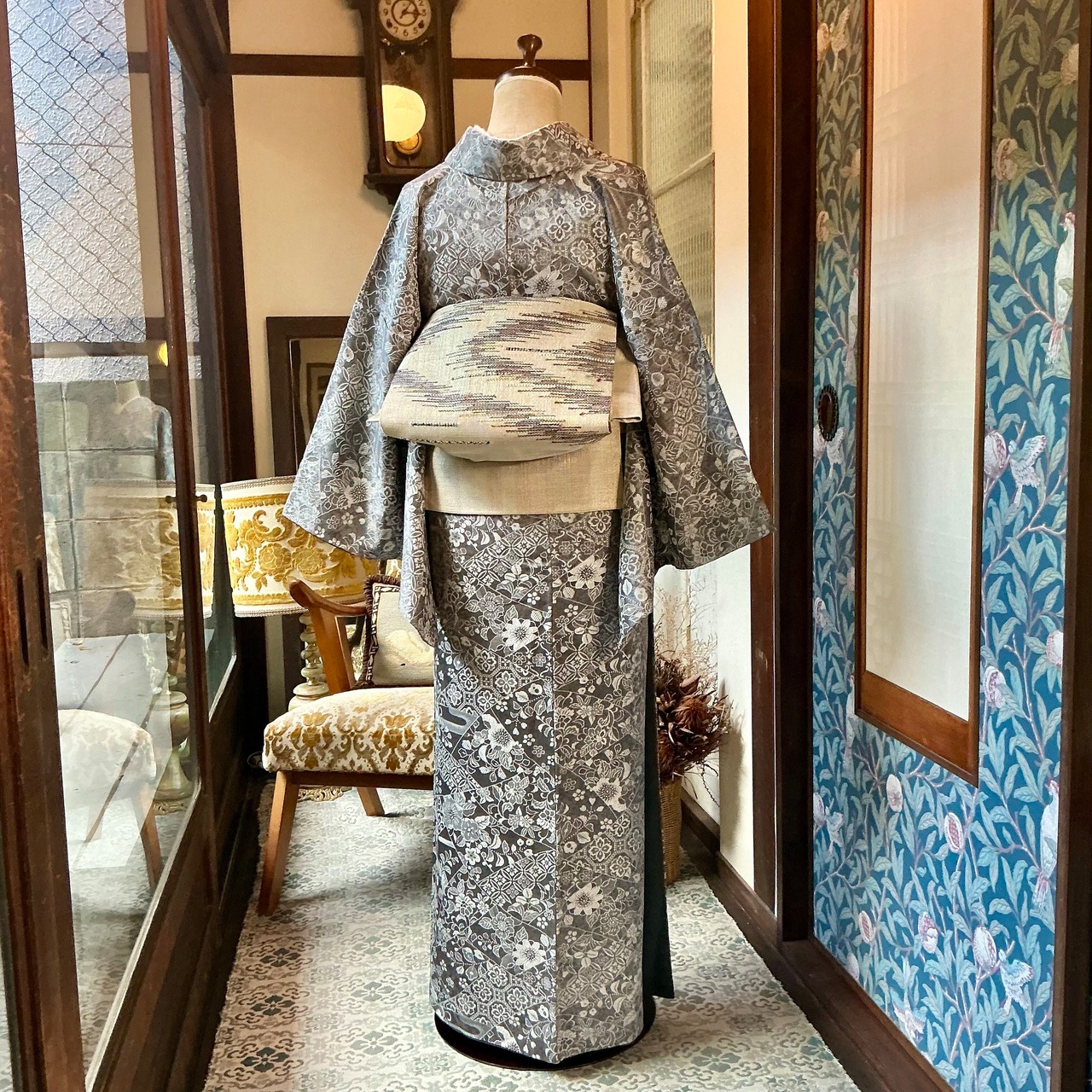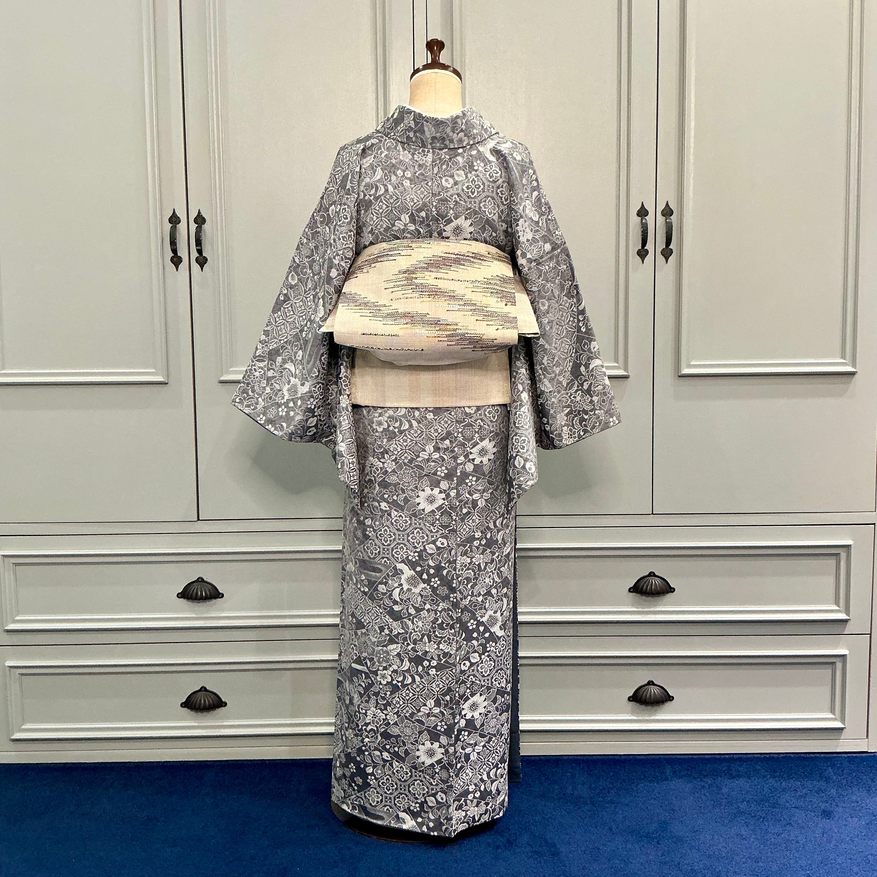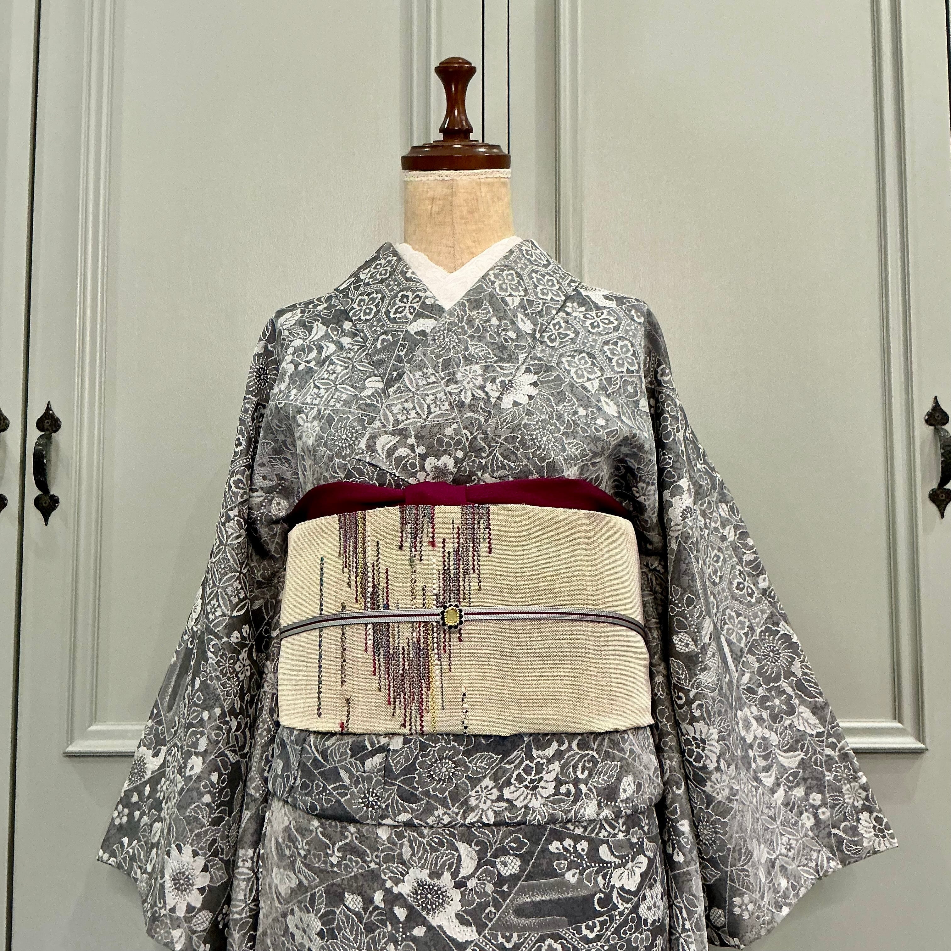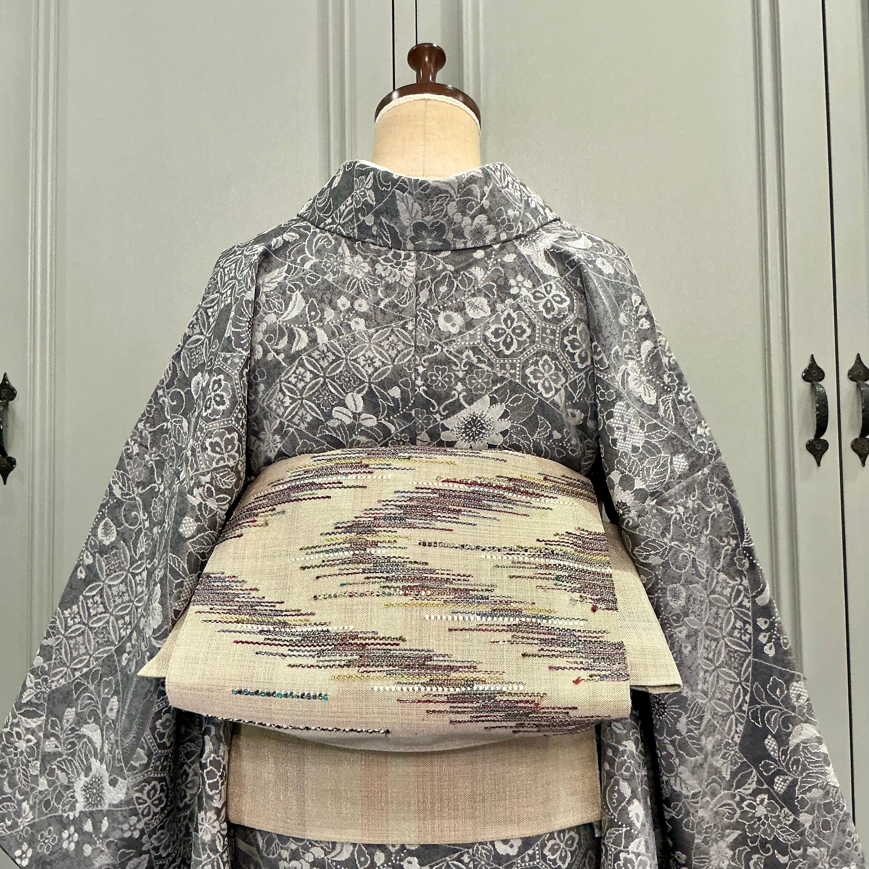 薄くて軽めな八寸帯は単衣着物にも合わせられるので、夏以外のスリーシーズン使えて便利です✨