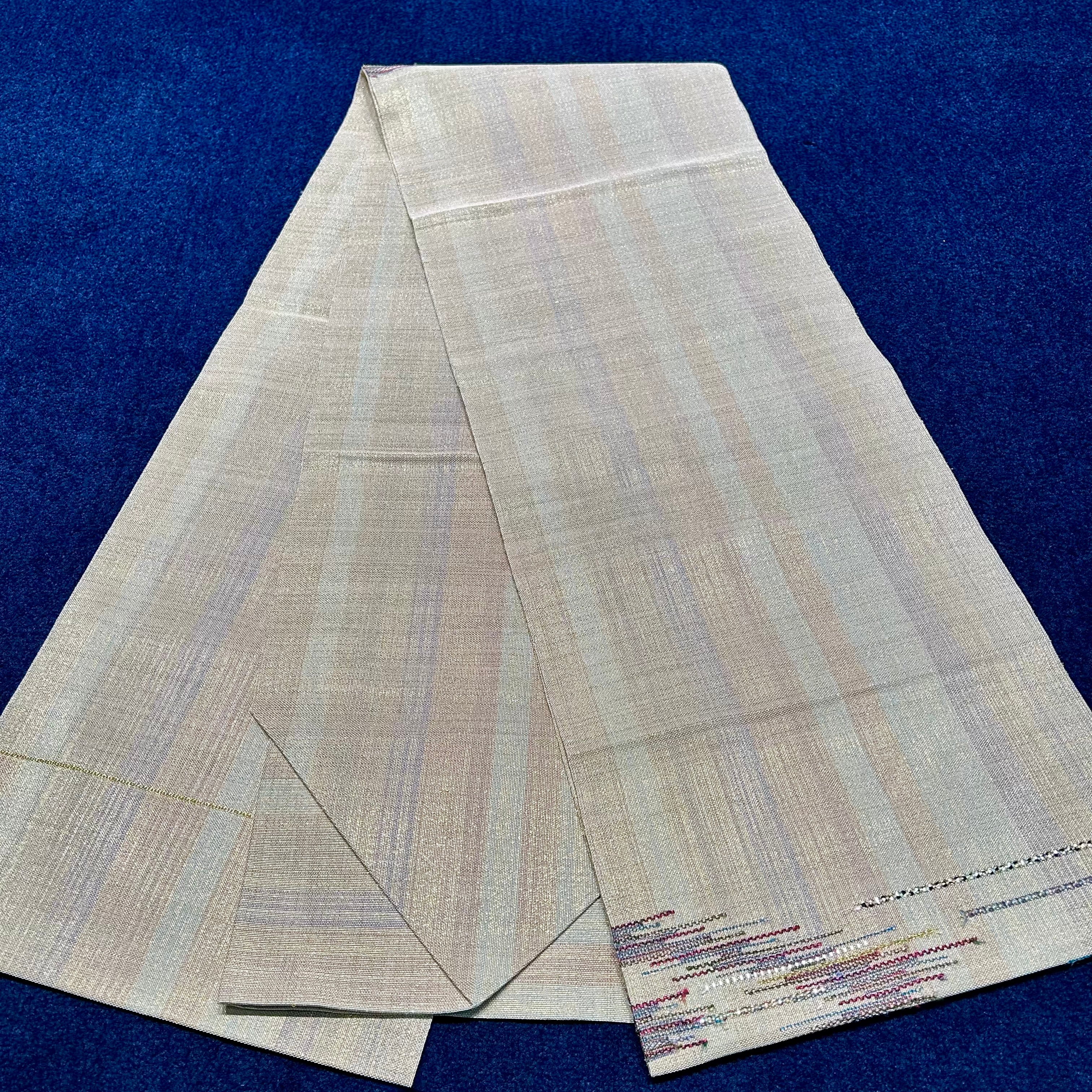 光の雫*未使用品 シャンパンゴールド キラキラ ボーダー 八寸名古屋帯 B307