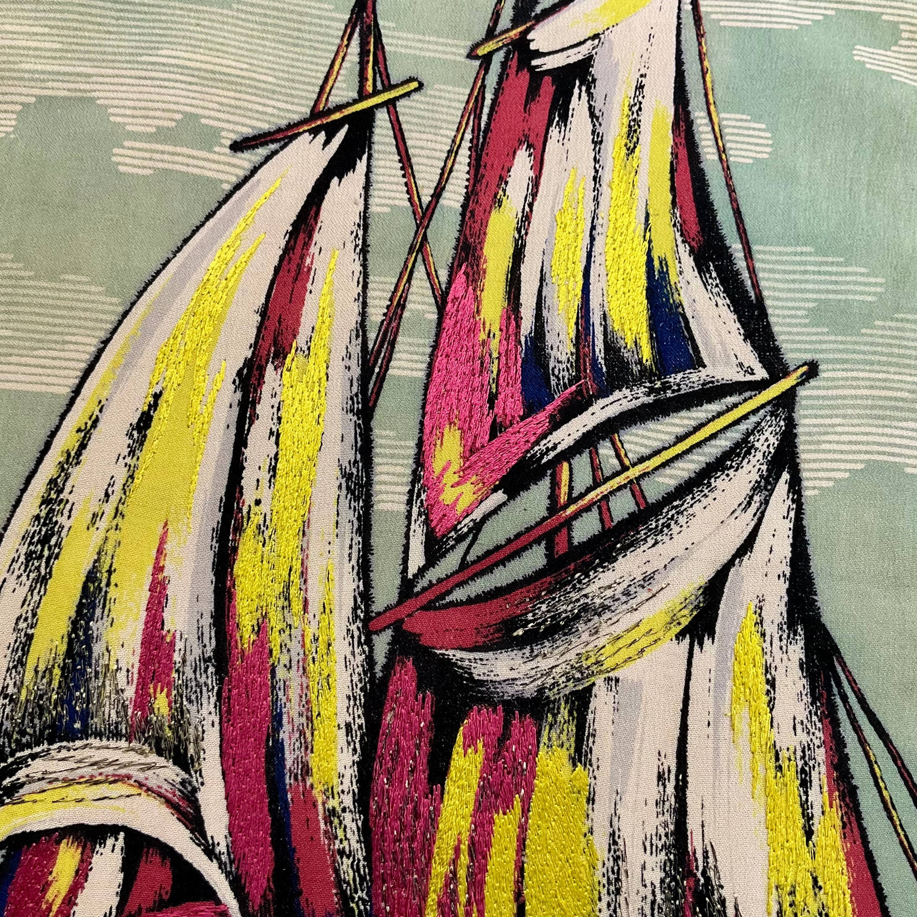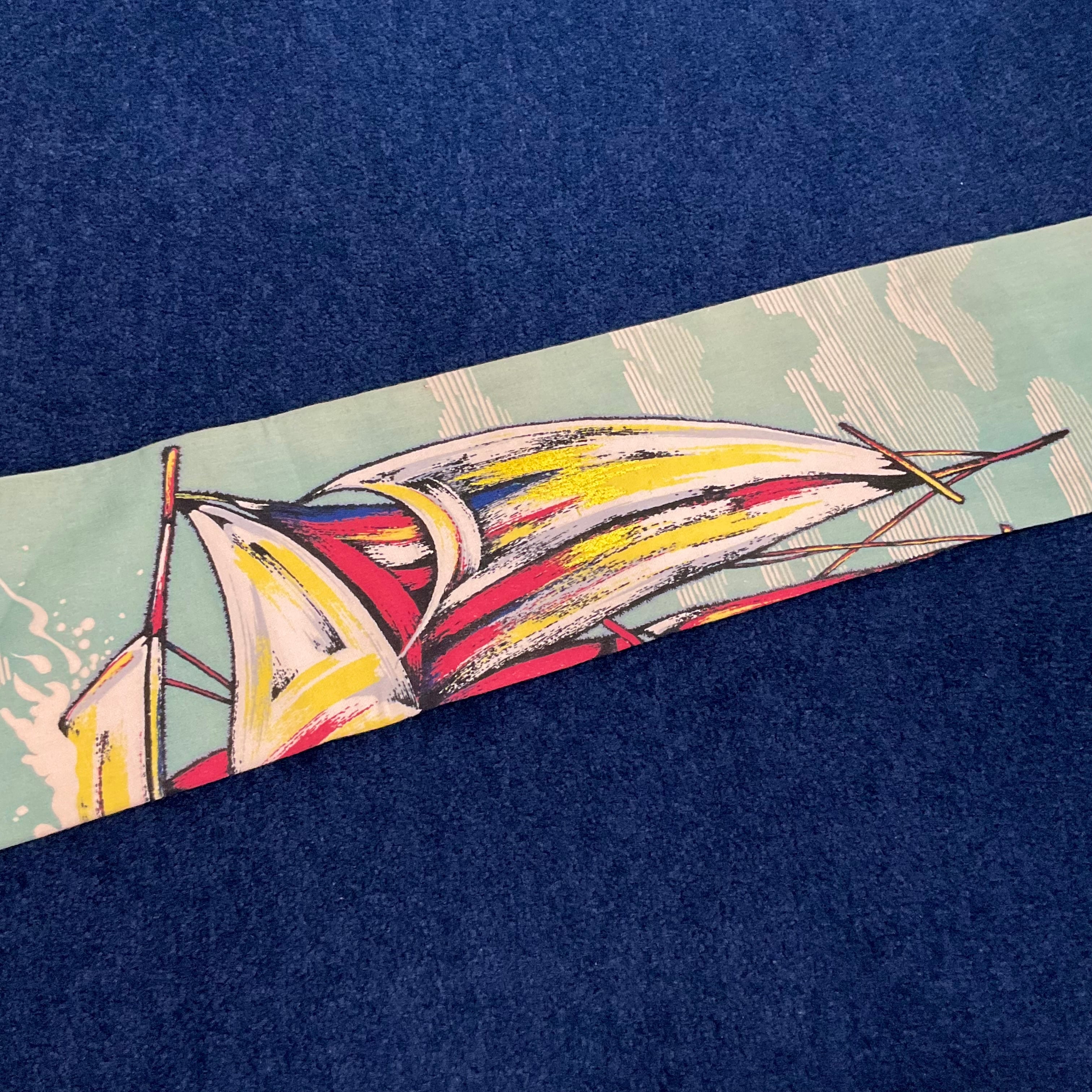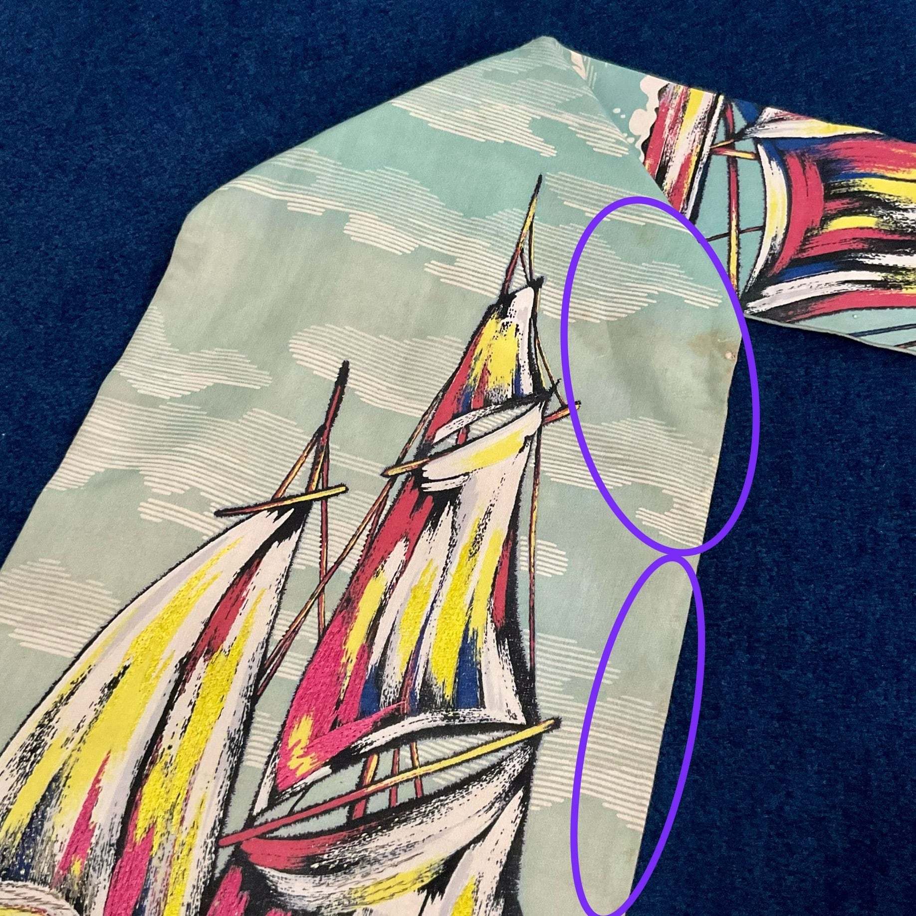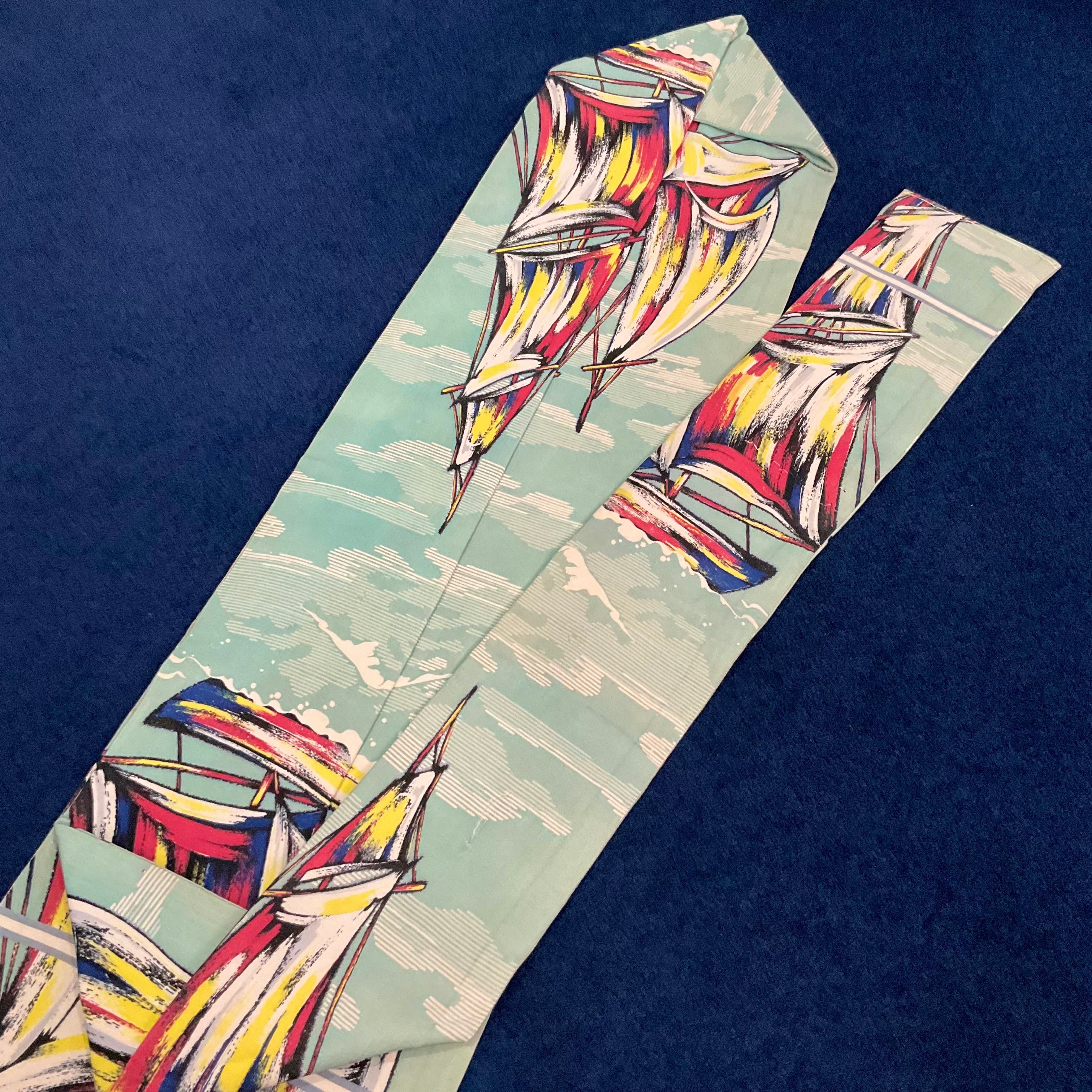 Retro Art Yacht*帆船 ふね ヨット 波 マリン クルーズ アート ミントグリーン 染め帯 刺繍 アンティーク名古屋帯 B311