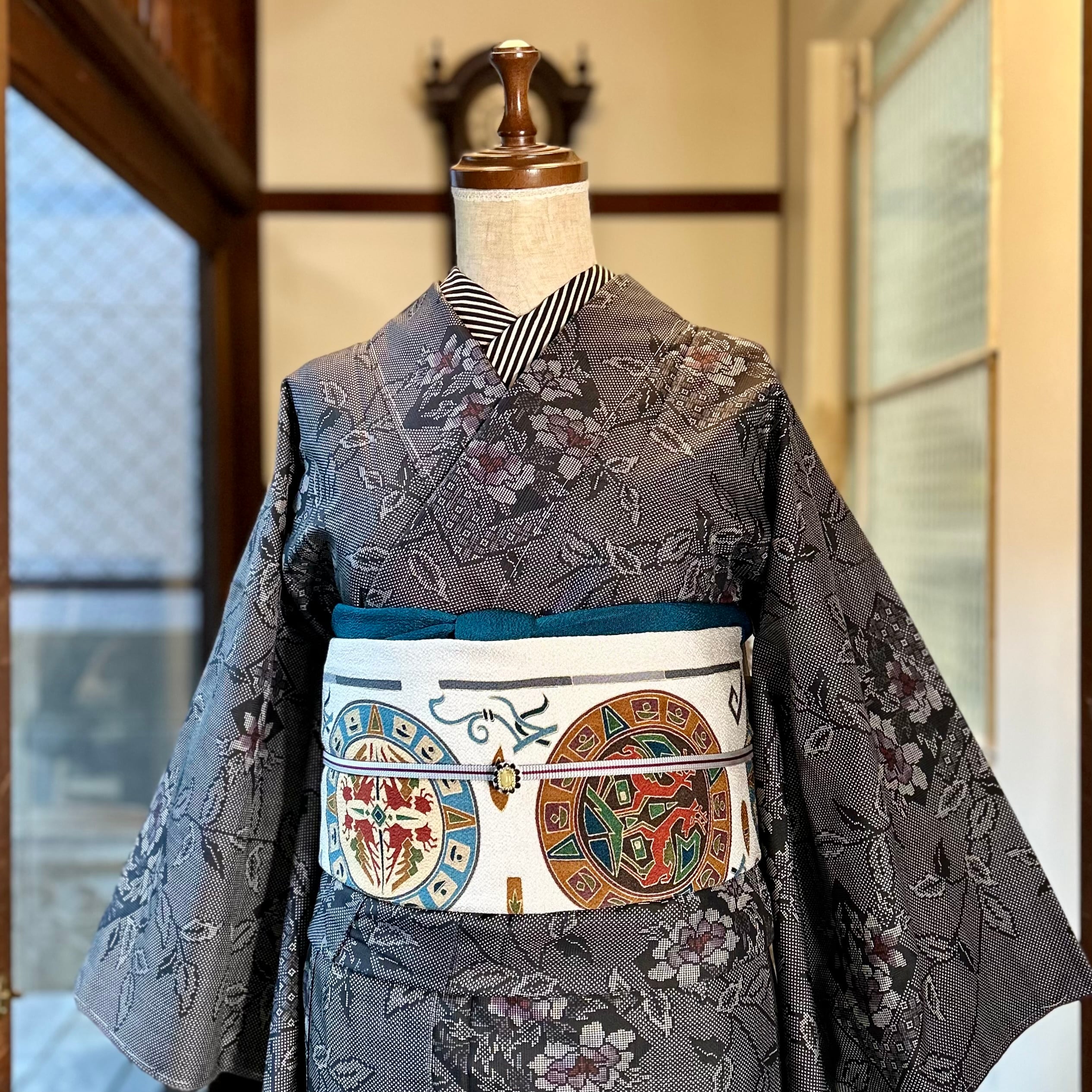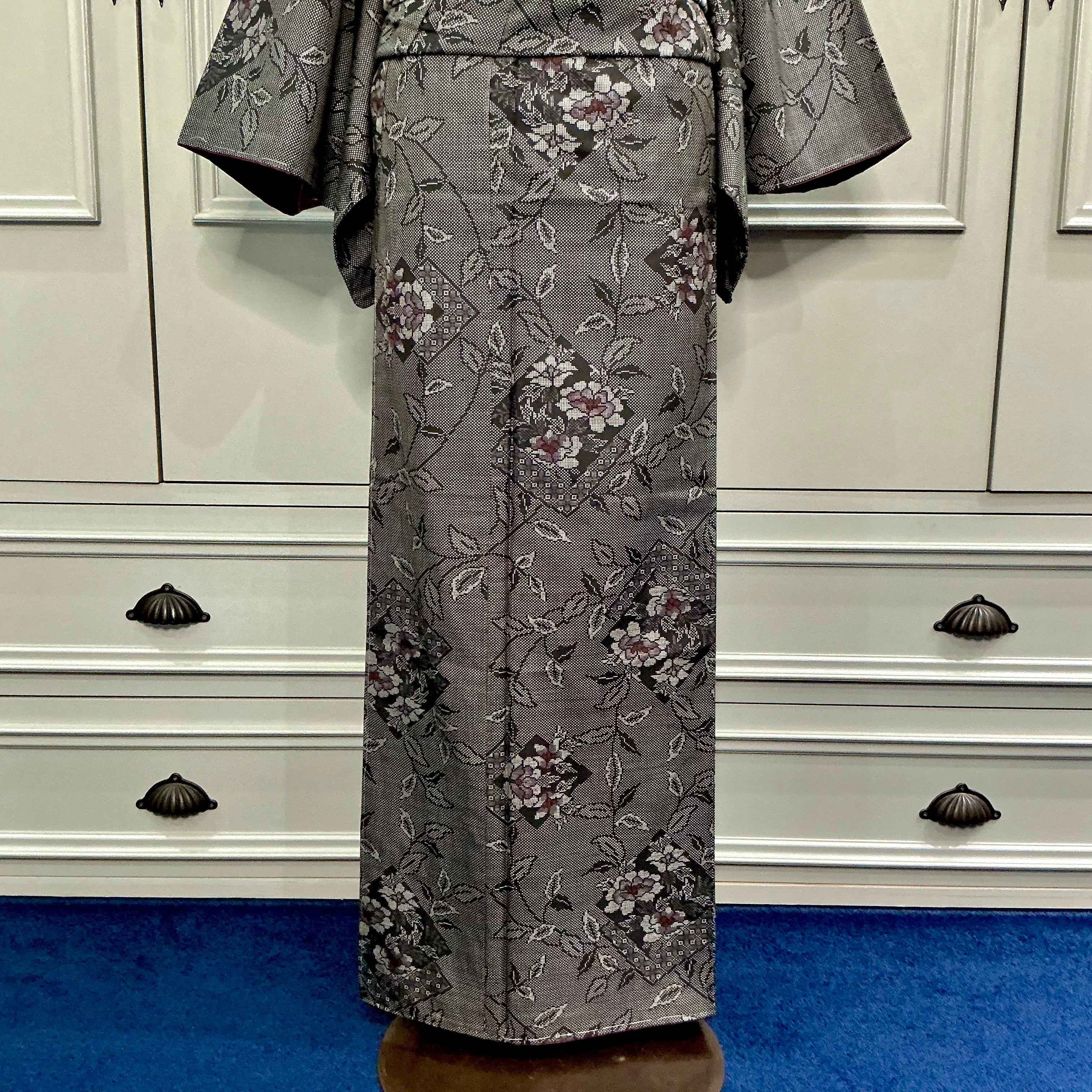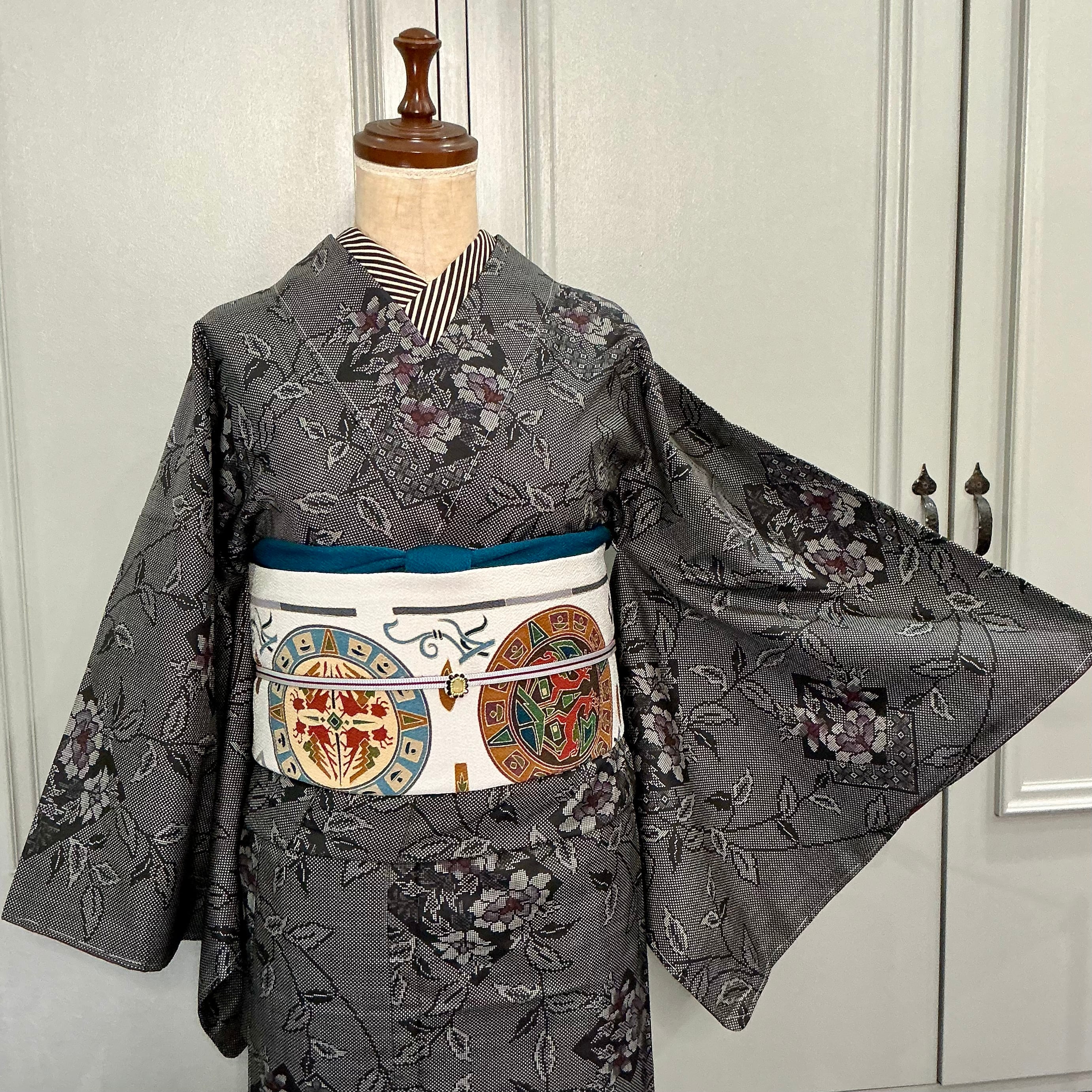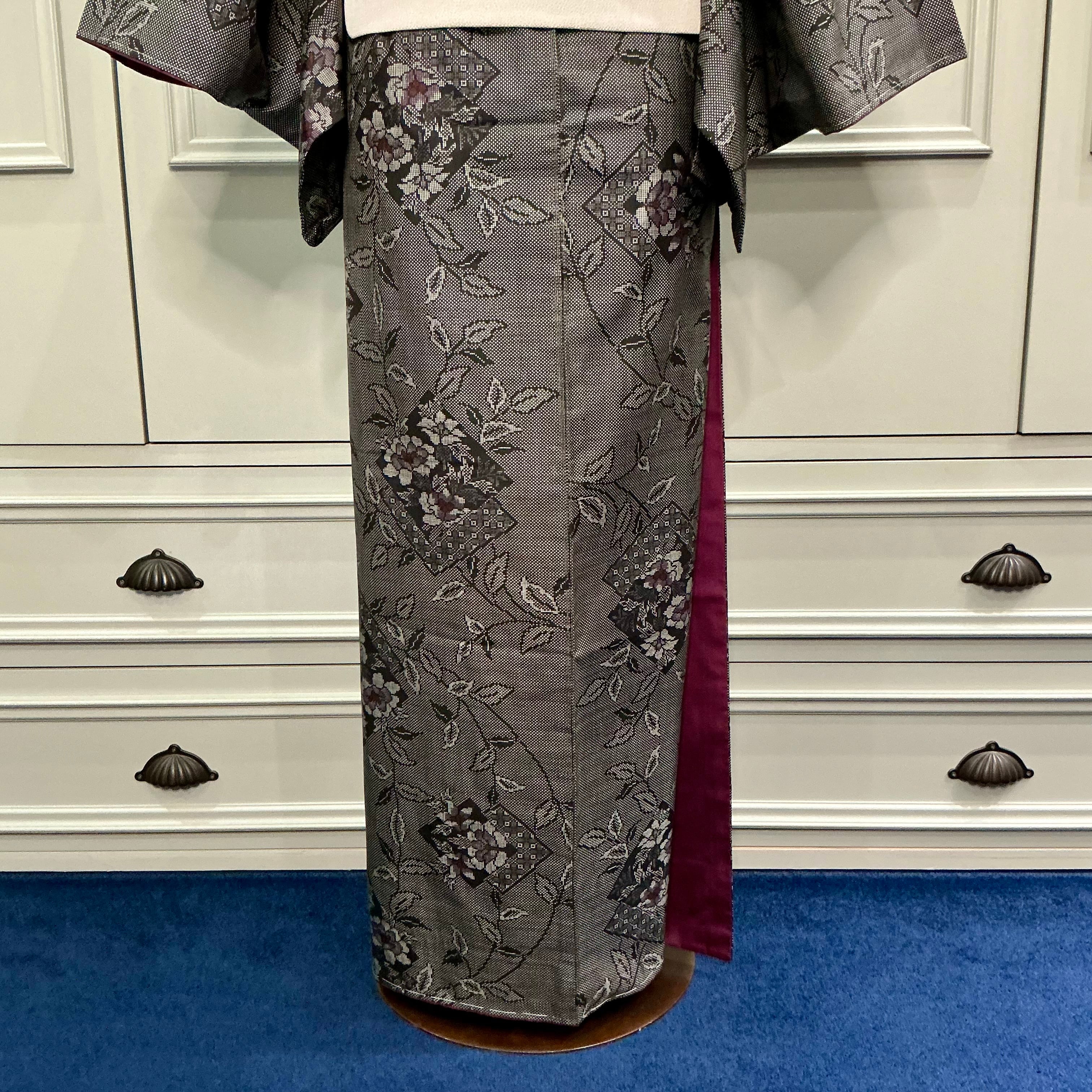 大人の色使いが作り出す艶感、スラリと描かれたデザインが美しく粋な着物です✨