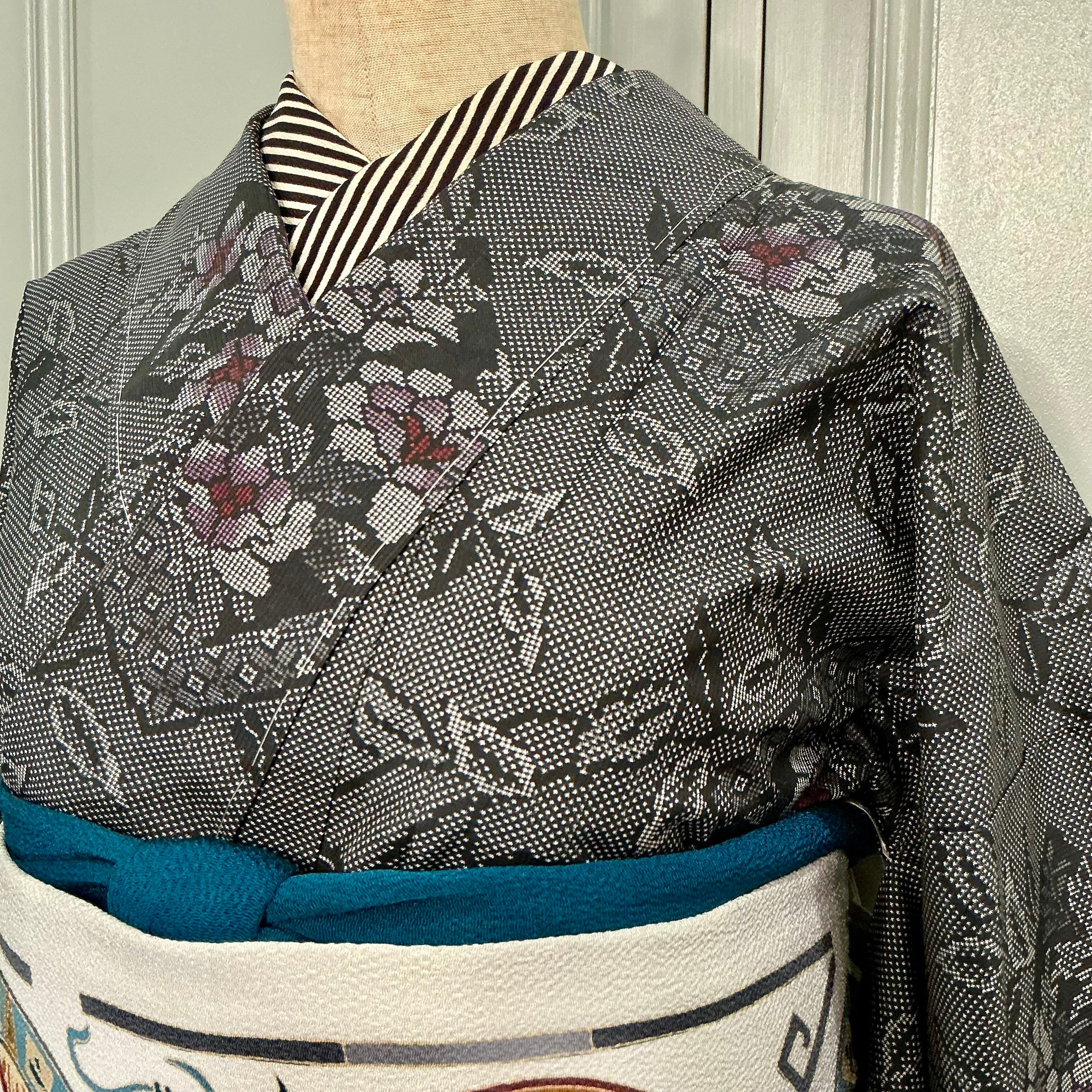 ○合わせた帯とオリジナル帯揚げビリジアングリーンとオリジナル三分紐ミント×プラムはweb shop掲載品です♪