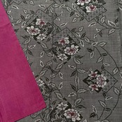 艶やかな墨黒色の地色に、すらりと描かれた葉っぱ、そこにほんの少しのボルドーとネイビーで描かれた花たち✨