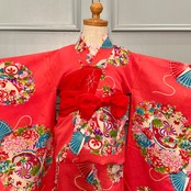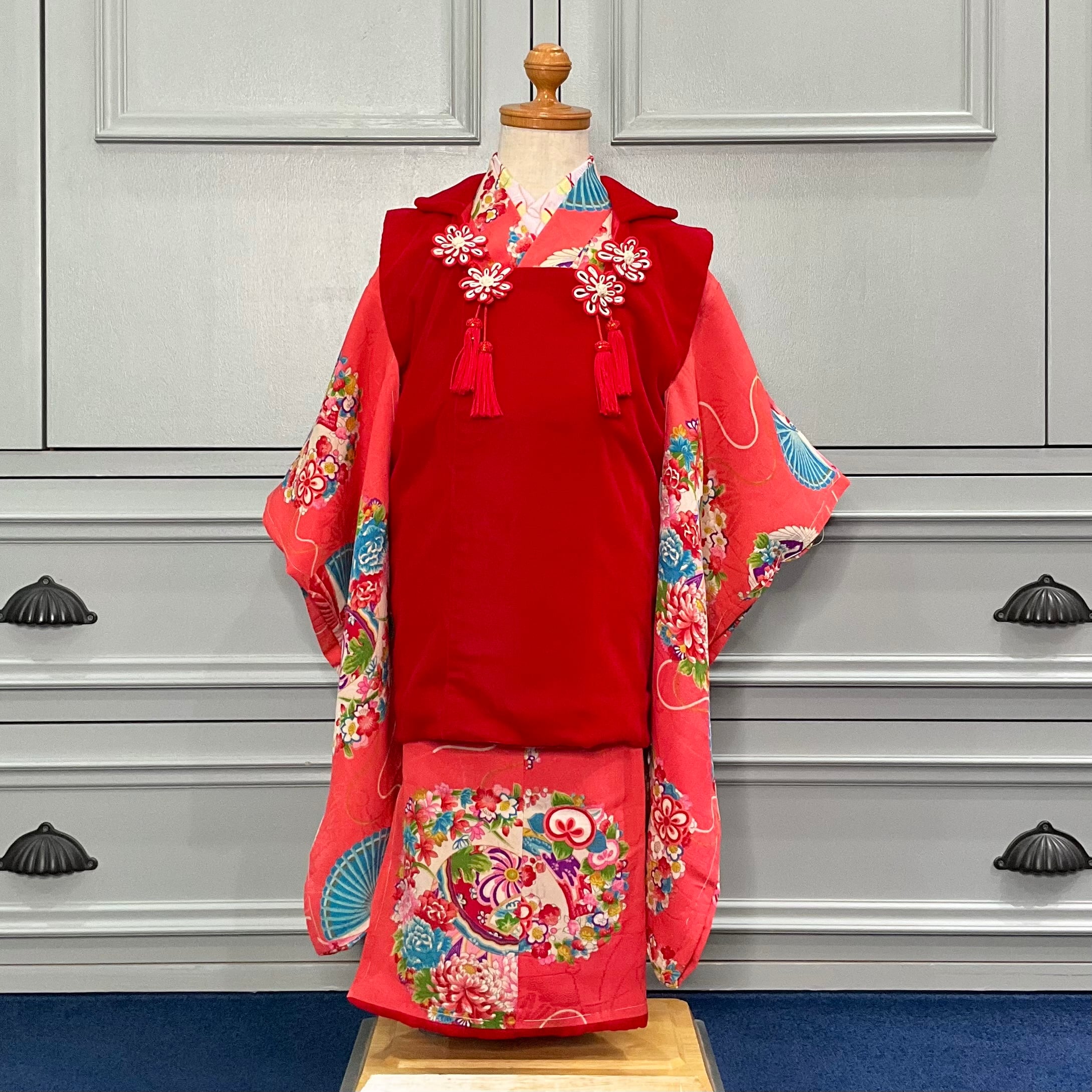 *体型にもよりますが、着物の身丈がお子さまの身長より10cm程度短くても着用できます。