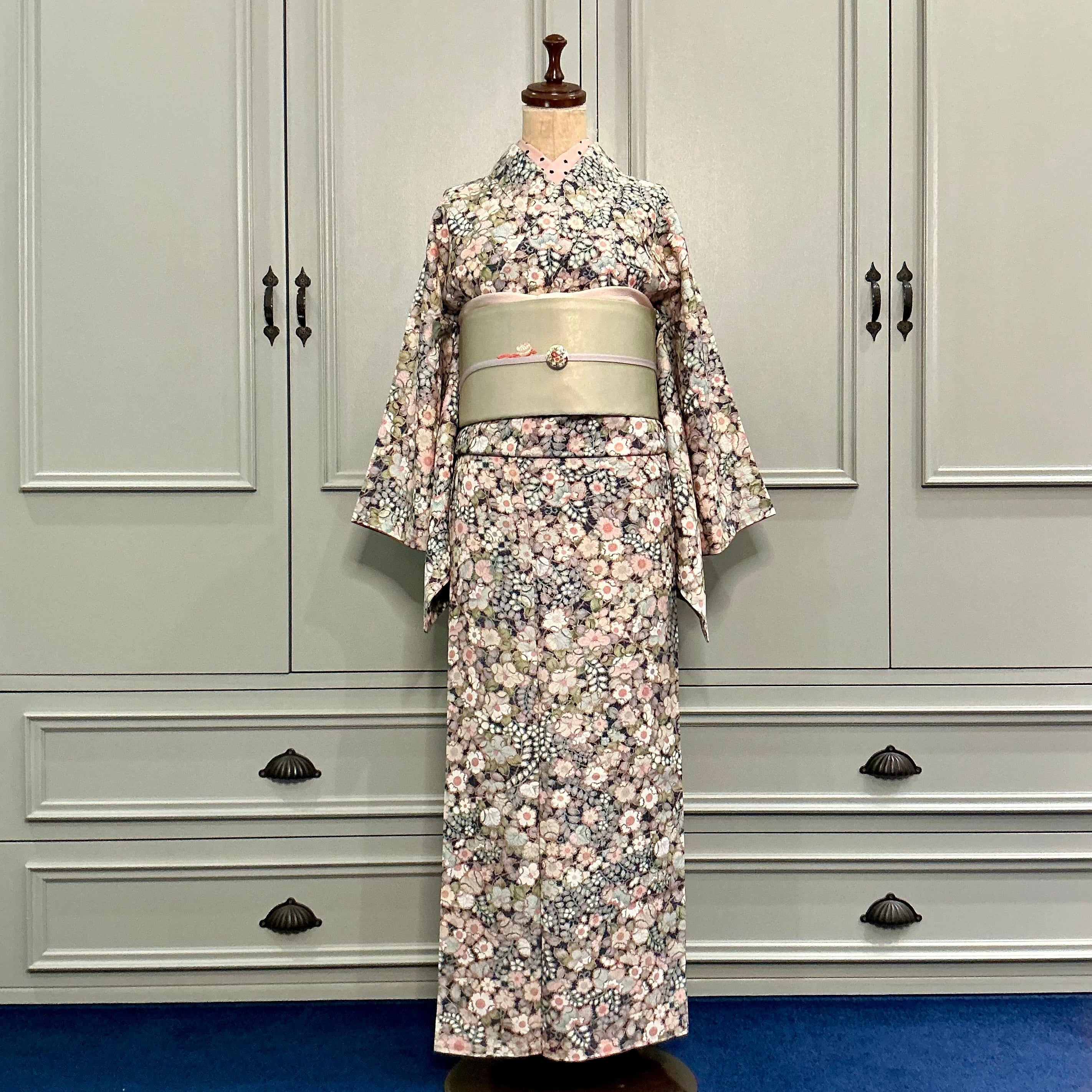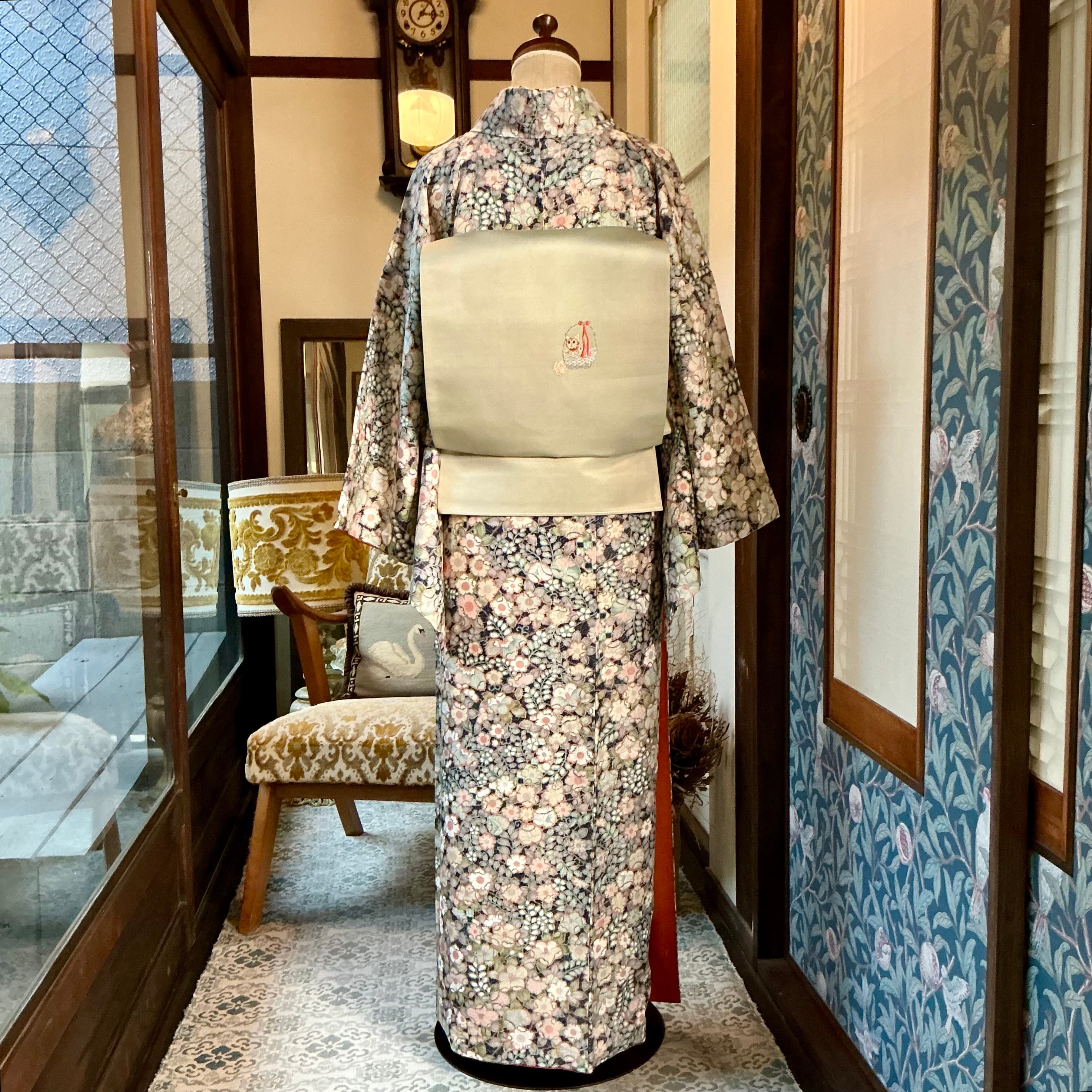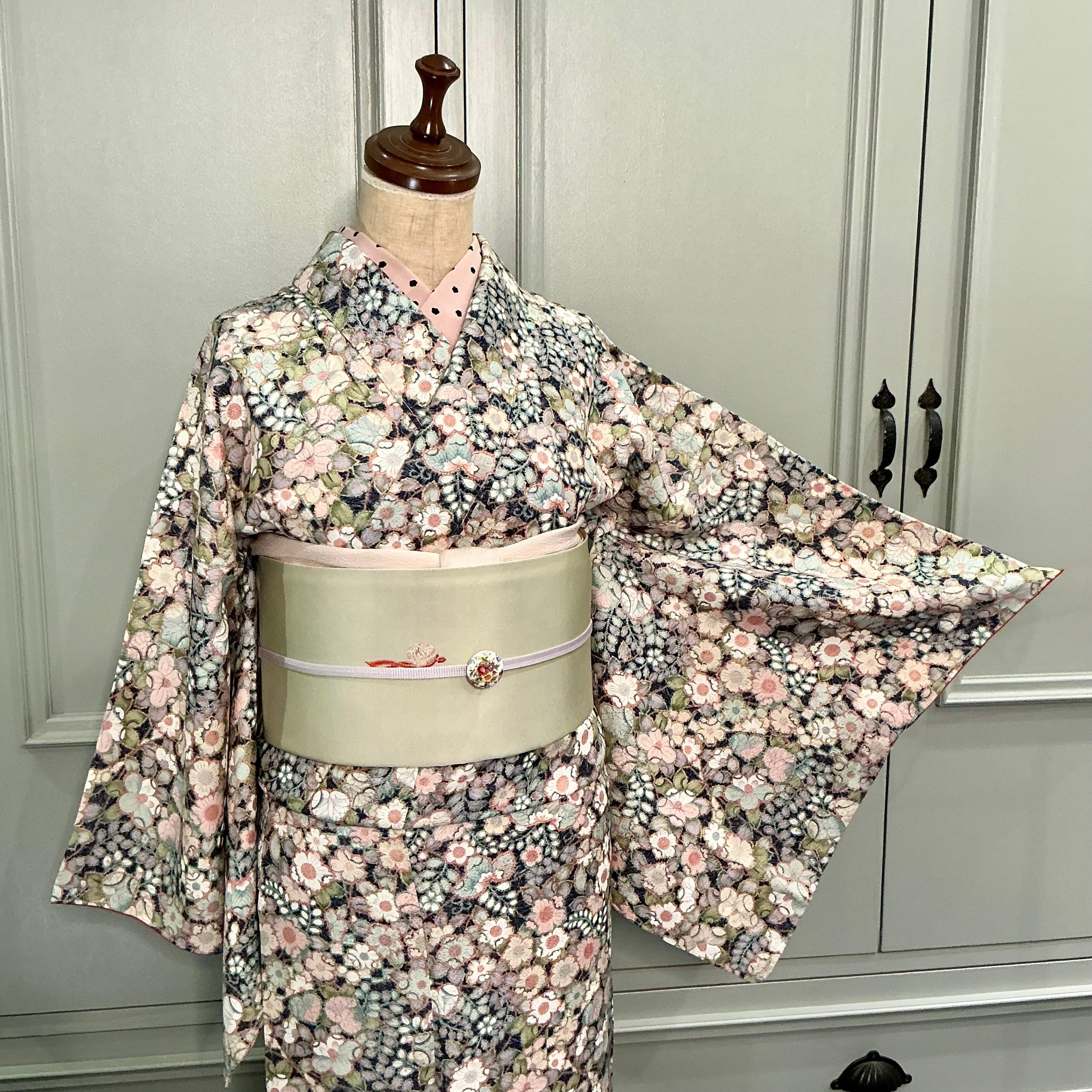 地色のカラーが控え目なので、落ち着いた雰囲気で夜の庭園のような大人ぽくもかわいい小紋です✨
